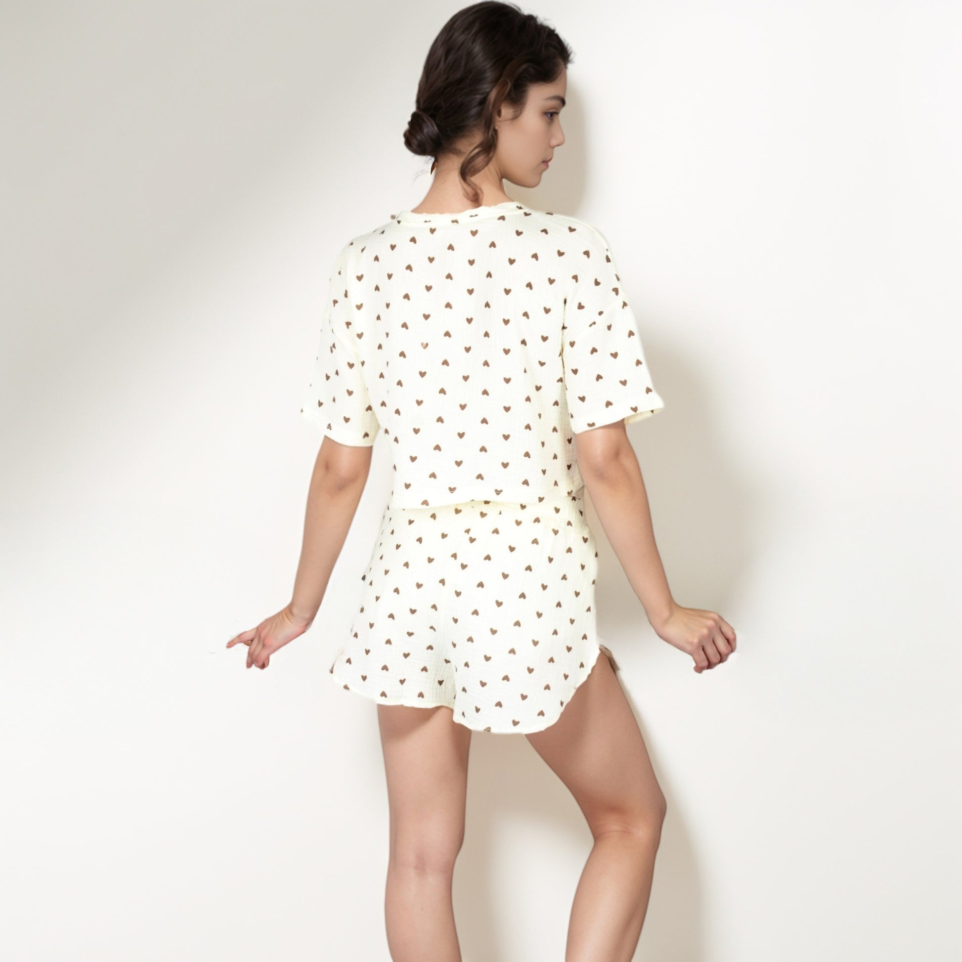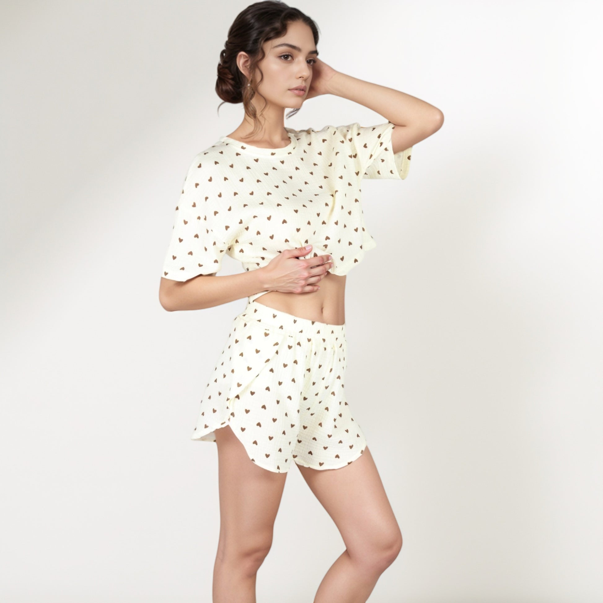 Anna-Kaci Lounge Women's Heart Print Waffle Knit Sleepwear Set with Cropped Tee and Elastic Waist Shorts