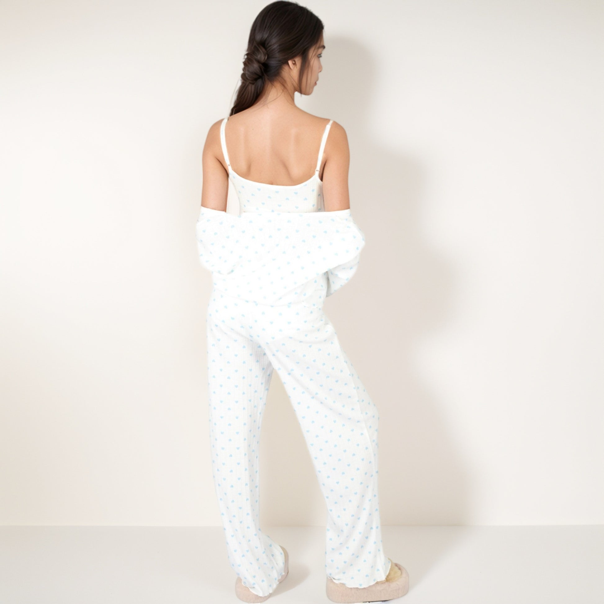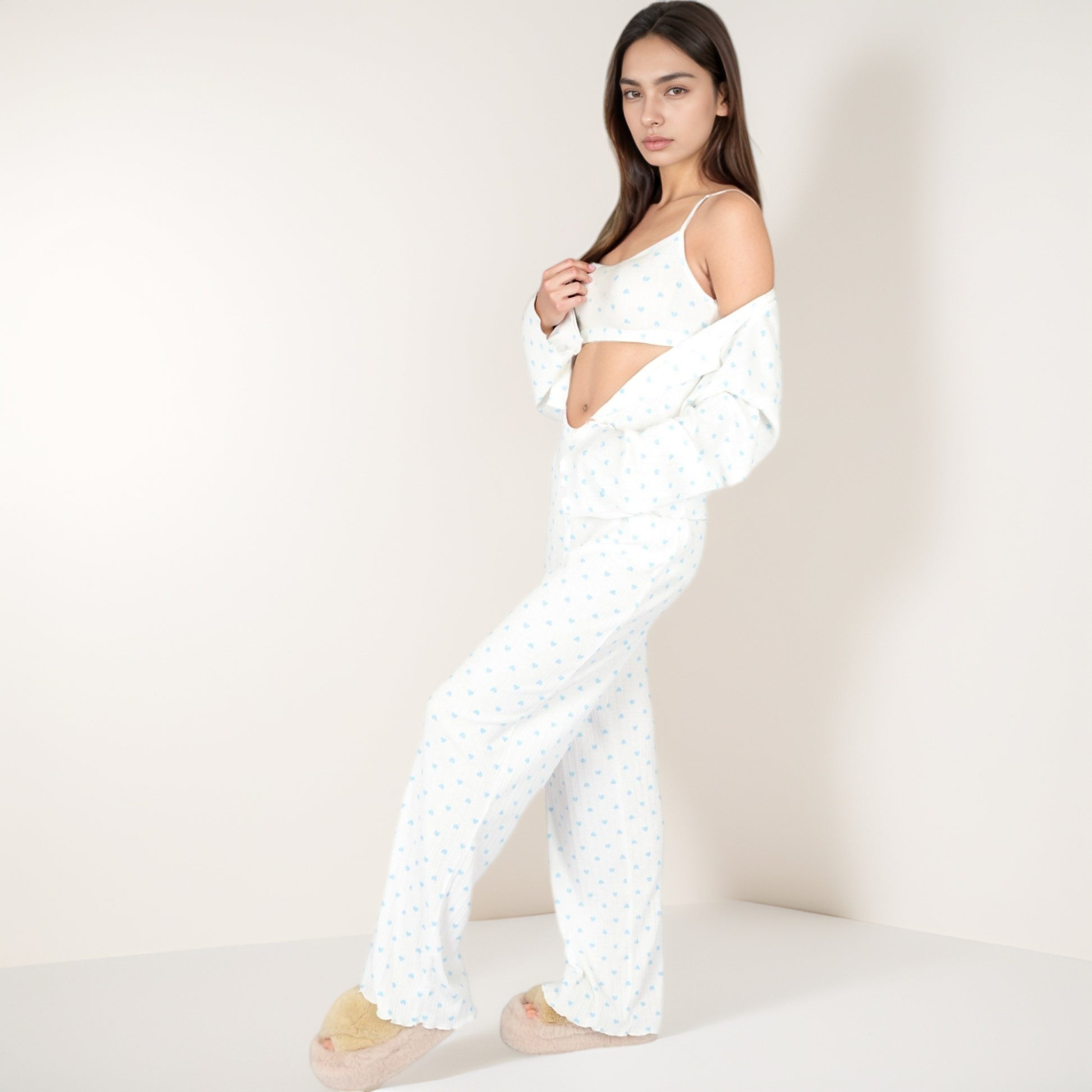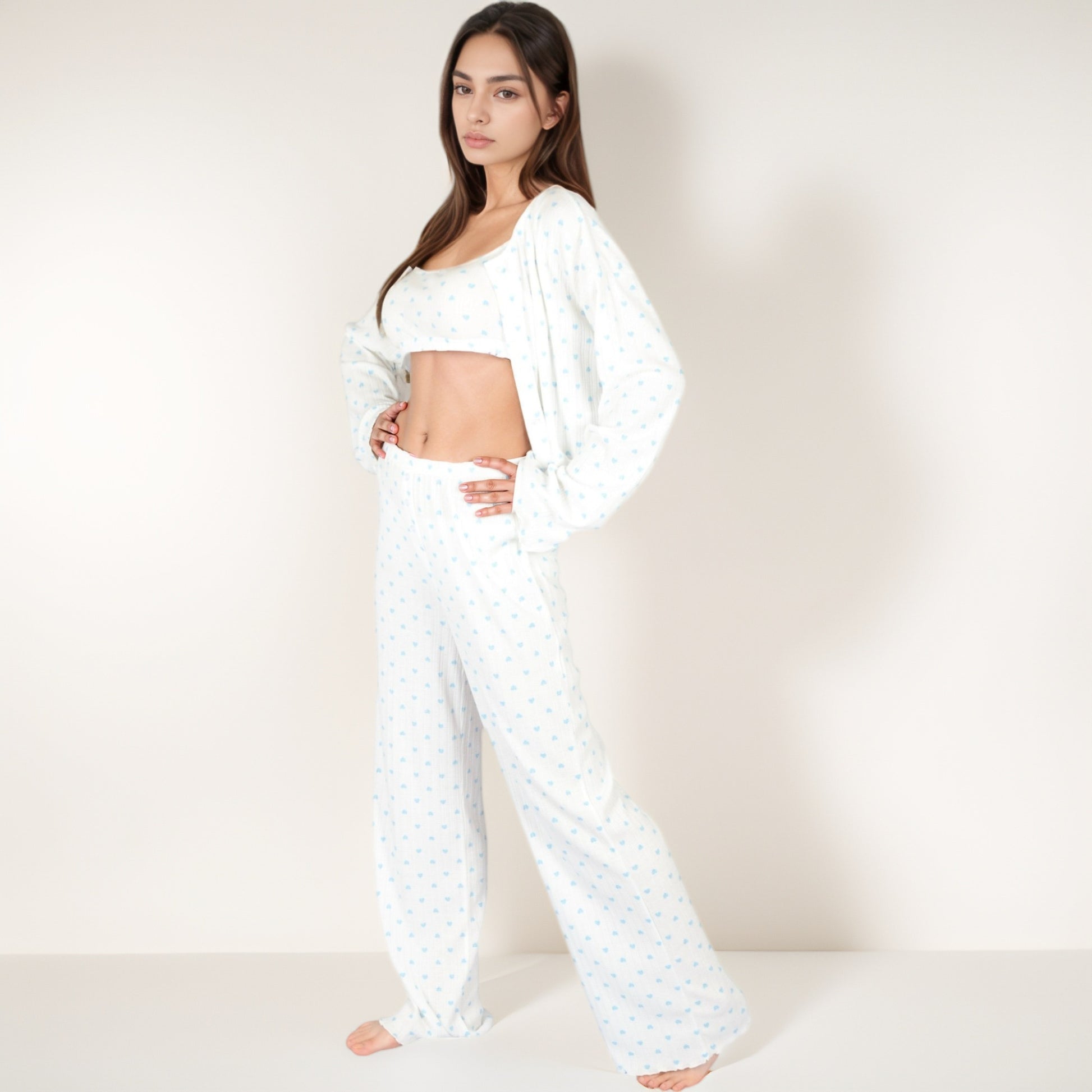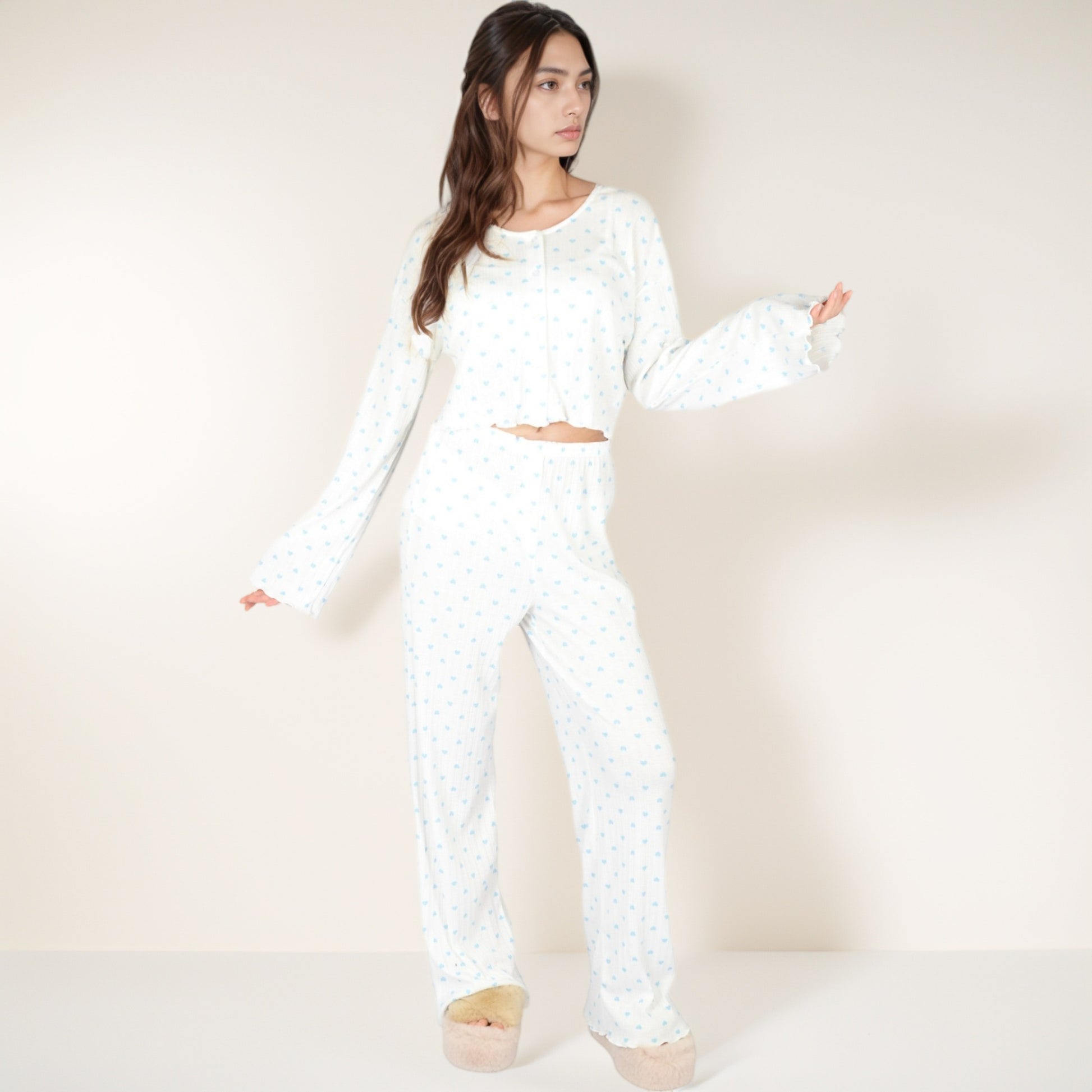 Anna-Kaci Lounge Women's Heart Print Long Sleeve Cropped Top and Wide Leg Pajama Pants Lounge Set