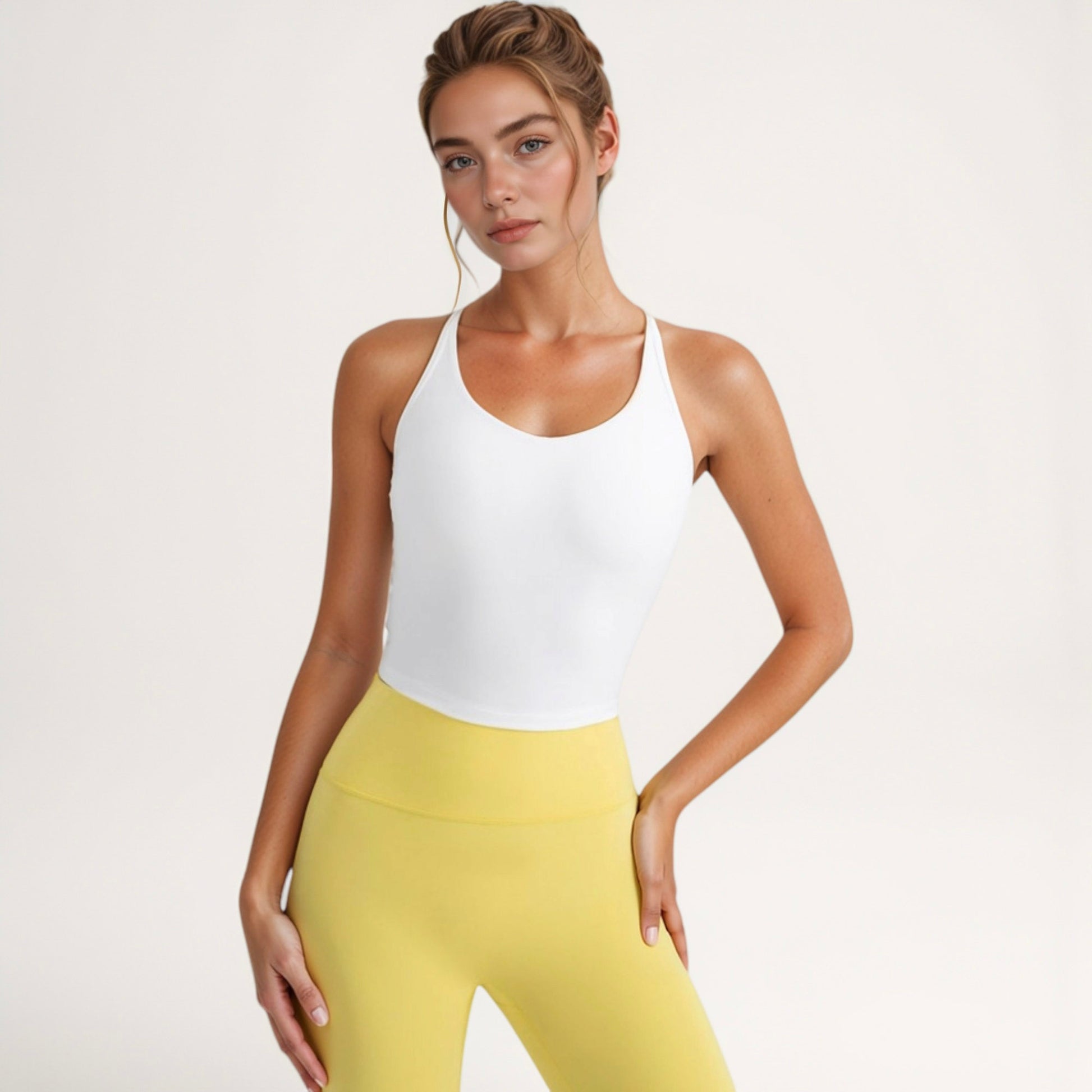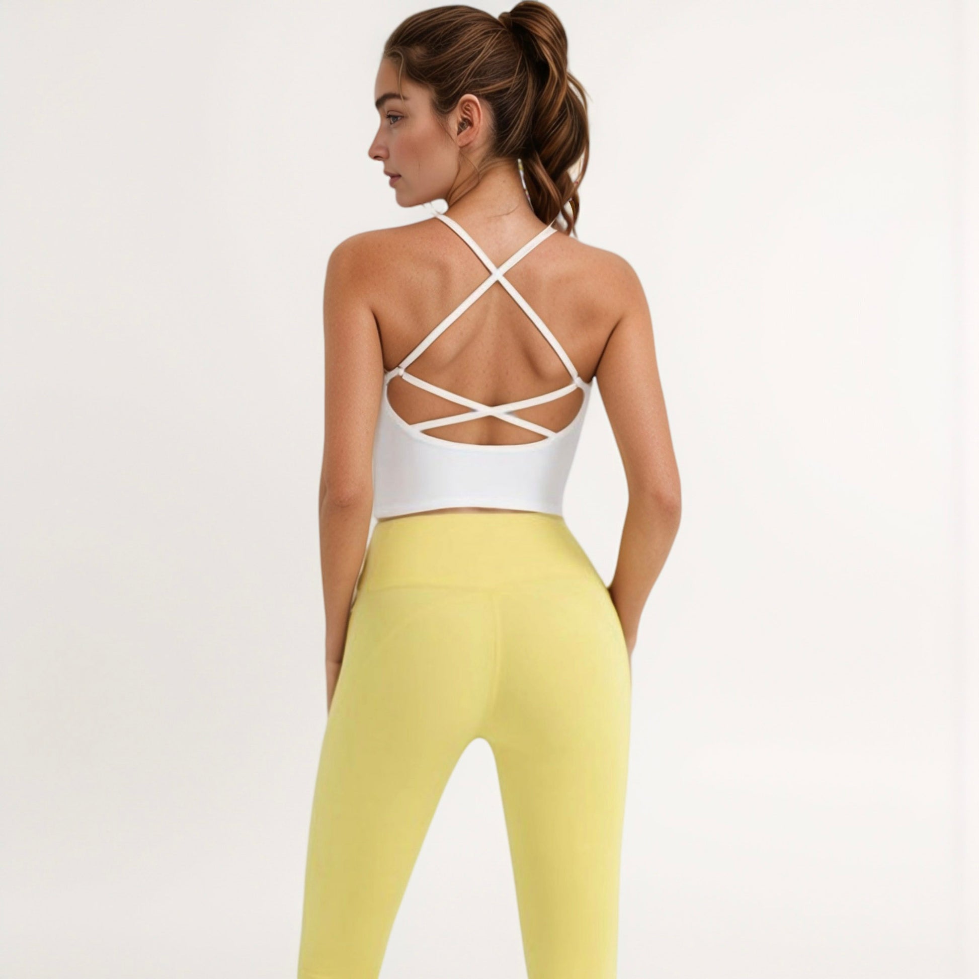Anna-Kaci Active Women's V-Neck Cropped Tank Top with Spaghetti Straps and Built-In Bra for Yoga and Everyday Comfort