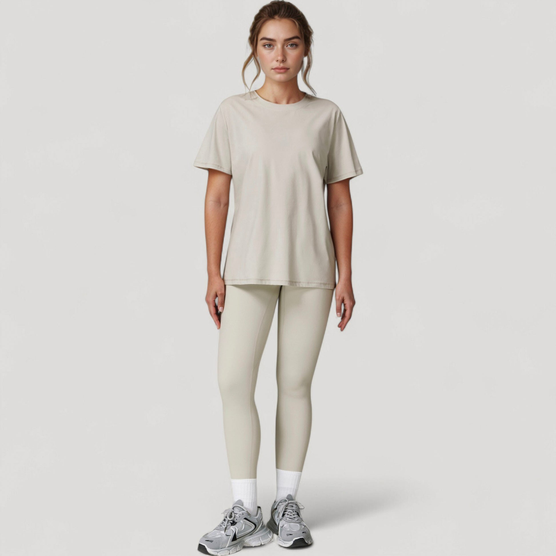 This women's relaxed fit crew neck t-shirt is crafted with soft, stretchy fabric for all-day comfort and breathability. The classic short sleeve design and smooth finish offer a clean, minimal look that pairs effortlessly with leggings, shorts, or jeans. Its lightweight construction allows easy layering or solo wear. Perfect for active days or casual lounging, this essential tee combines comfort with a modern silhouette.