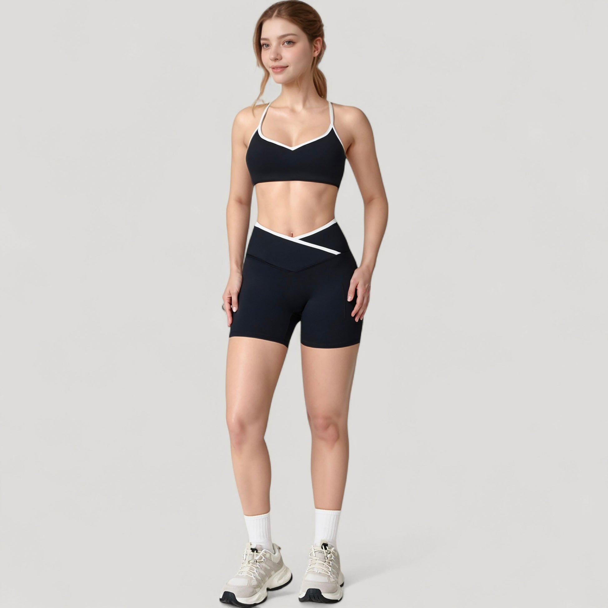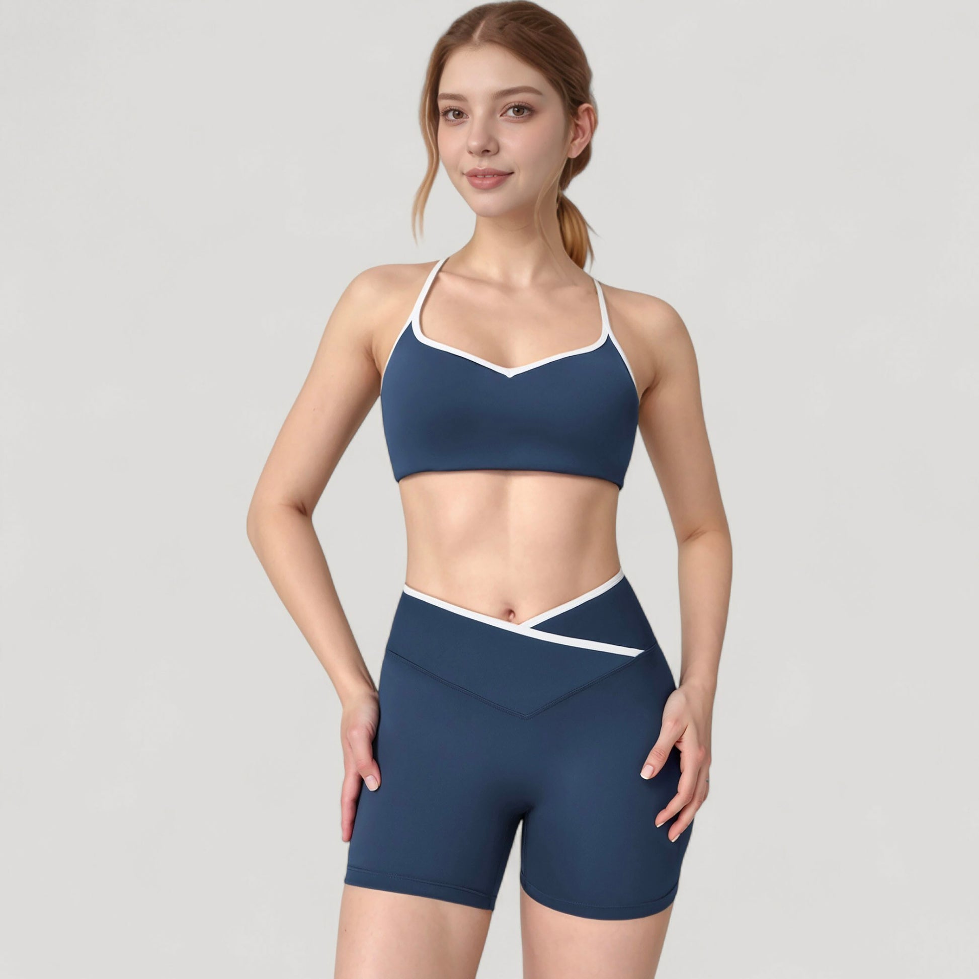 Anna-Kaci Active Women's V-Neck Sports Bra with Contrast Trim and Thin Adjustable Straps