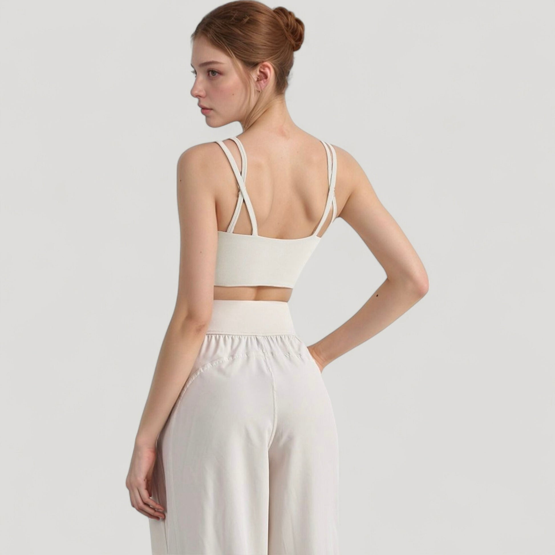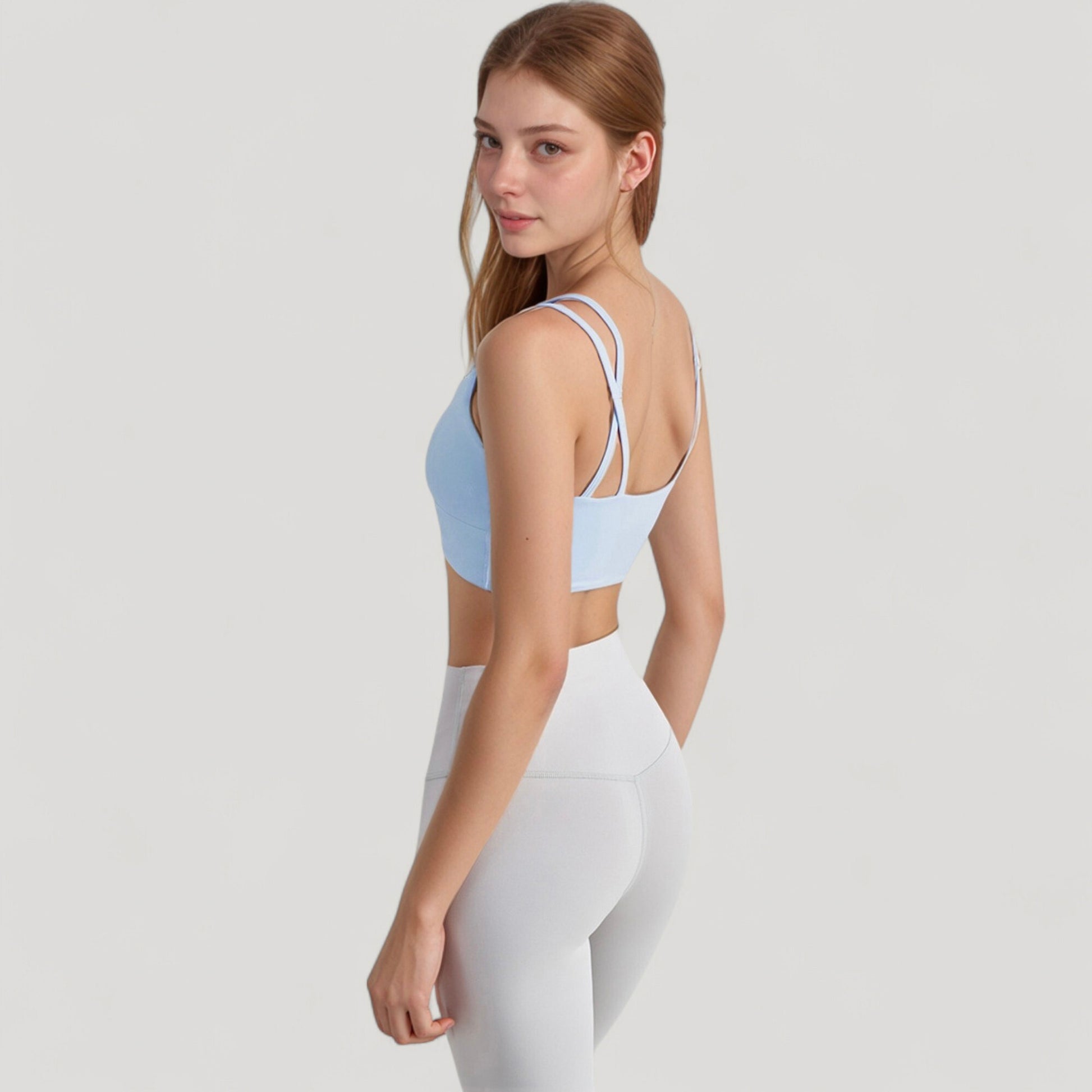 Anna-Kaci Active Women's V-Neck Double Strap Sports Bra Top with Lightweight Stretch Fabric and Soft Support