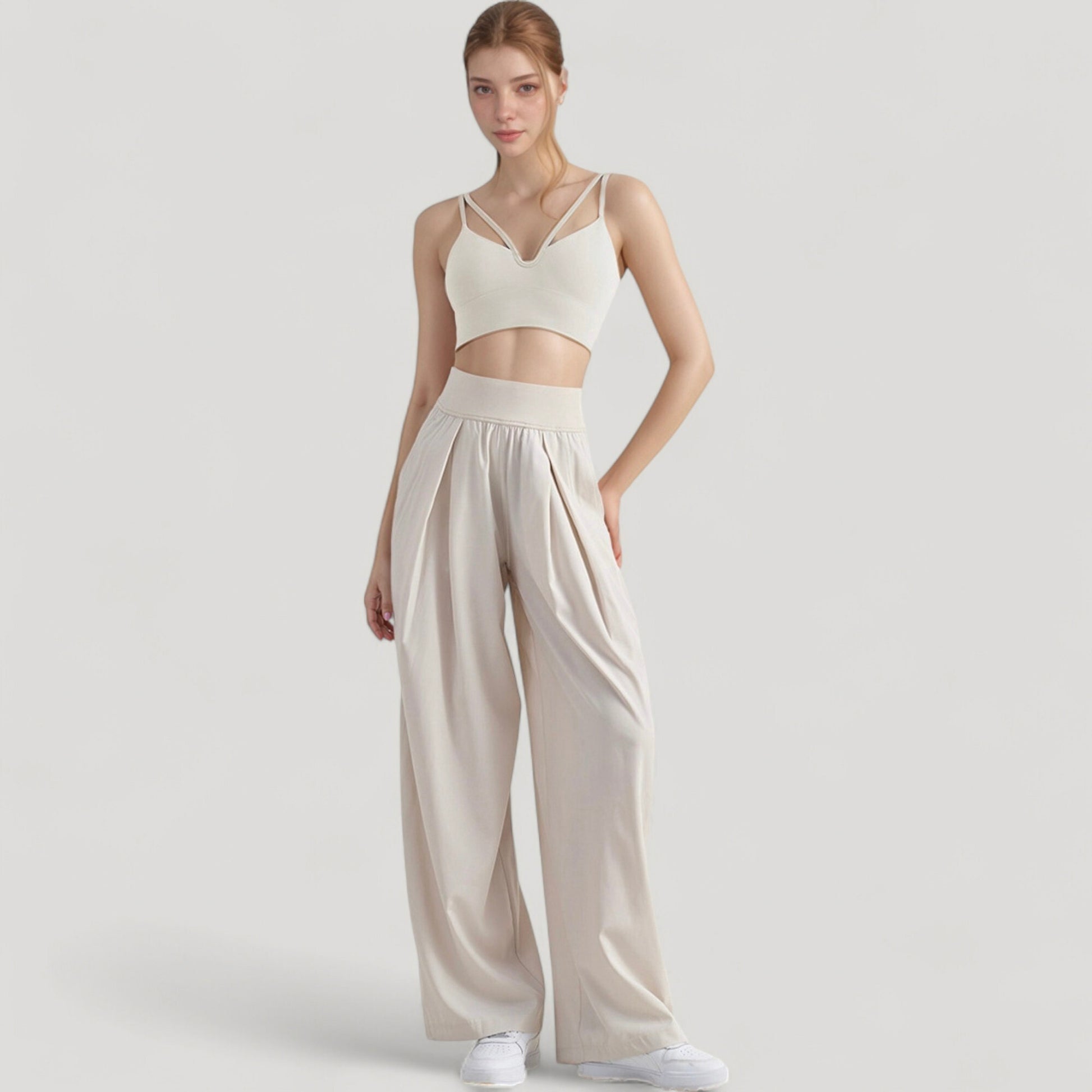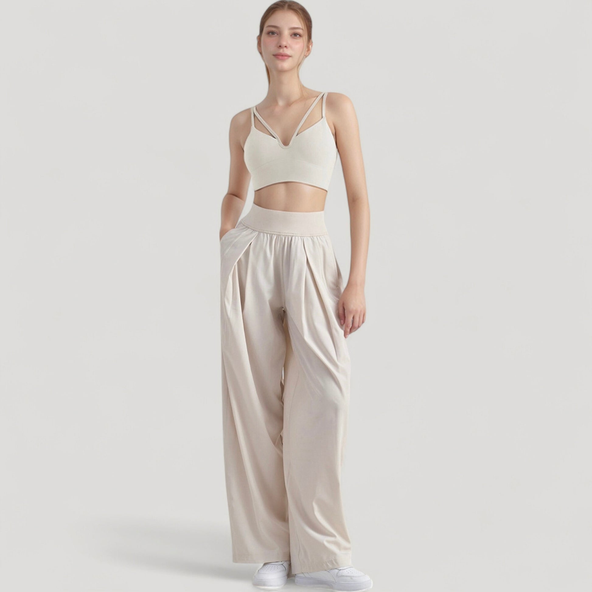 The Anna-Kaci Women's V-Neck Double Strap Sports Bra Top features a stylish dual-strap design and flattering V neckline for a bold yet functional look. Made from a soft, stretchy fabric, it offers light support and a breathable fit ideal for low-impact activities or all-day lounging. The clean silhouette and elevated strap detailing create a chic touch for your everyday activewear. Pair it with flowy shorts or leggings for a modern, confident style.