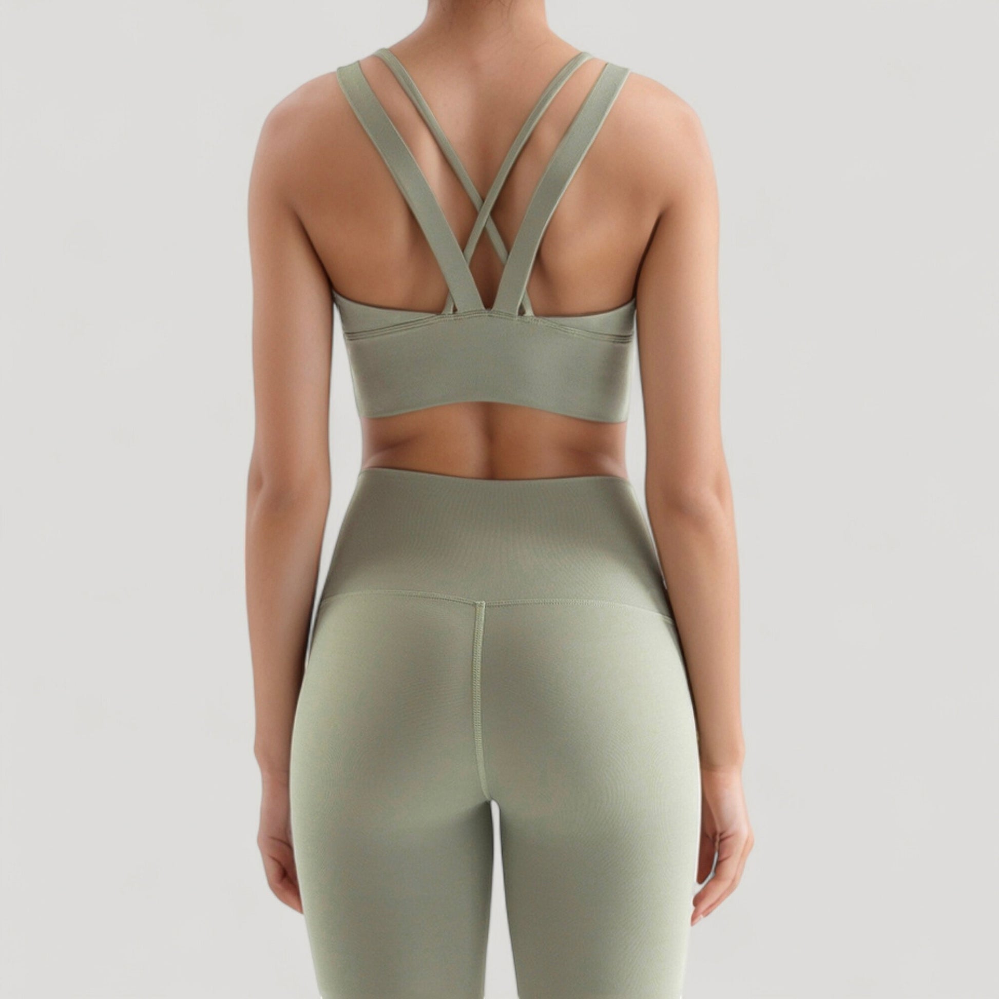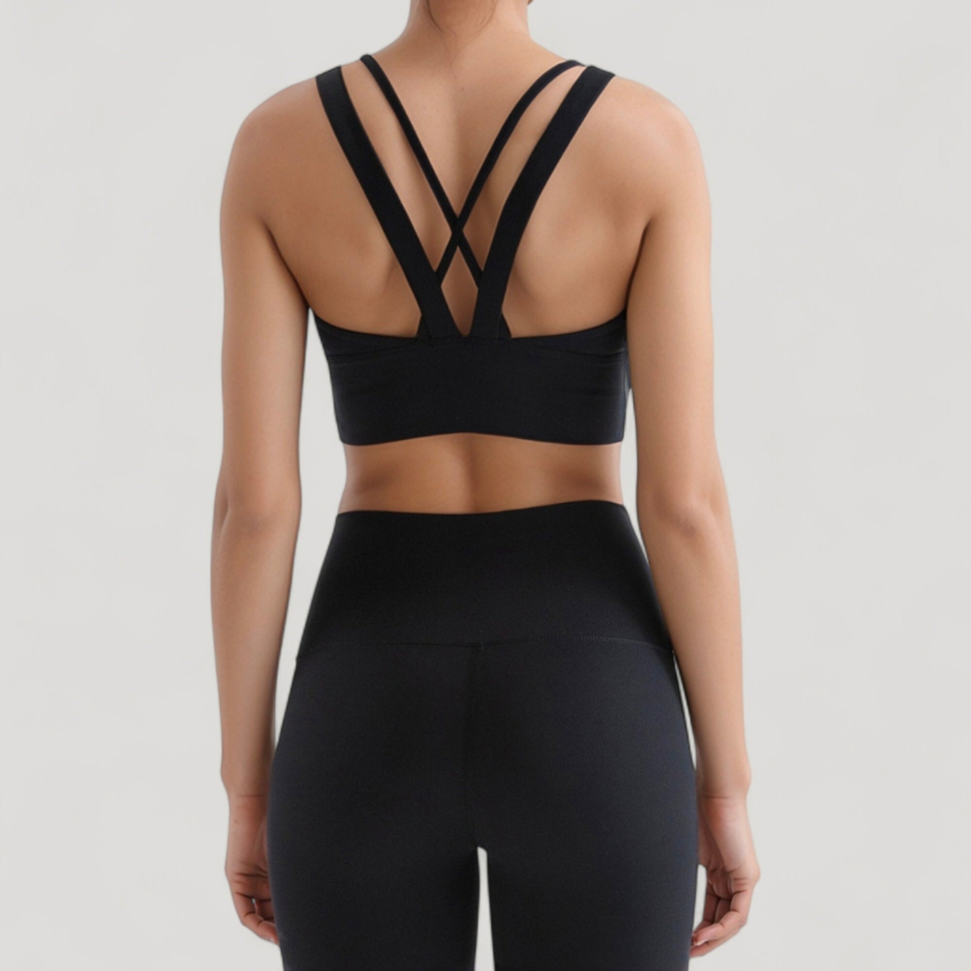 Anna-Kaci Active Women's Strappy V Neck Sports Bra Top with Wide Shoulder Bands and Soft Stretch Fabric