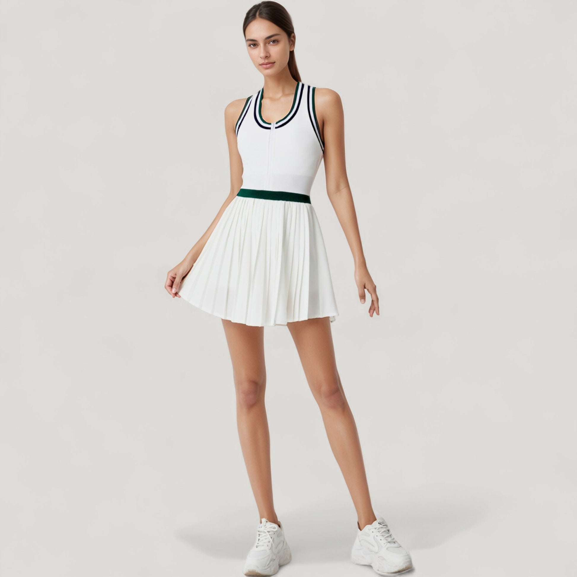 Anna-Kaci Active Women's Sleeveless Tennis Dress with Zip Front Contrast Trim Neckline and Pleated Skirt