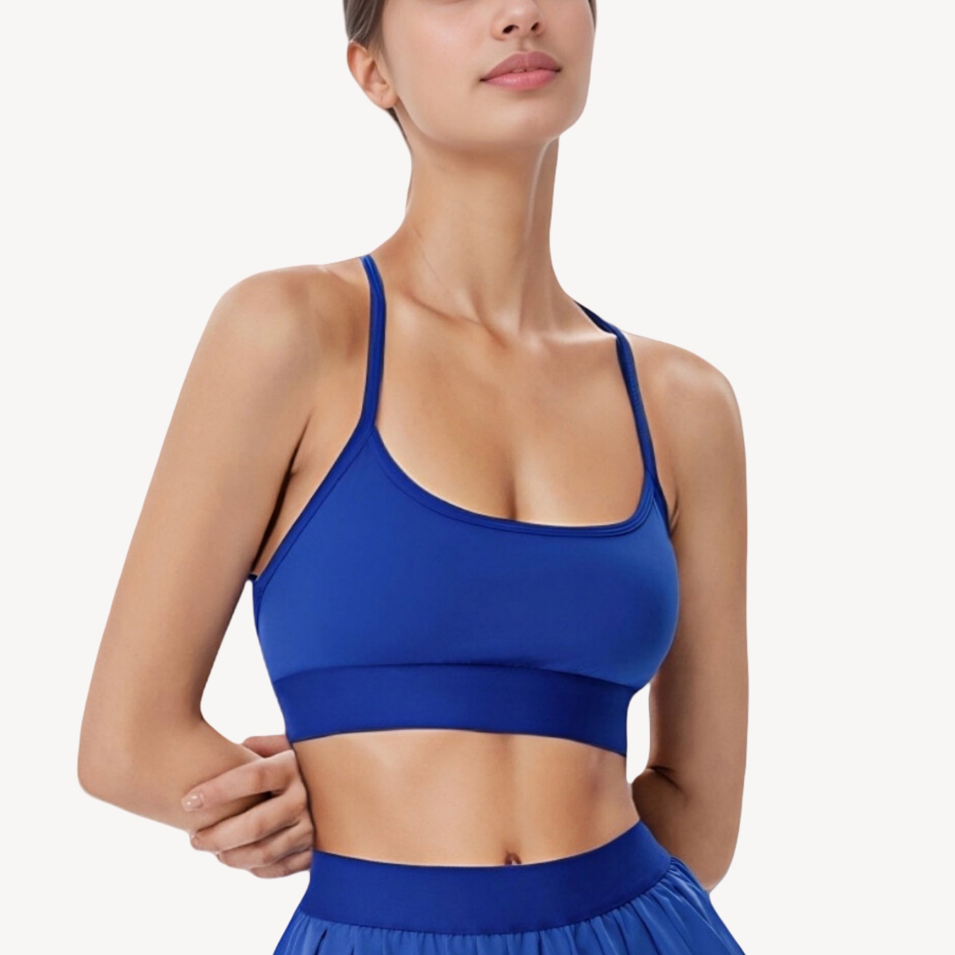 The Anna-Kaci Women's Strappy Sports Bra combines minimalist design with essential support. Featuring a flattering scoop neckline and thin adjustable straps, this bra is ideal for low to medium-impact activities. The wide underband ensures a secure fit, while the soft stretch fabric moves with you for all-day comfort. Stylish enough to wear solo or layered, it's a versatile staple for activewear and lounge looks.