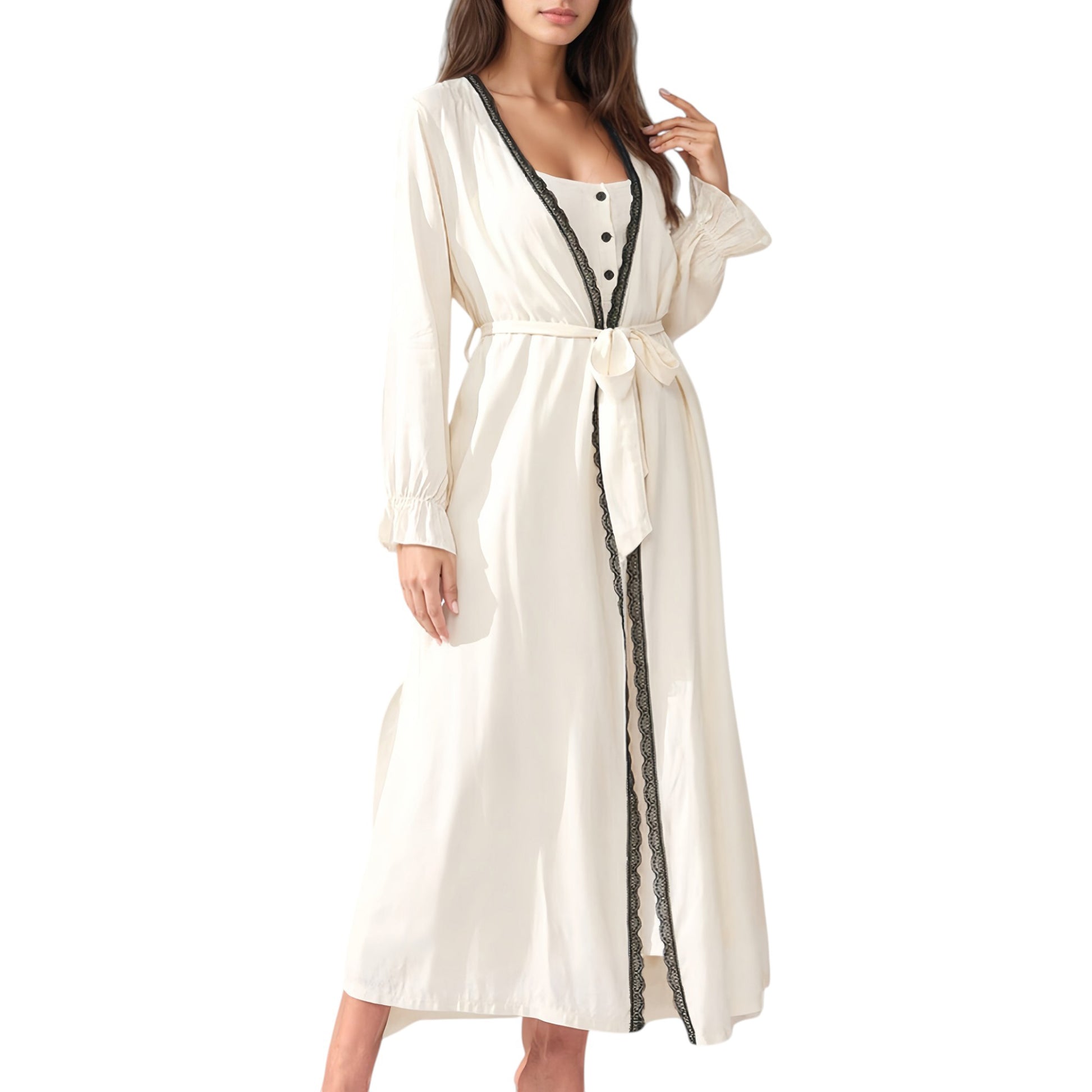 Anna-Kaci Lounge Women's Two-Piece Lounge Nightdress Set with Scoop Neck Button Front and Longline Open Robe