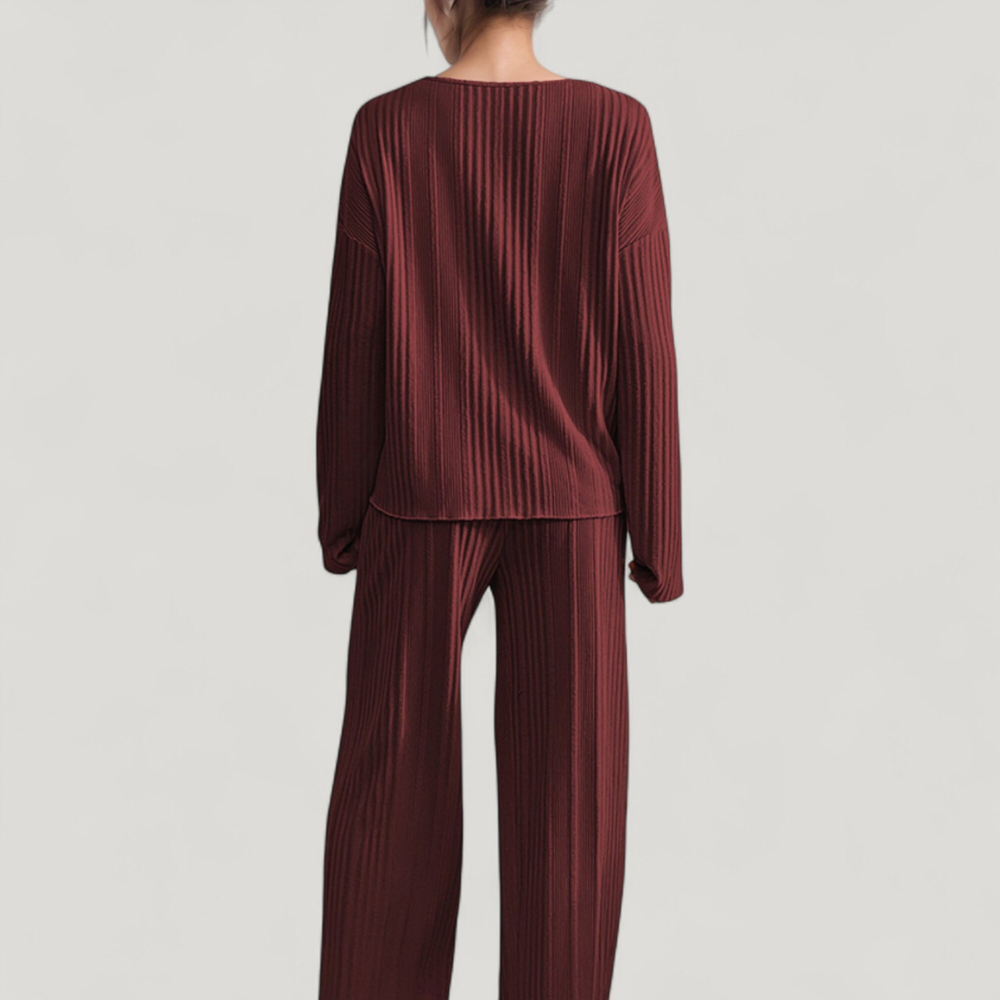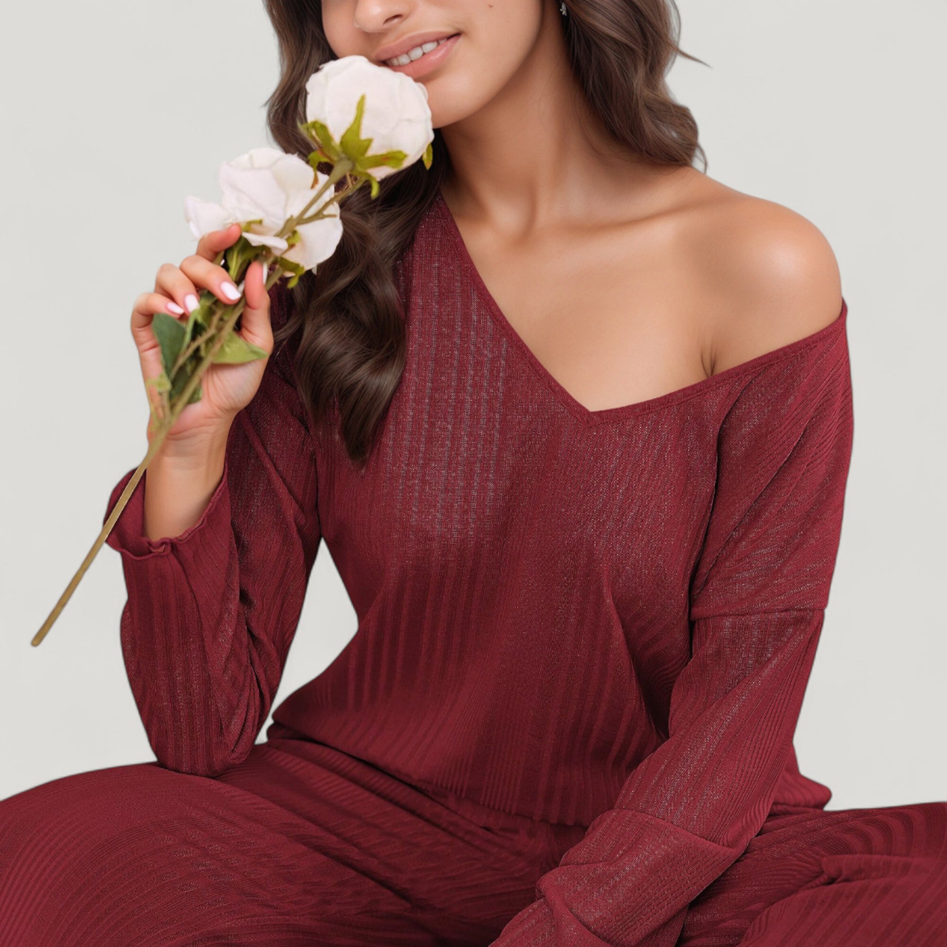 The Anna-Kaci Women's Pajama Set combines modern style with everyday comfort in this effortlessly chic two-piece design. The ribbed knit fabric adds subtle texture, while the long sleeve crop top and high-waisted pants offer a flattering silhouette. Soft, stretchy, and breathable, this set is ideal for lounging at home or casual daywear. A versatile addition to your laid-back wardrobe.