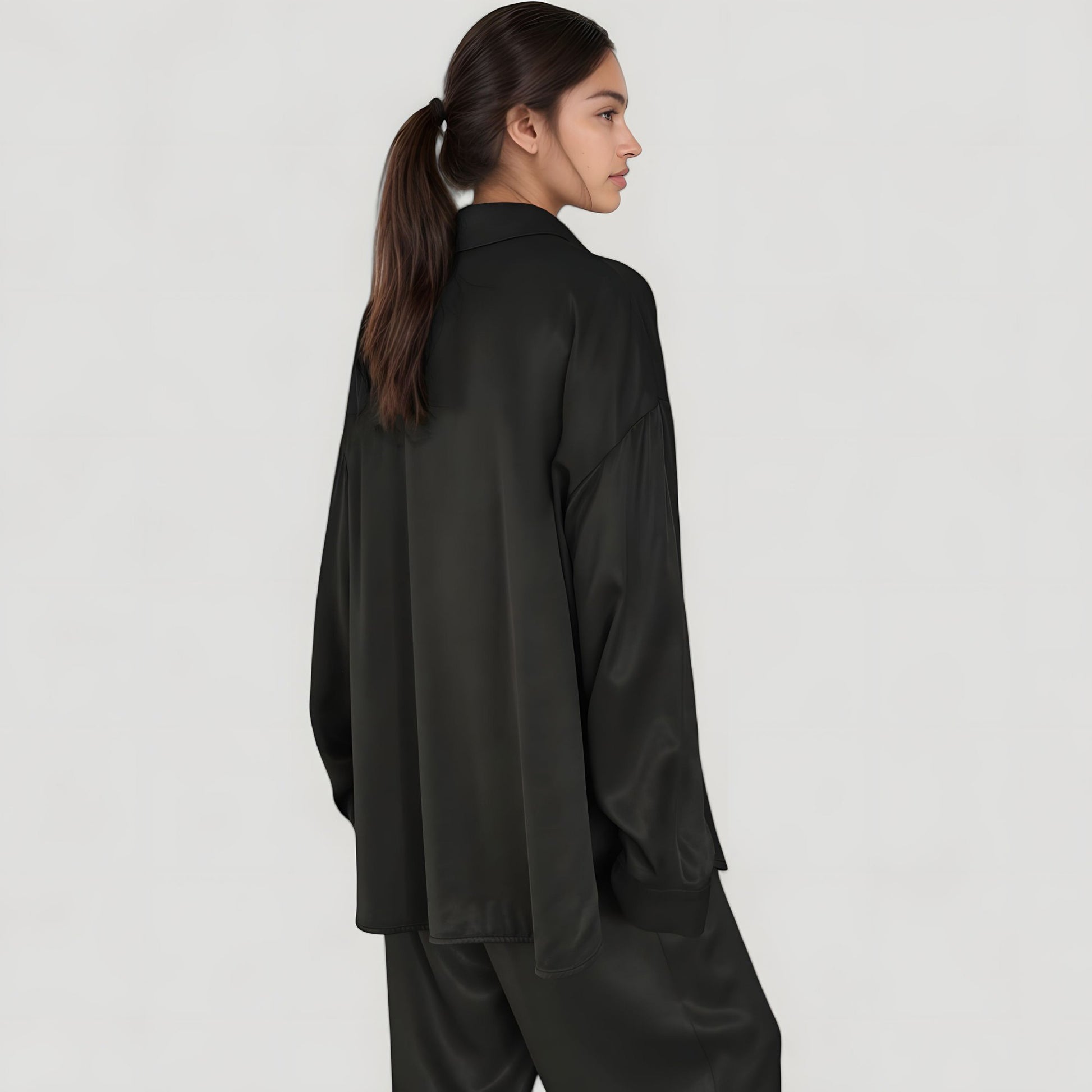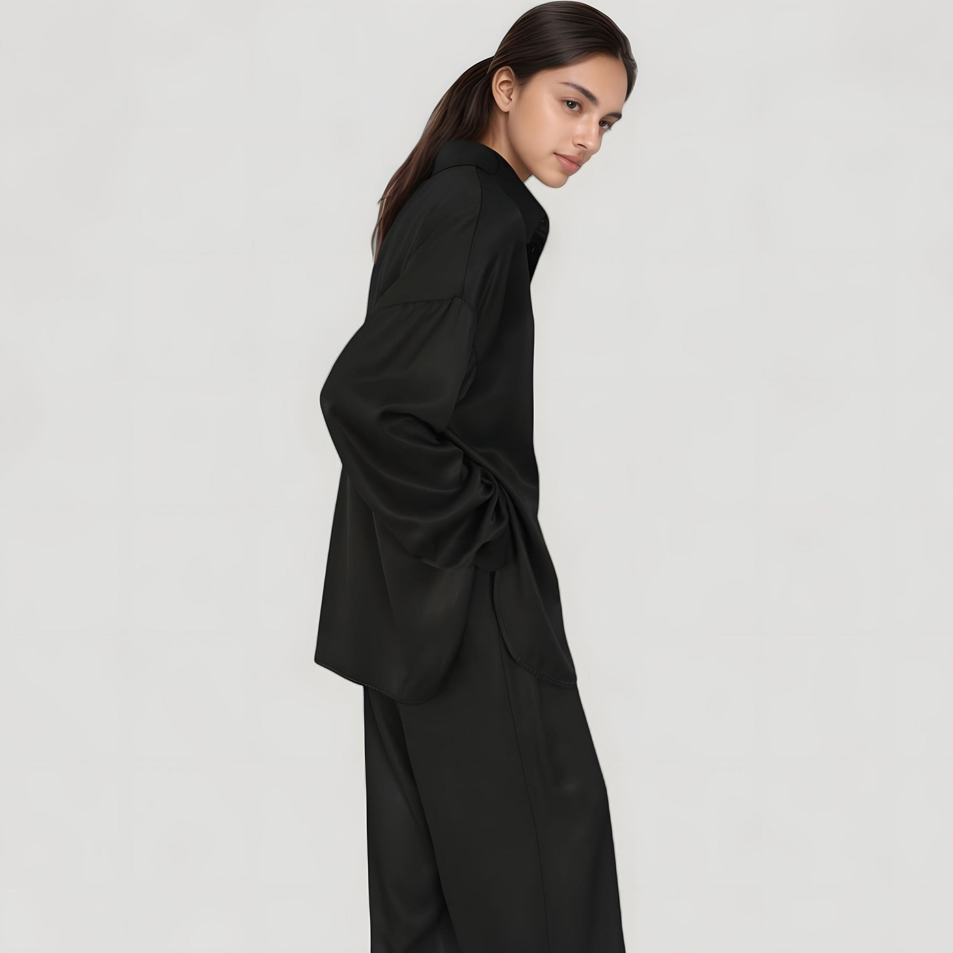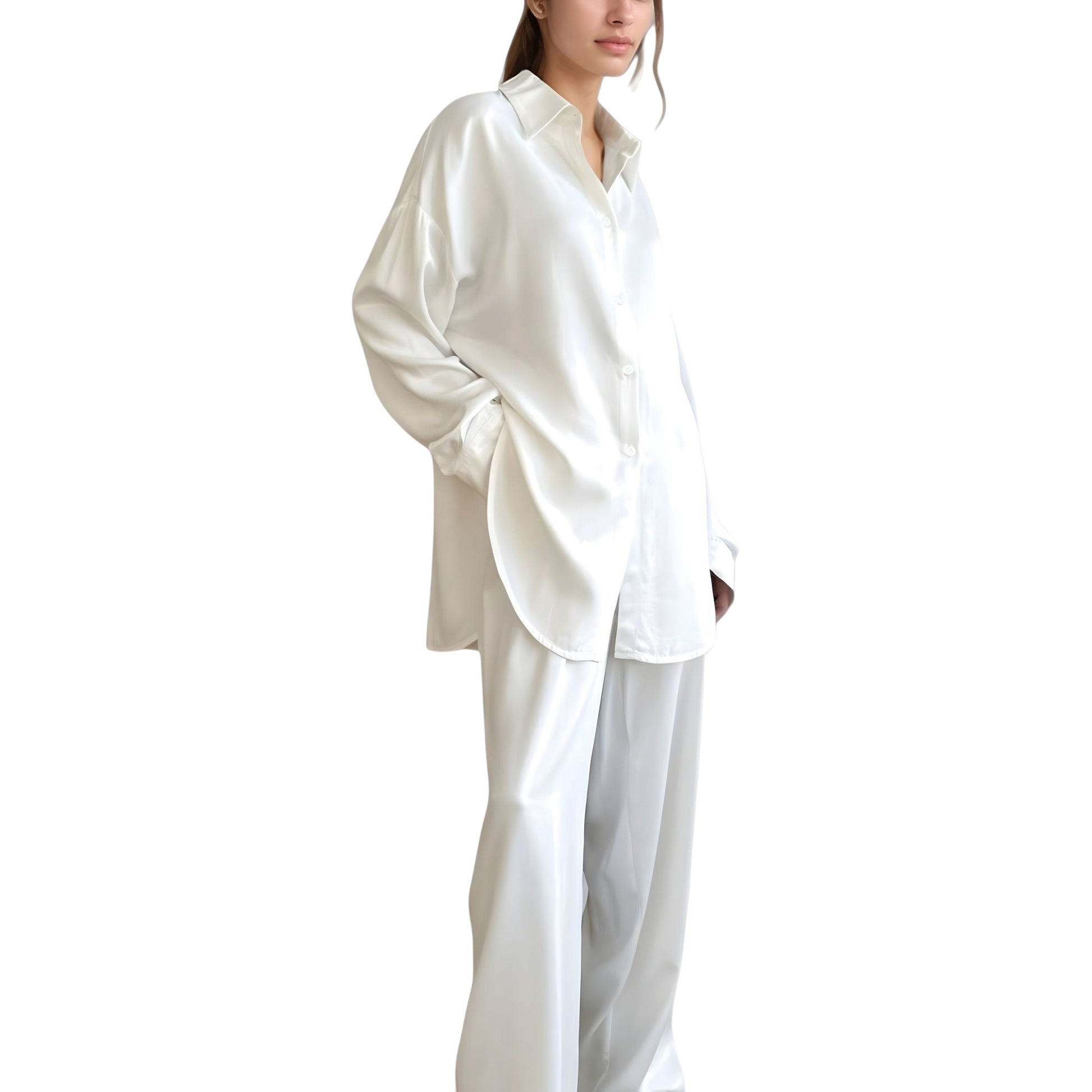 Anna-Kaci Lounge Women's Relaxed Fit Satin Button-Down Shirt and Wide Leg Pants Two-Piece Lounge Pajama Set