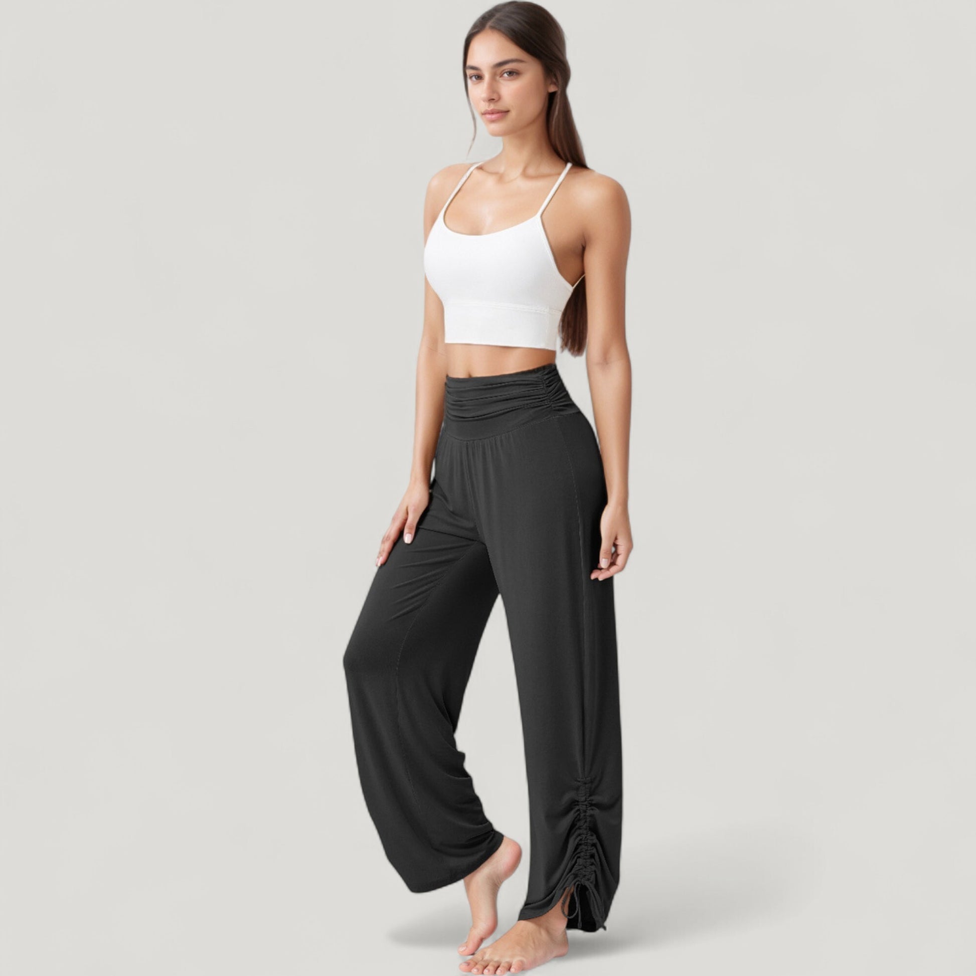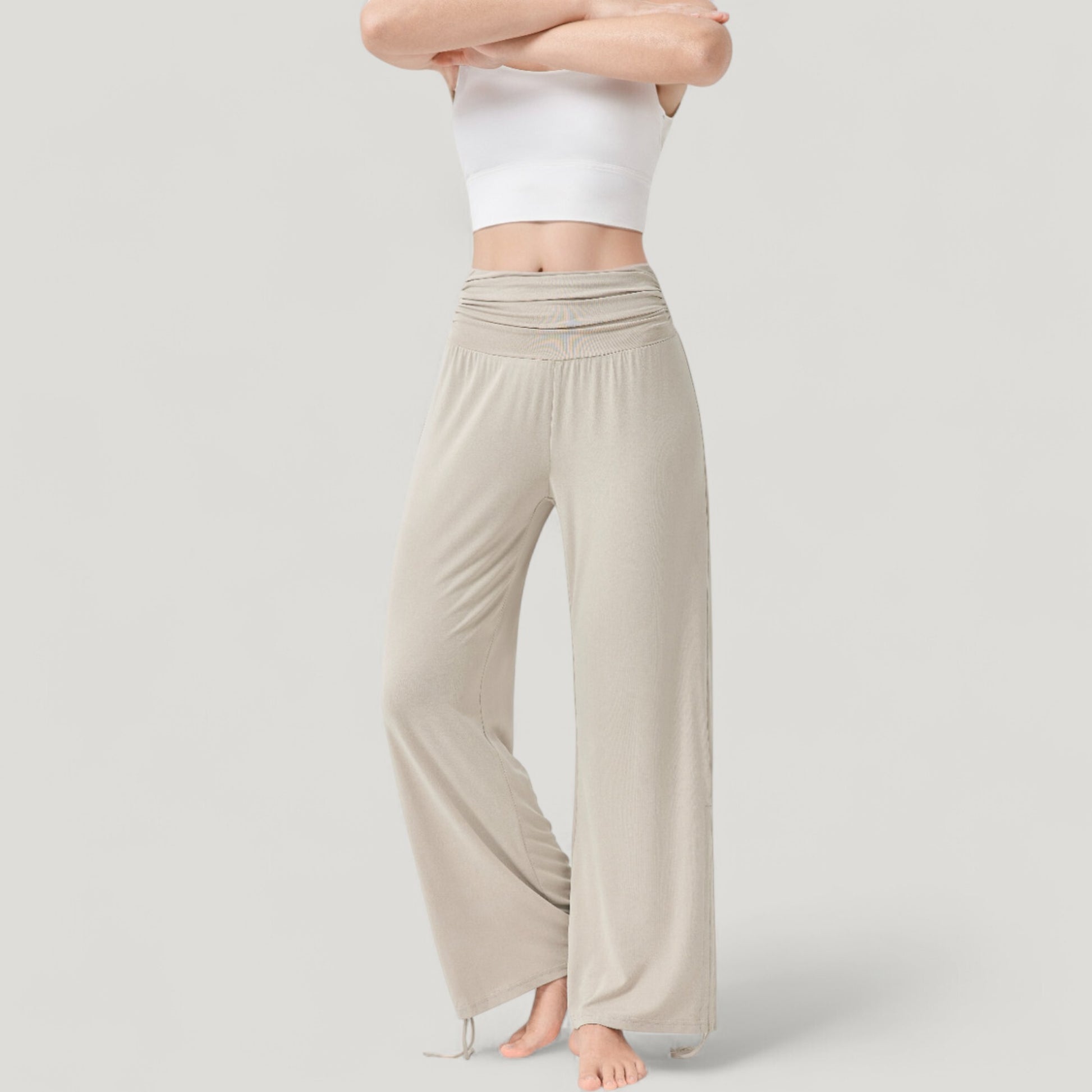 Anna-Kaci Active Women's Wide Leg Lounge Pants with Fold Over Waistband and Adjustable Drawstring Hem