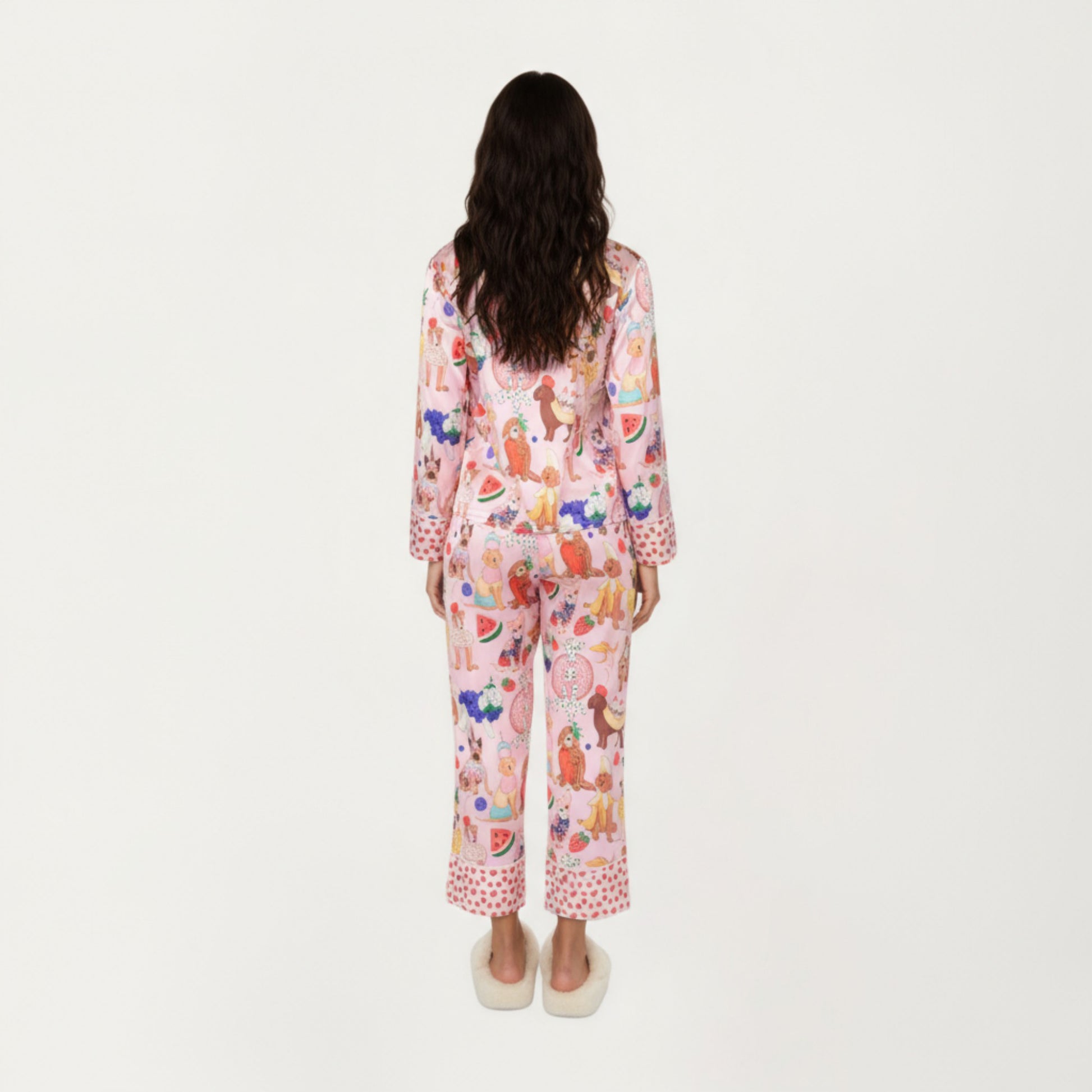 The Anna-Kaci Women's Long Sleeve Button Front Pajama Set adds a fun and cozy touch to your sleepwear collection. Designed with a playful dog print on smooth, silky fabric, this two-piece set includes a button-down top and matching pants for a coordinated, relaxed fit. Its lightweight, breathable material ensures all-day lounging comfort and a perfect night's sleep while keeping your style lively and charming.