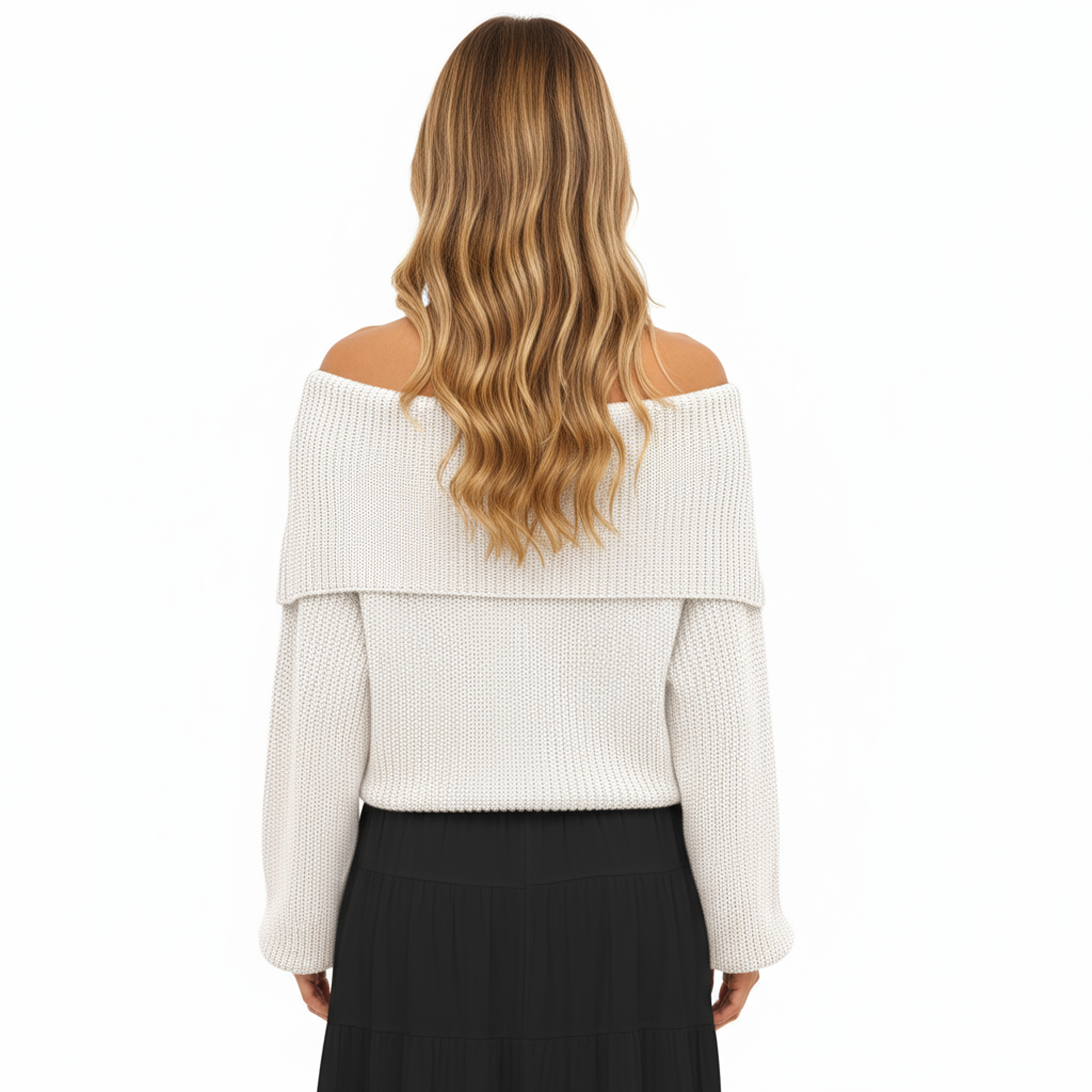 The Anna-Kaci Women's Off Shoulder Long Sleeve Knit Pullover Sweater adds a chic, feminine touch to your wardrobe. Featuring a soft knit texture and a wide off-shoulder neckline, this sweater offers a relaxed fit for all-day comfort. Perfect for layering or wearing on its own, it blends elegance and ease for any casual or dressed-up look.