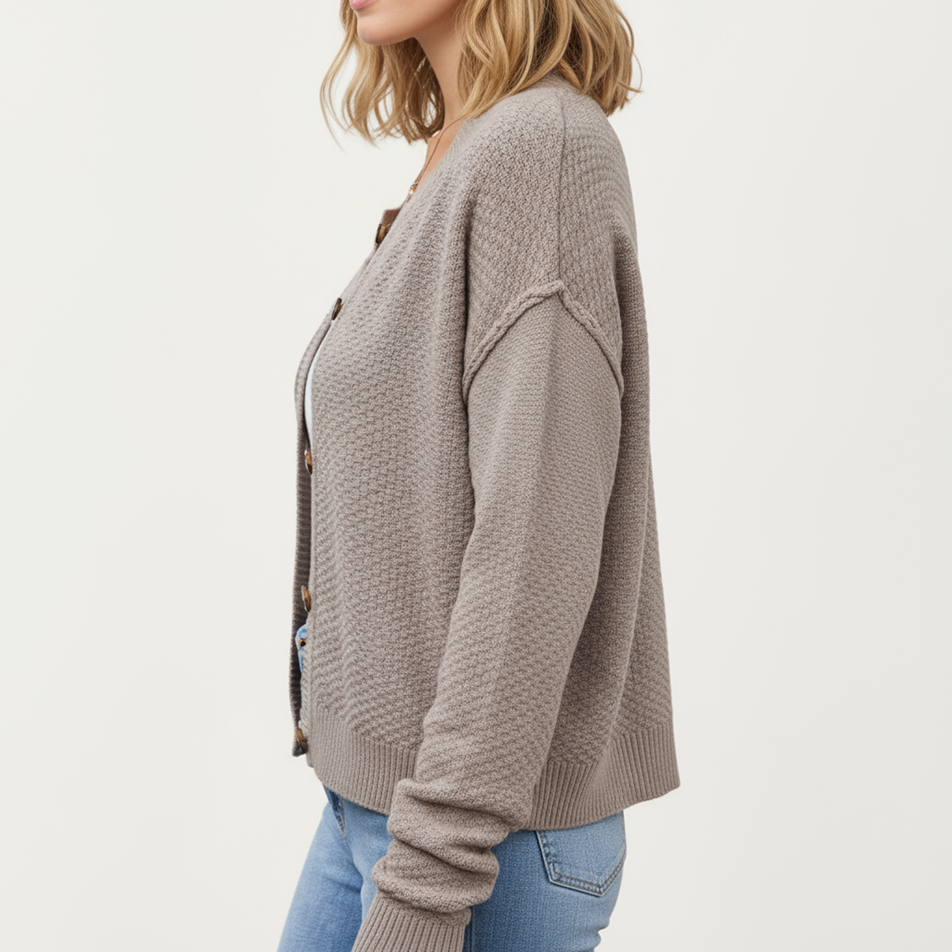 The Anna-Kaci Women's Button Front Knit Cardigan offers a cozy and stylish layer for any outfit. Designed with textured knit fabric, a classic button-down front, and ribbed sleeve cuffs, this cardigan brings both warmth and effortless charm. Its versatile silhouette makes it perfect for layering over tops, dresses, or casual wear year-round.