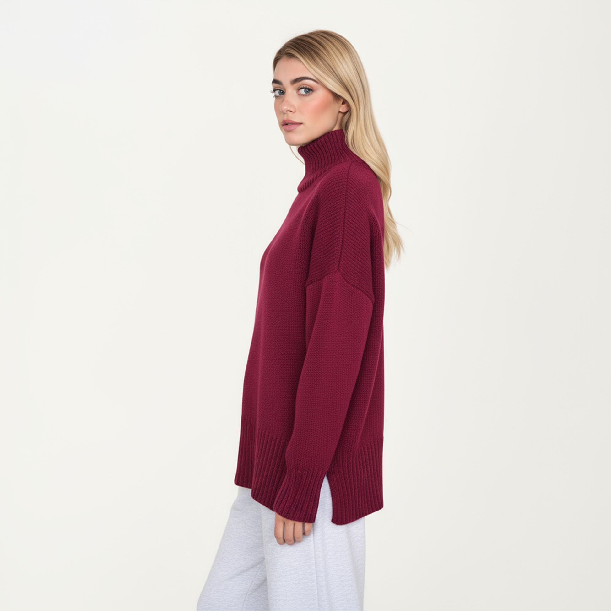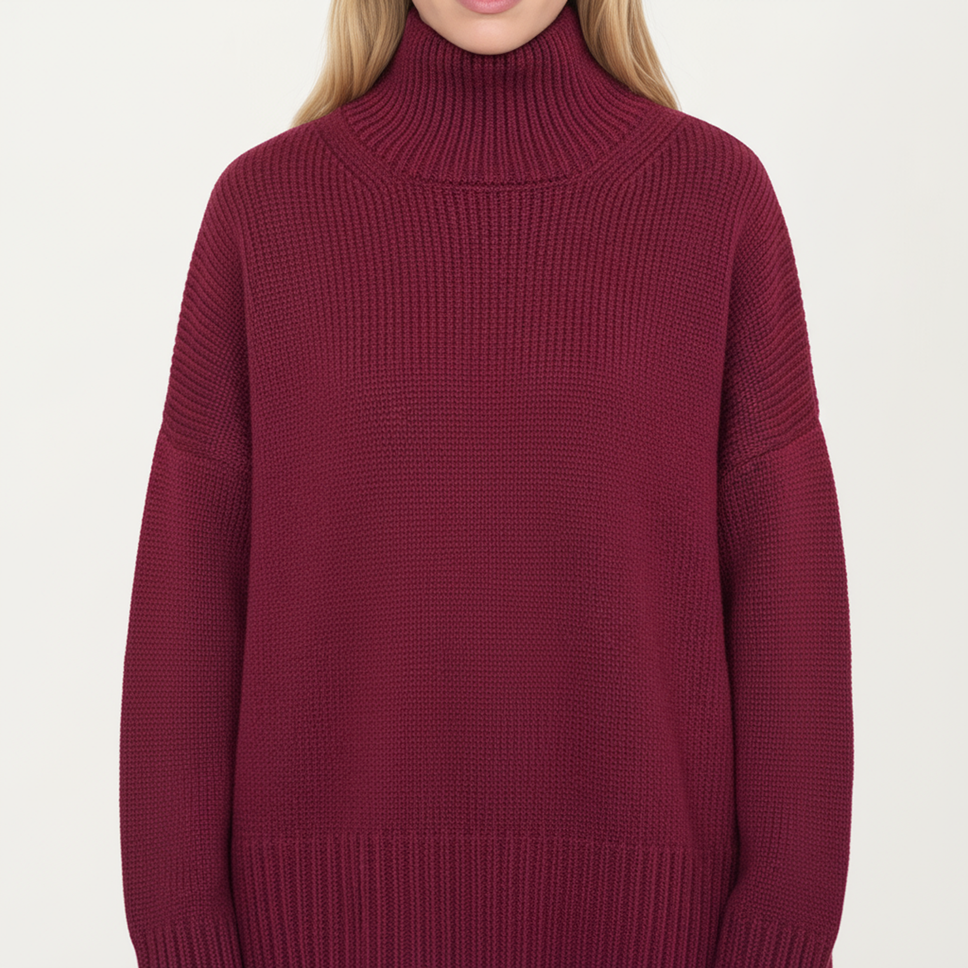 Anna-Kaci Women's Oversized Turtleneck Sweater with Long Sleeves and Ribbed Hem