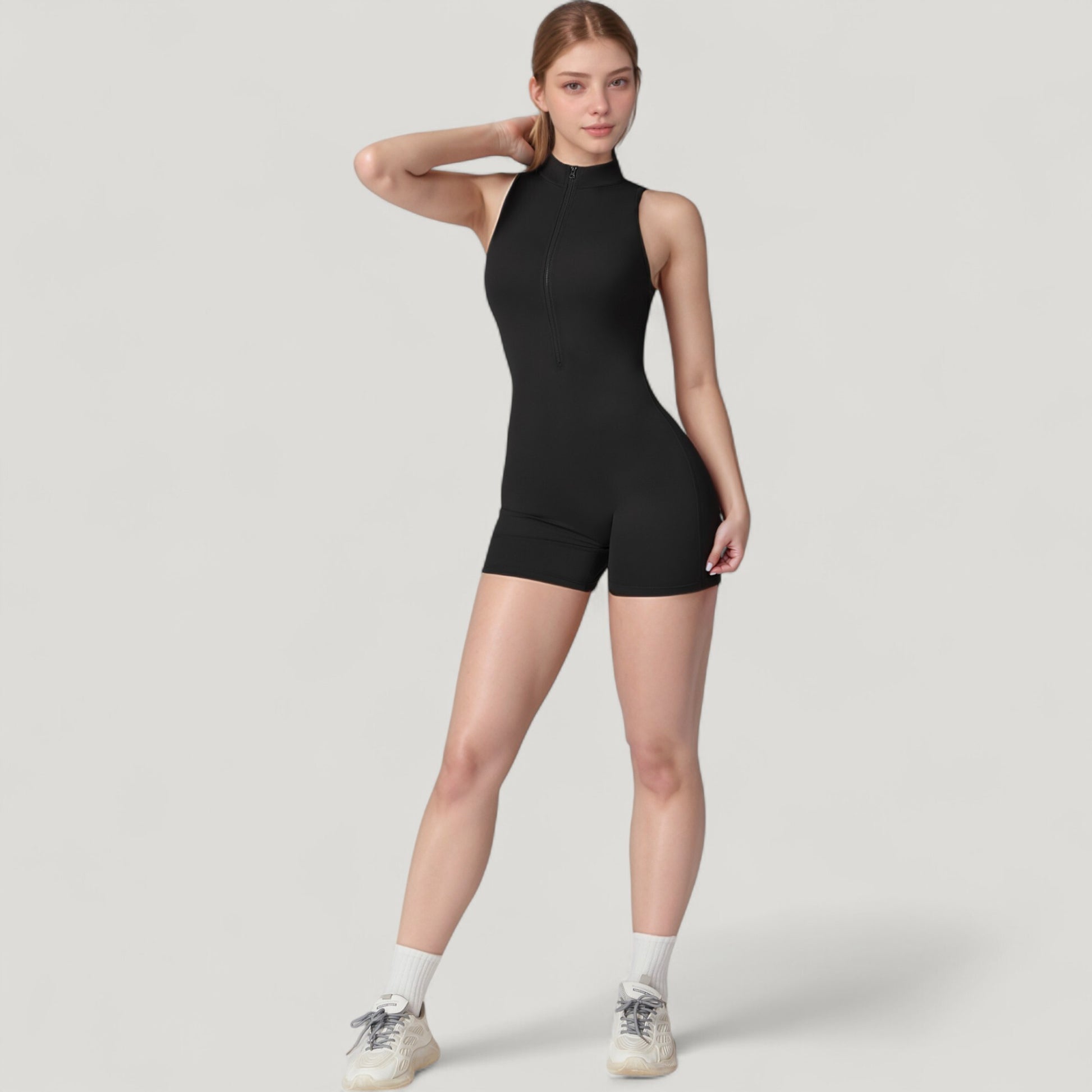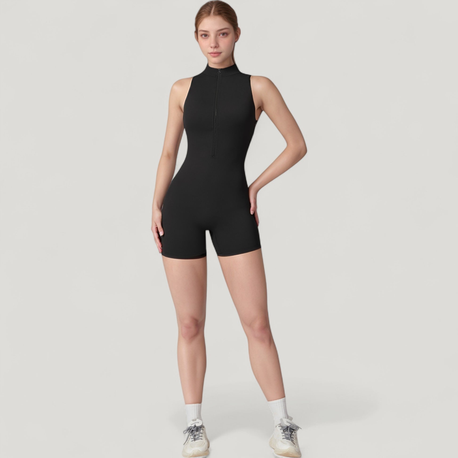 Anna-Kaci Active Women's Sleeveless Zip Front Activewear Romper with Open Back and Contoured Fit
