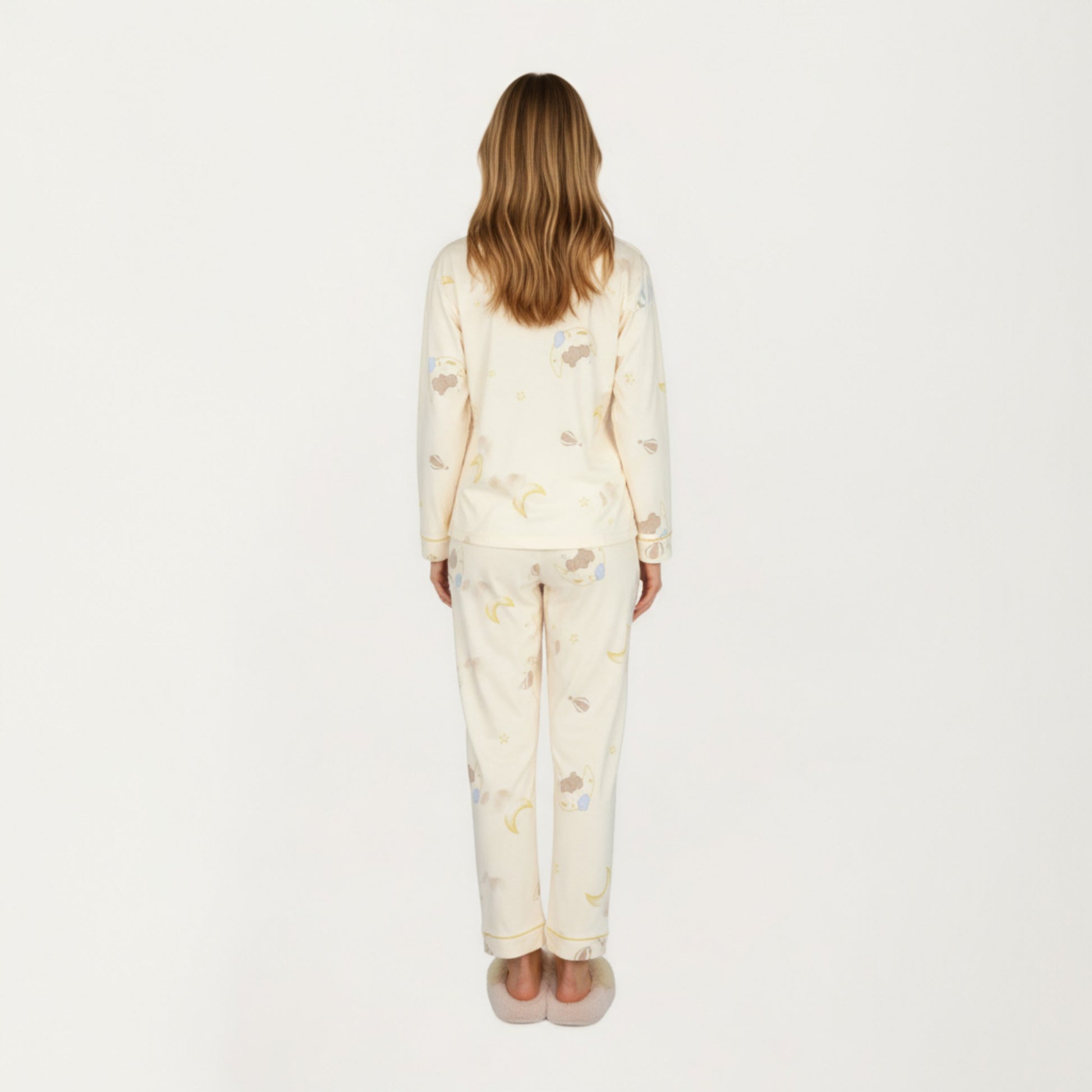 Anna-Kaci Lounge Women's 2-Piece Set Long Sleeve Button Front Top and Relaxed Fit Pants Pajama Set with Moon and Star Print