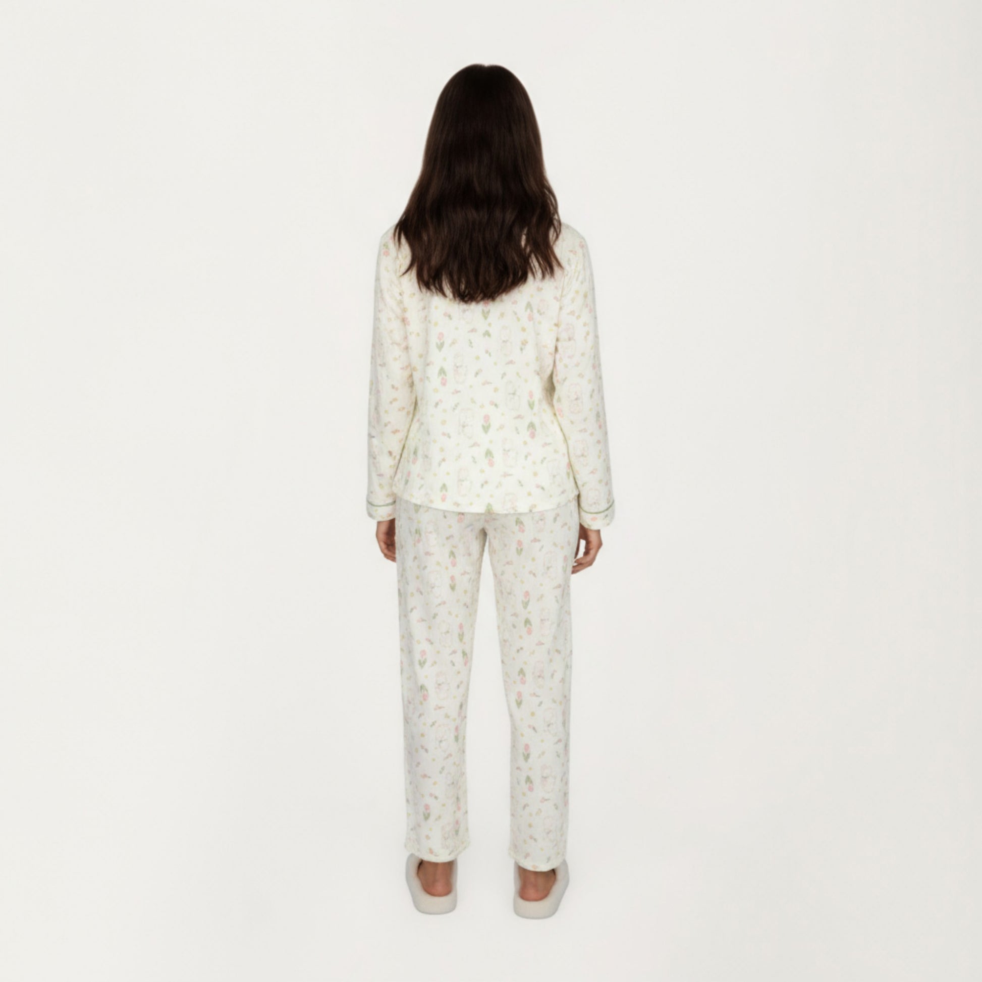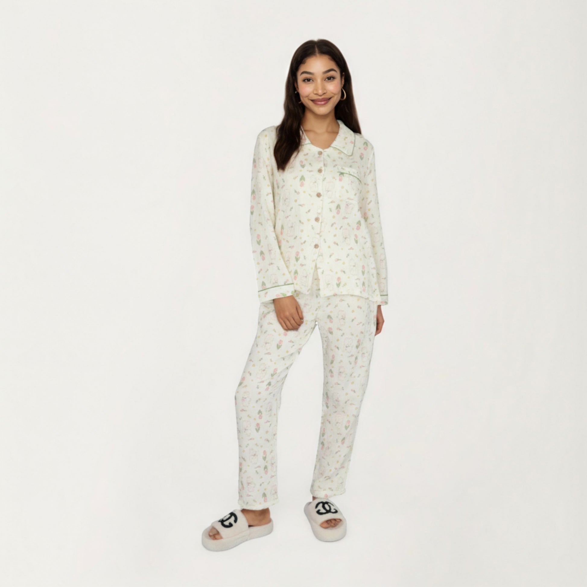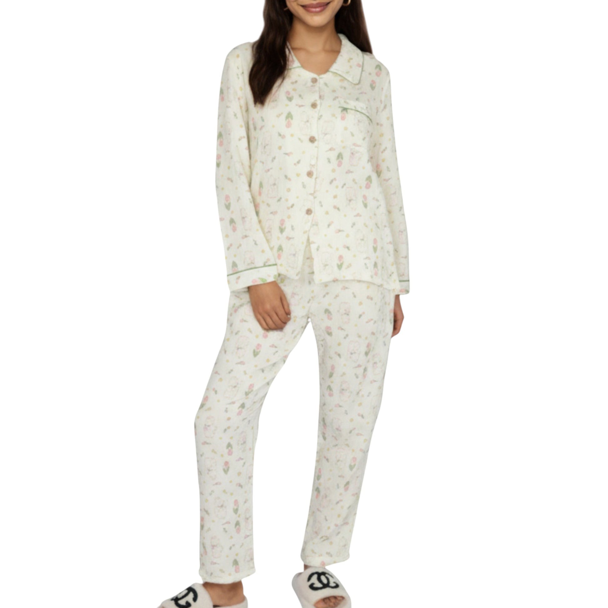 Anna-Kaci Lounge Women's 2-Piece Set Long Sleeve Button Front Top and Relaxed Fit Pants Pajama Set with Tulip Print
