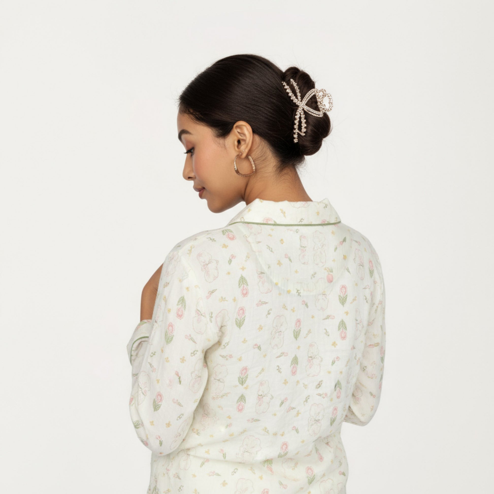 The Anna-Kaci Women's 2-Piece Set Long Sleeve Button Front Top and Relaxed Fit Pants Pajama Set brings a delicate floral touch to cozy loungewear. Featuring a charming tulip print, this set includes a long sleeve button-front top and matching relaxed-fit pants made from soft, breathable fabric for all-day comfort. Perfect for bedtime or casual mornings, it blends femininity with practicality.