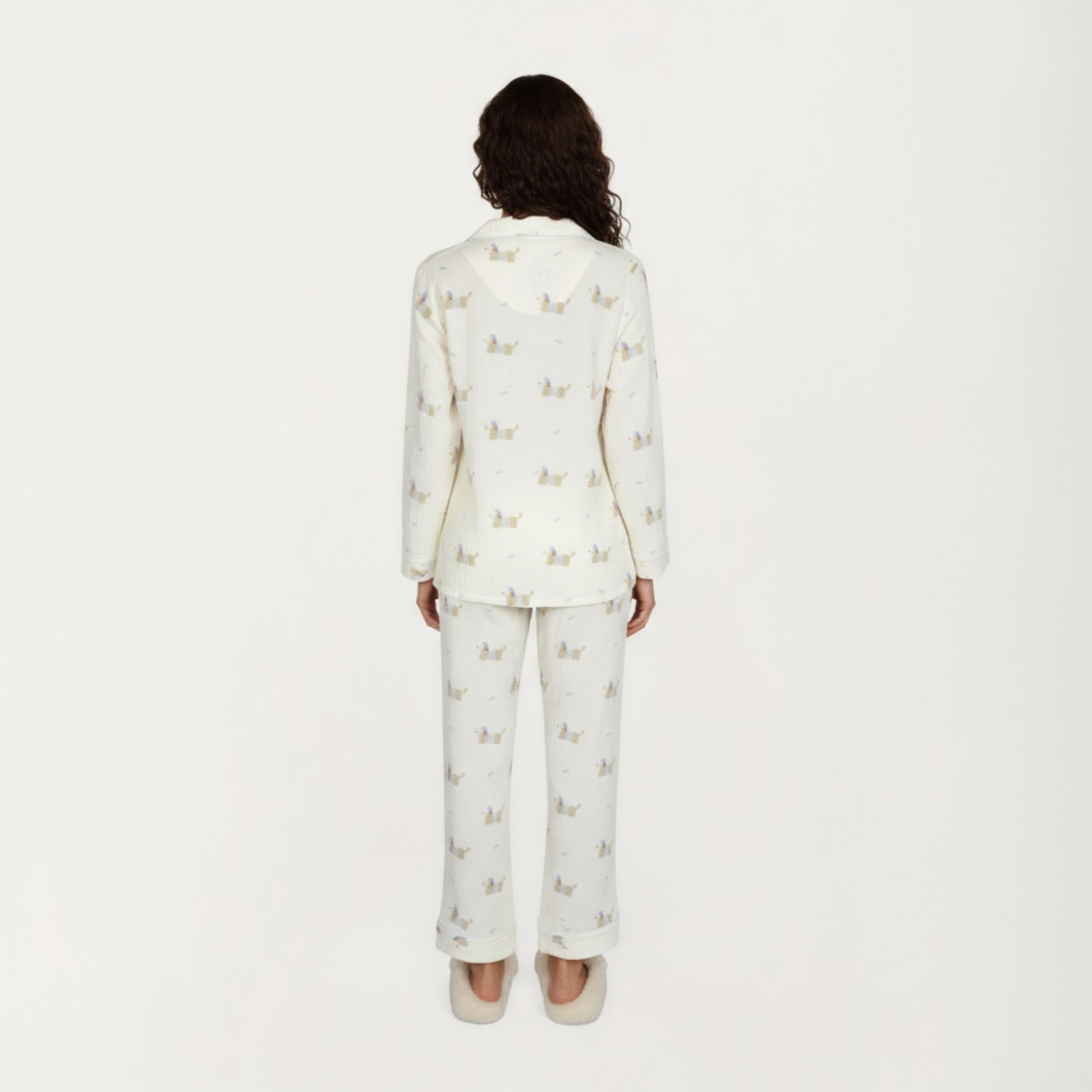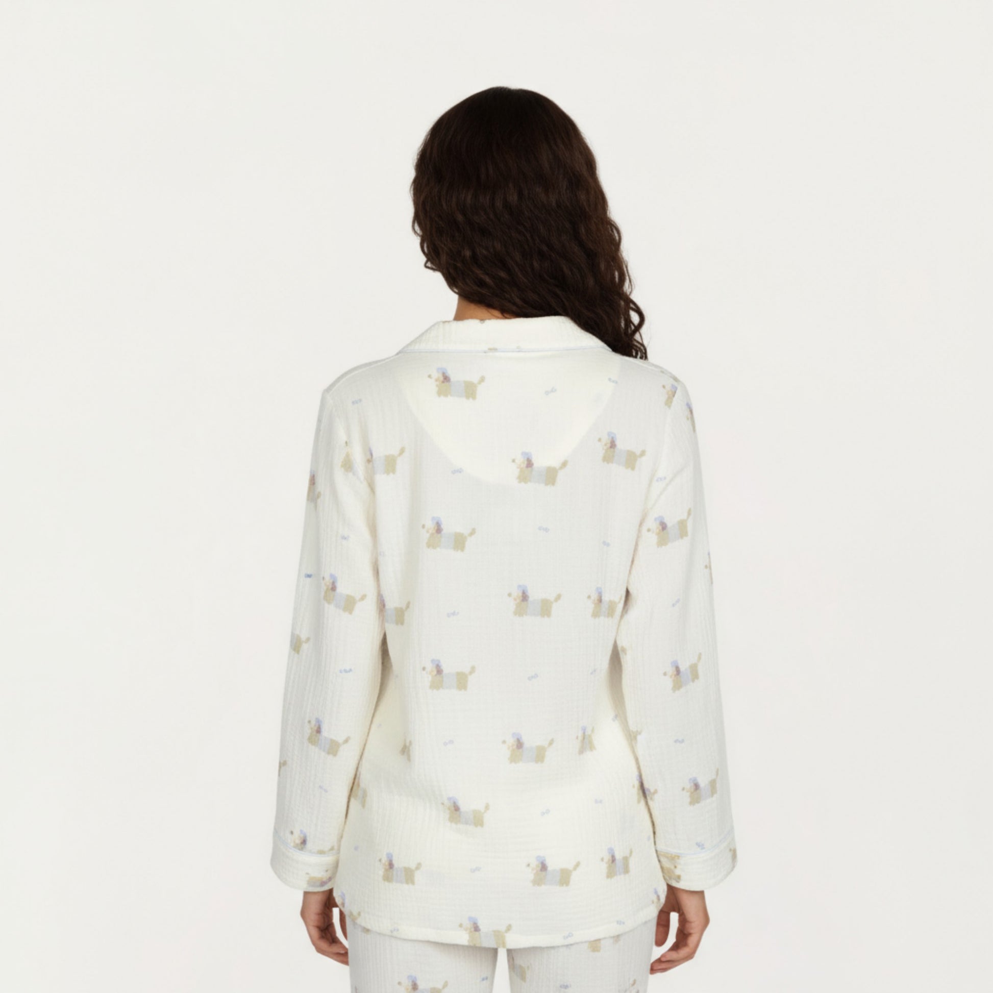 Anna-Kaci Lounge Women's 2-Piece Set Long Sleeve Button Front Top and Relaxed Fit Pants Pajama Set with Dog Print