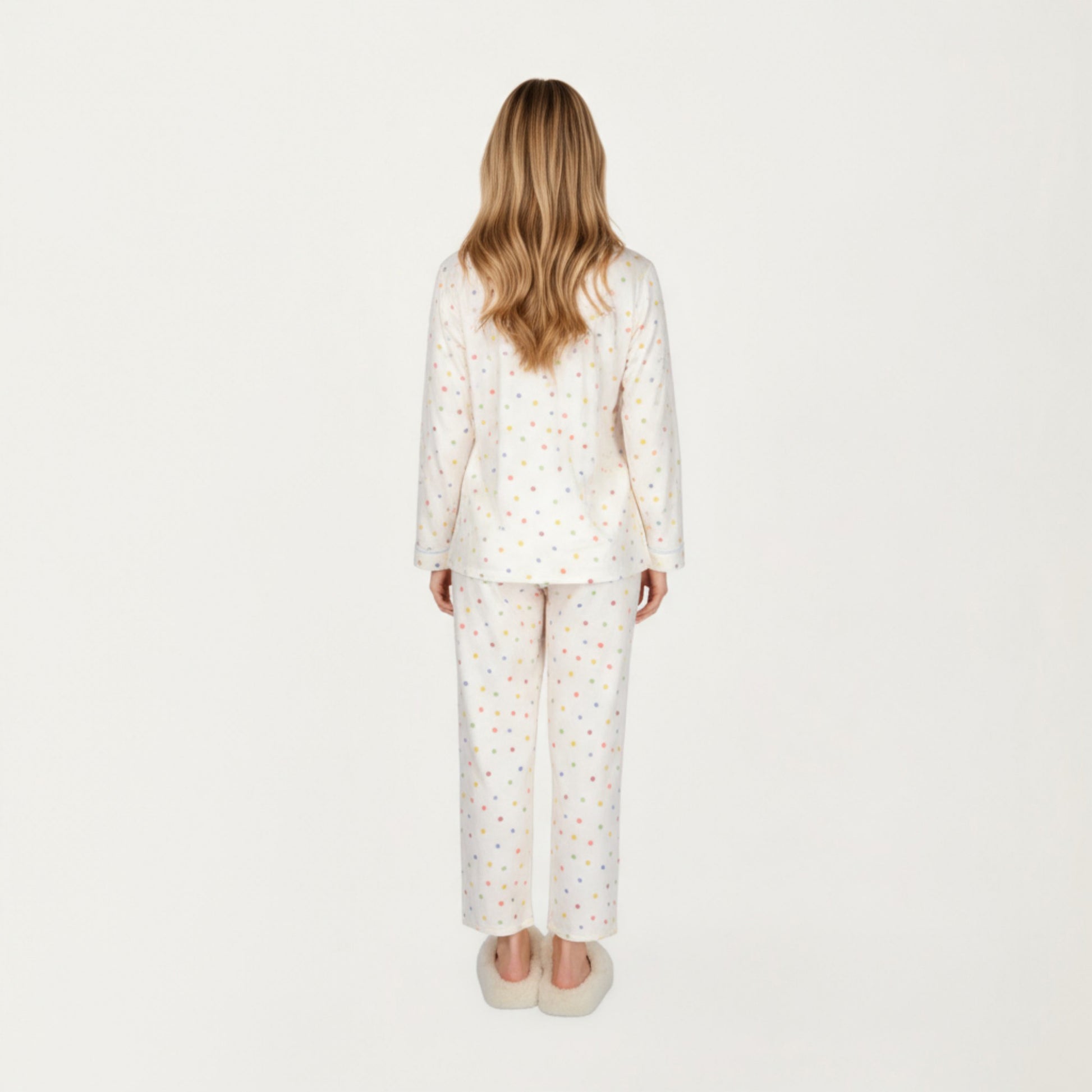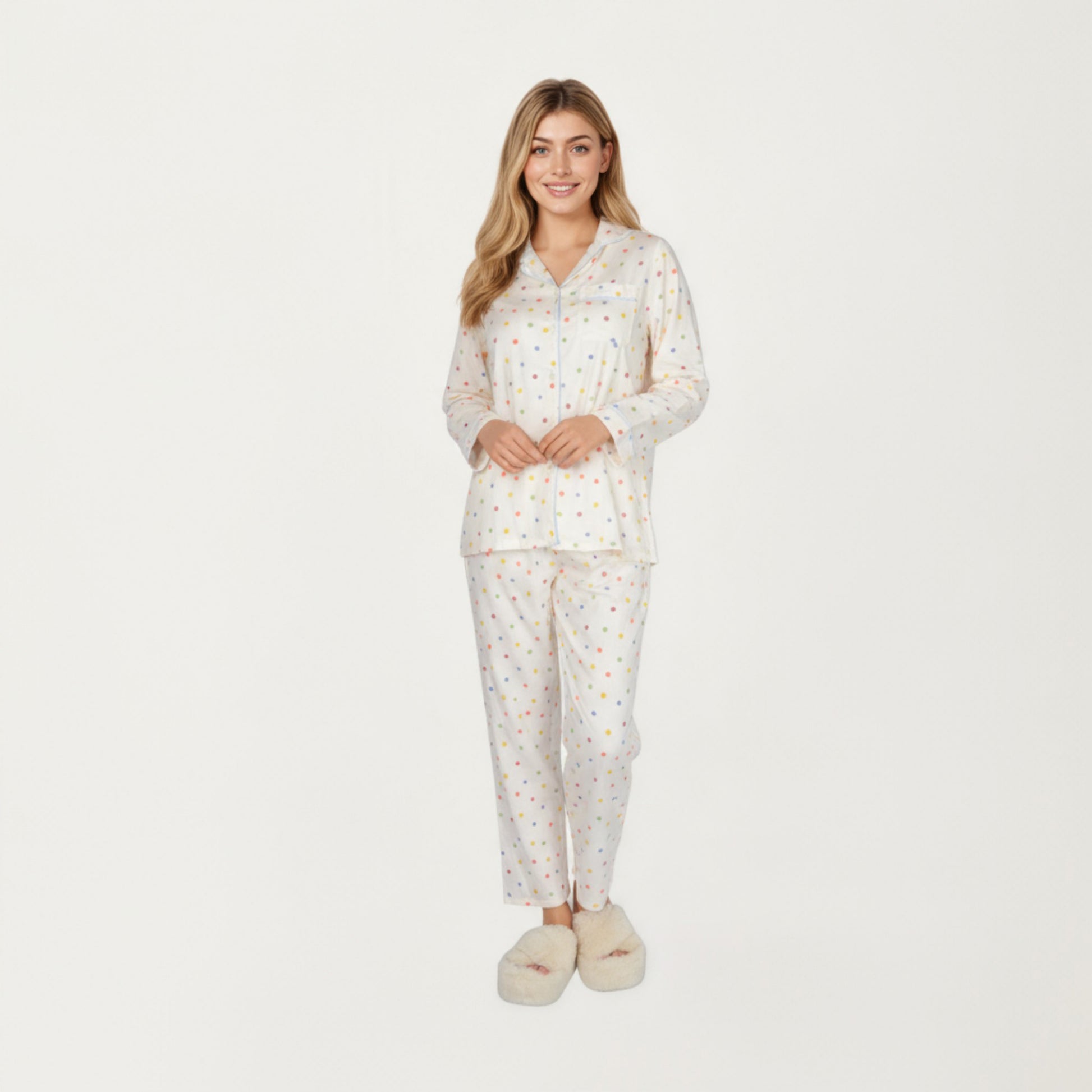 Anna-Kaci Lounge Women's 2-Piece Set Polka Dot Print Button-Up Long Sleeve Pajama Top and Matching Pants