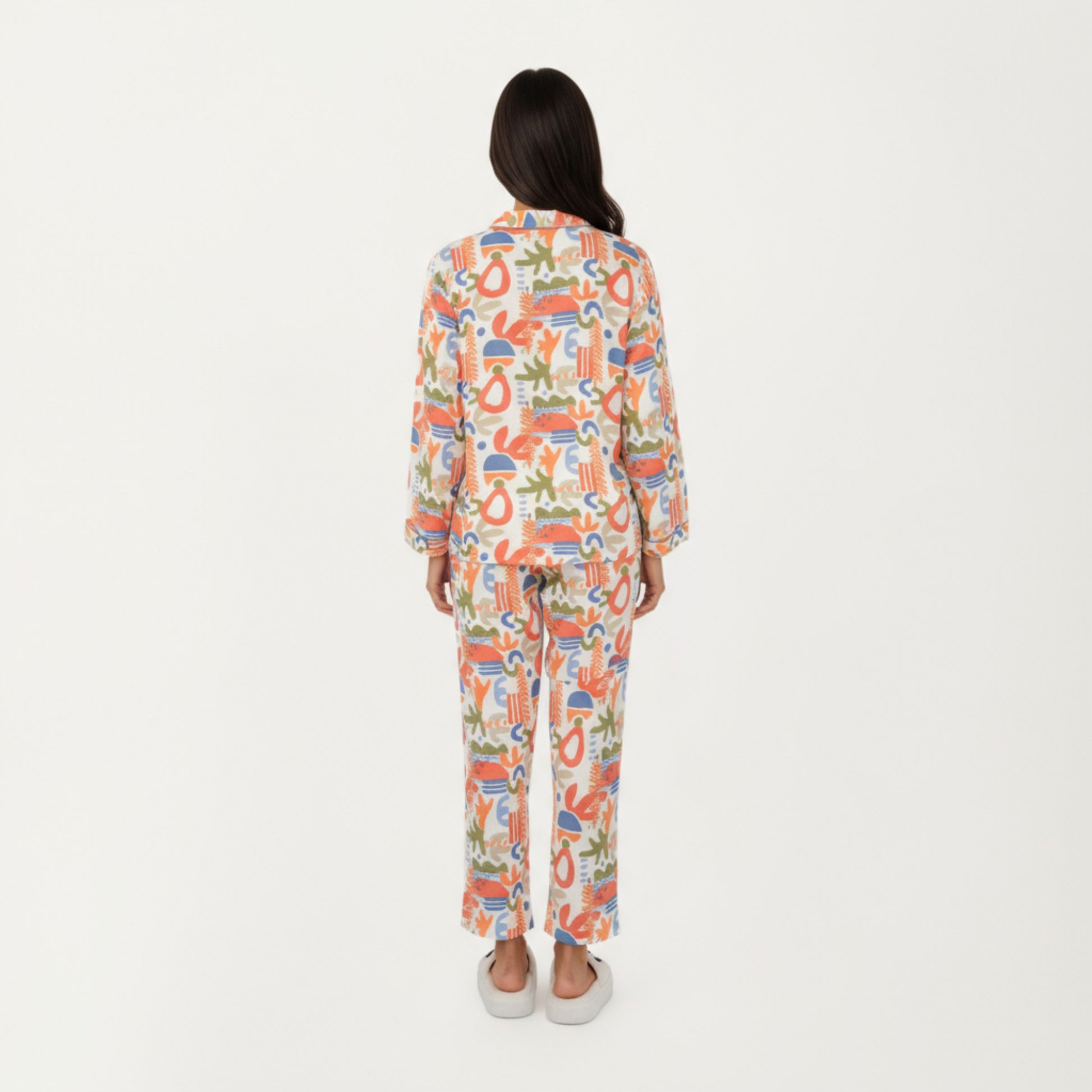 Anna-Kaci Lounge Women's 2-Piece Set Abstract Print Button-Up V-Neck Pajama Top and Matching Pants