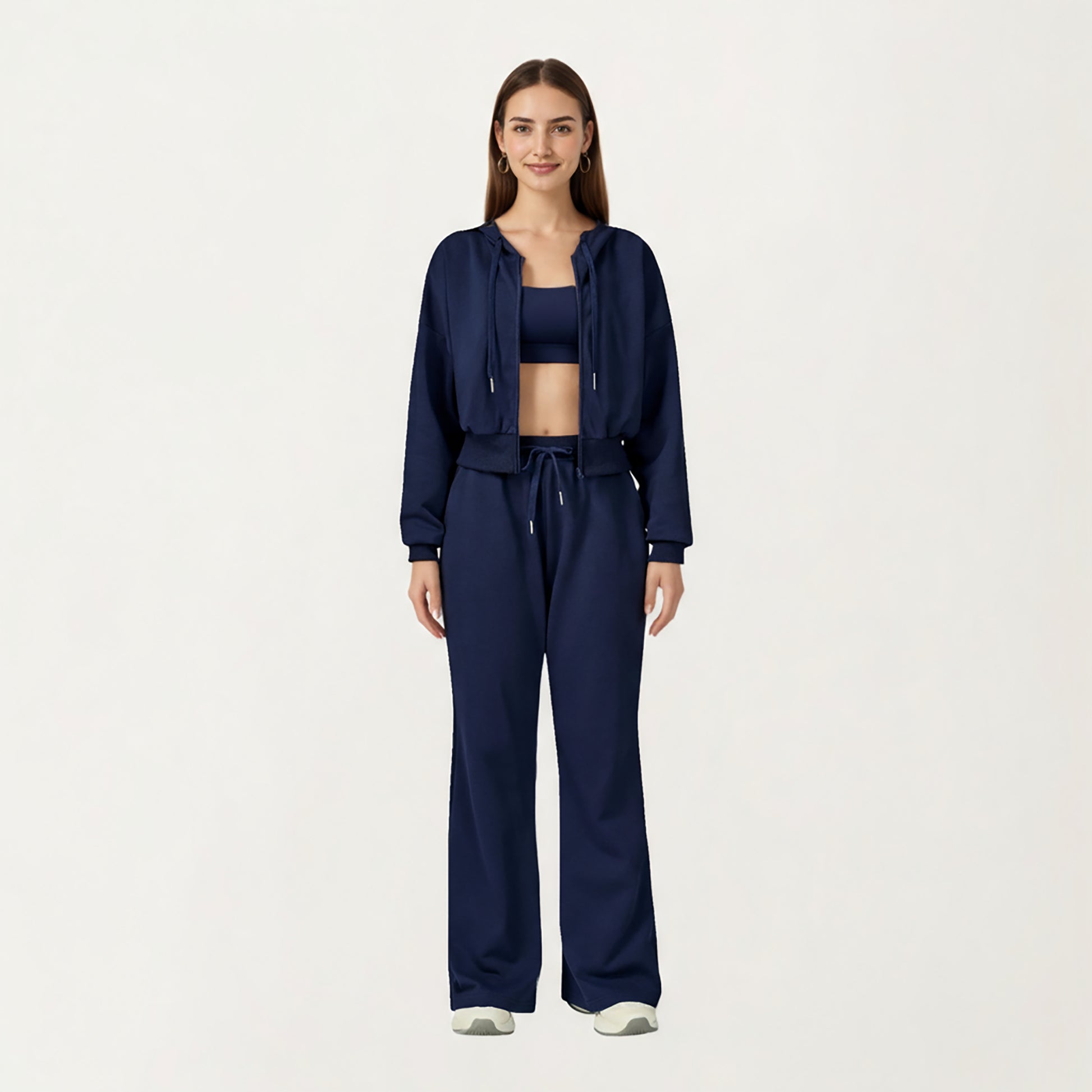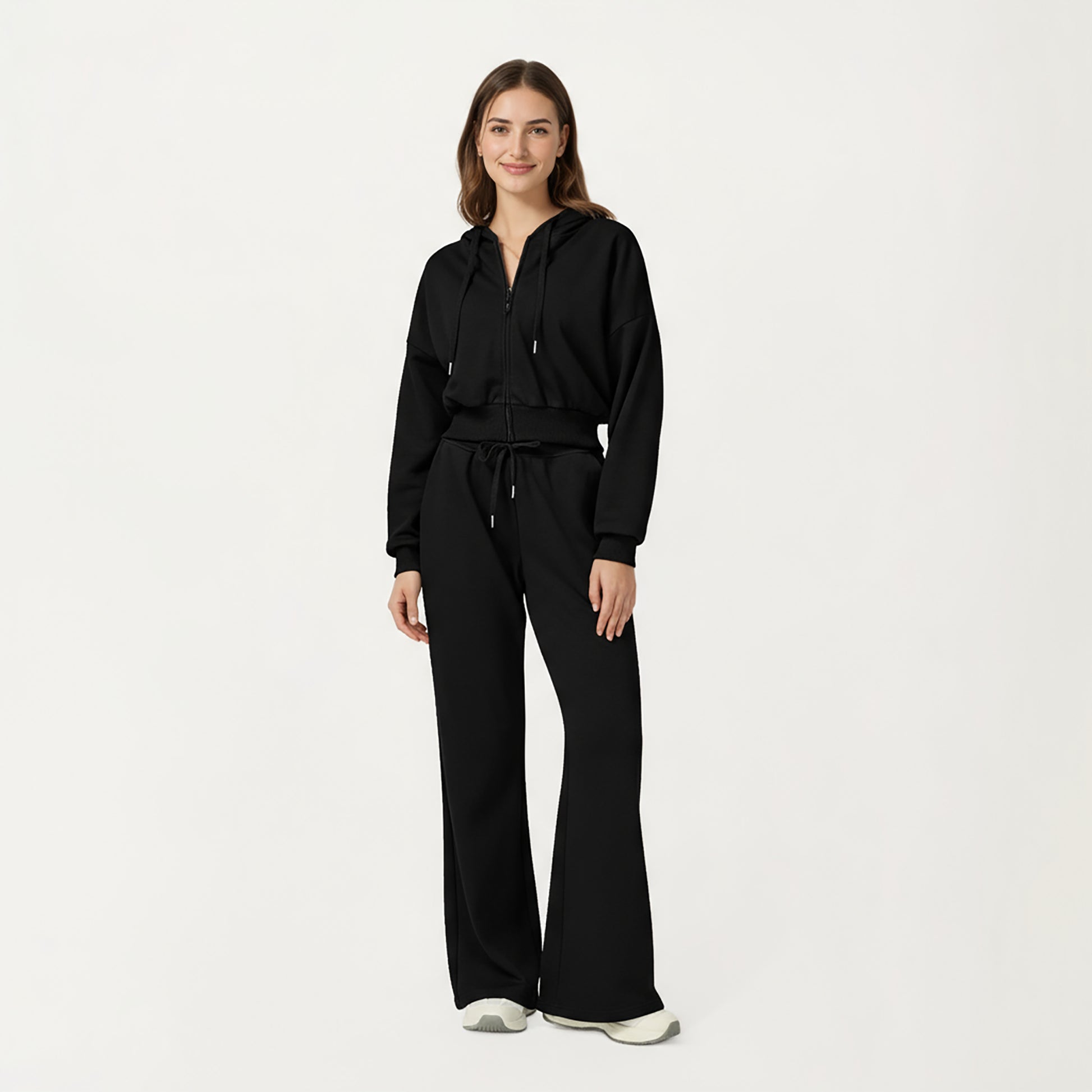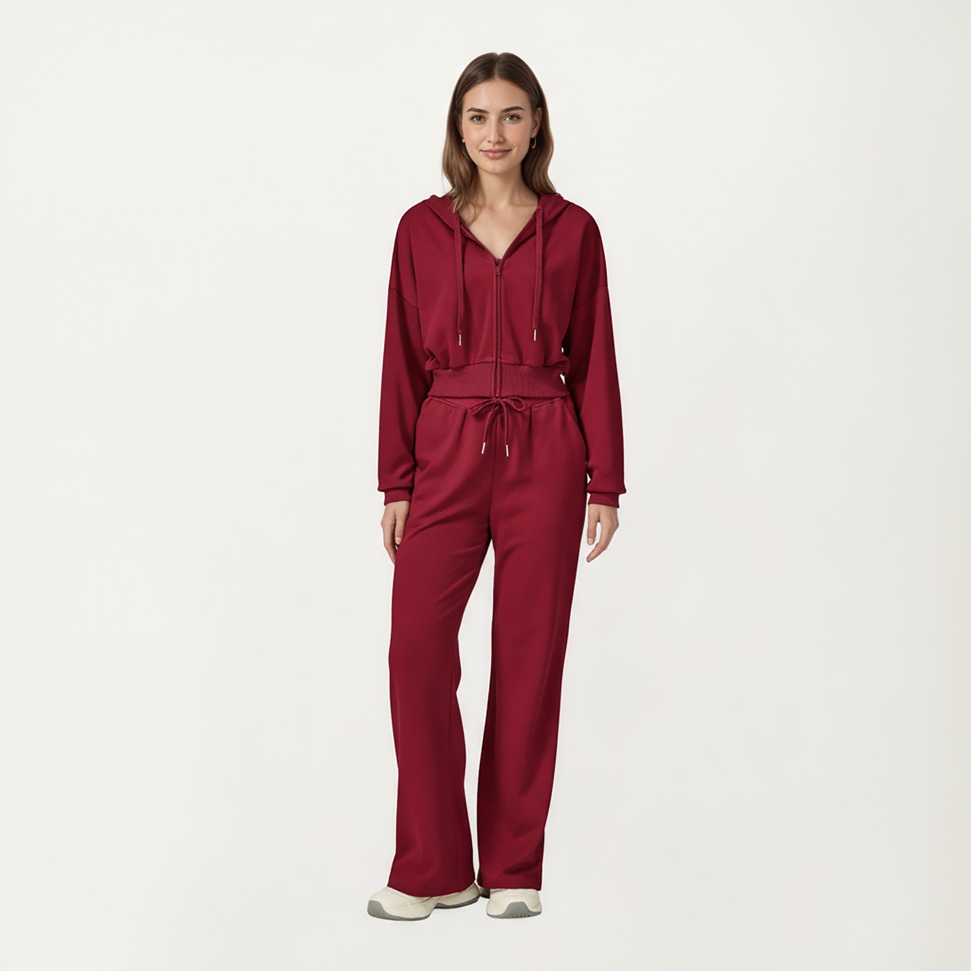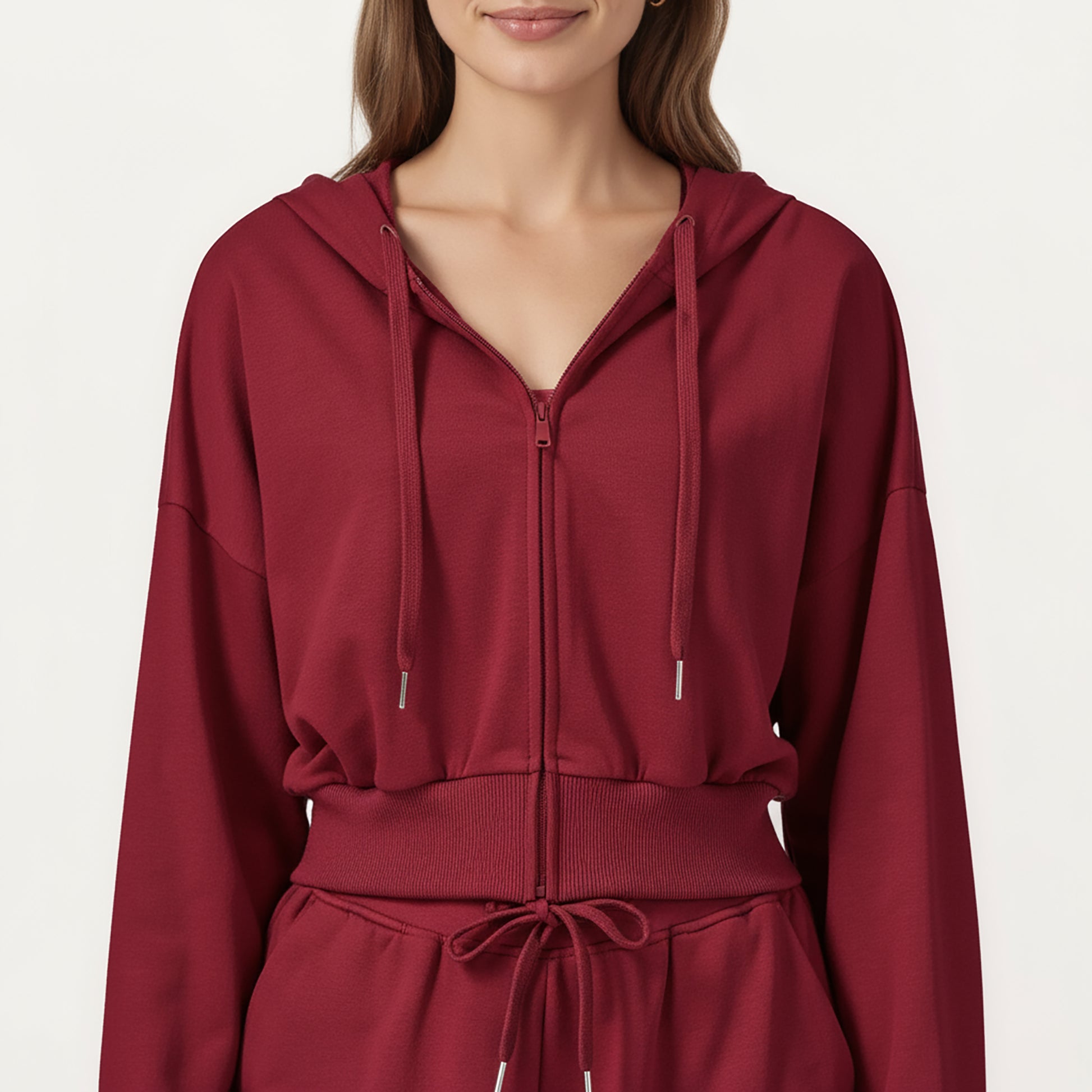 The Anna-Kaci Women's Cropped Zip-Up Hoodie combines comfort and modern style with its relaxed fit and flattering cropped length. Designed with a full front zipper and adjustable drawstring hood, this versatile piece offers a sporty yet casual look. Made from soft, breathable fabric, it delivers all-day comfort while the ribbed hem adds a touch of structure.