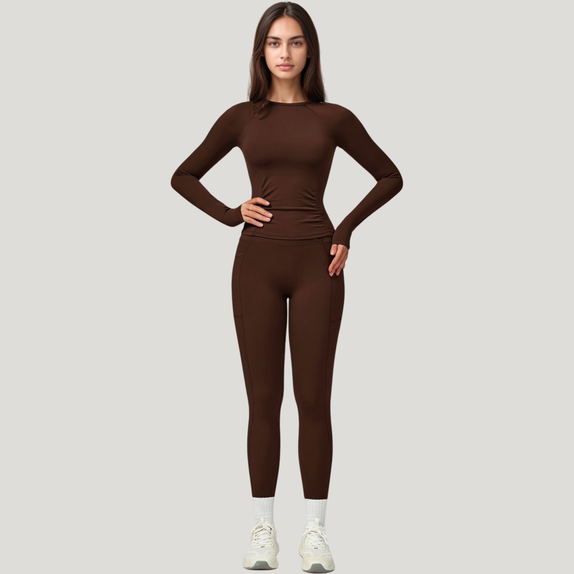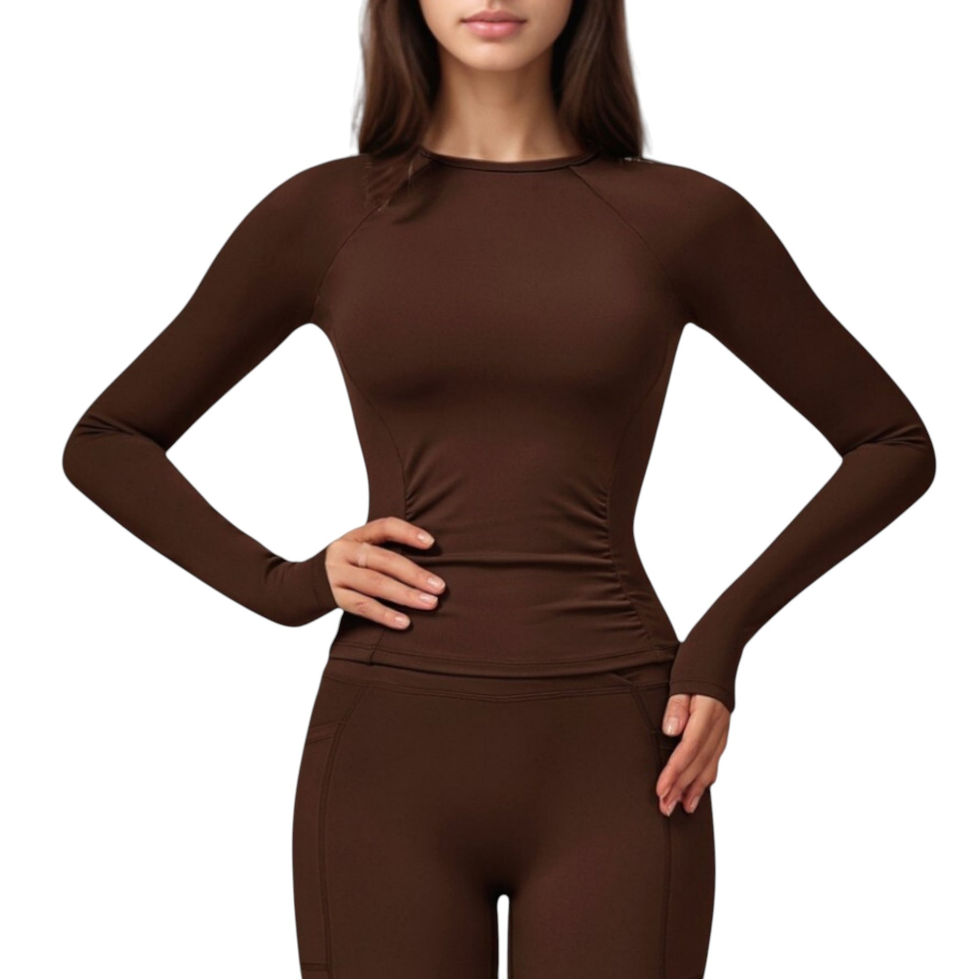 The Anna-Kaci Women's Long Sleeve Crew Neck Activewear Top blends style and function with a sleek, streamlined fit. Designed from lightweight, stretch performance fabric, it moves with you while maintaining a smooth, flattering silhouette. Subtle seam detailing adds shape and a modern touch, while the crew neck ensures a classic look. Perfect for layering or wearing alone, this versatile top transitions seamlessly from workouts to casual wear.