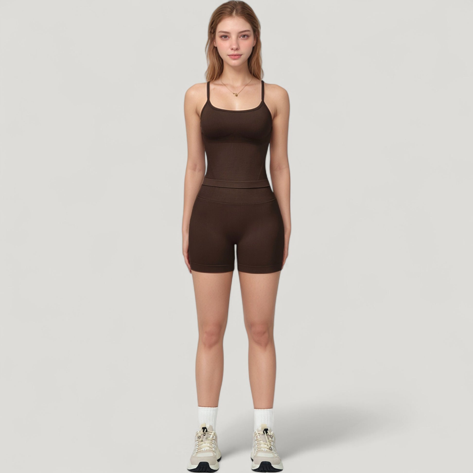 The Anna-Kaci Women's Seamless Activewear Tank Top blends comfort and performance with a sleek, fitted silhouette. Featuring adjustable spaghetti straps and a seamless construction, this top offers flexibility and a smooth feel for workouts or everyday wear. Crafted from soft, stretchy fabric, it ensures breathability and ease of movement while maintaining a flattering contour fit.