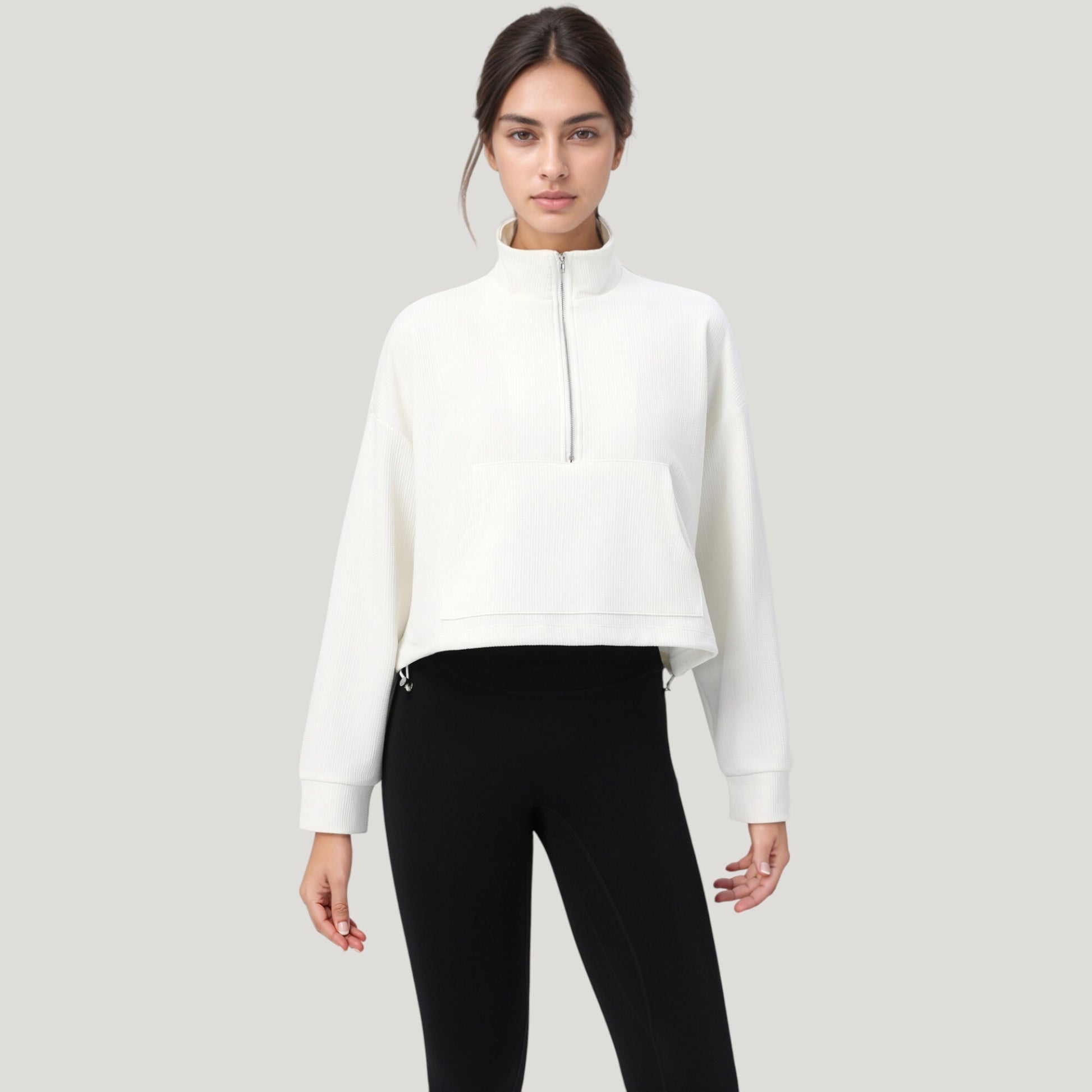The Anna-Kaci Women's Long Sleeve Half Zip Pullover Top with Mock Neck and Kangaroo Pocket combines casual comfort with a modern silhouette. Featuring a sleek half zip neckline, roomy kangaroo pocket, and relaxed fit, this top is perfect for layering or wearing solo. Crafted from soft, breathable fabric, it provides a cozy feel while keeping your style on point.