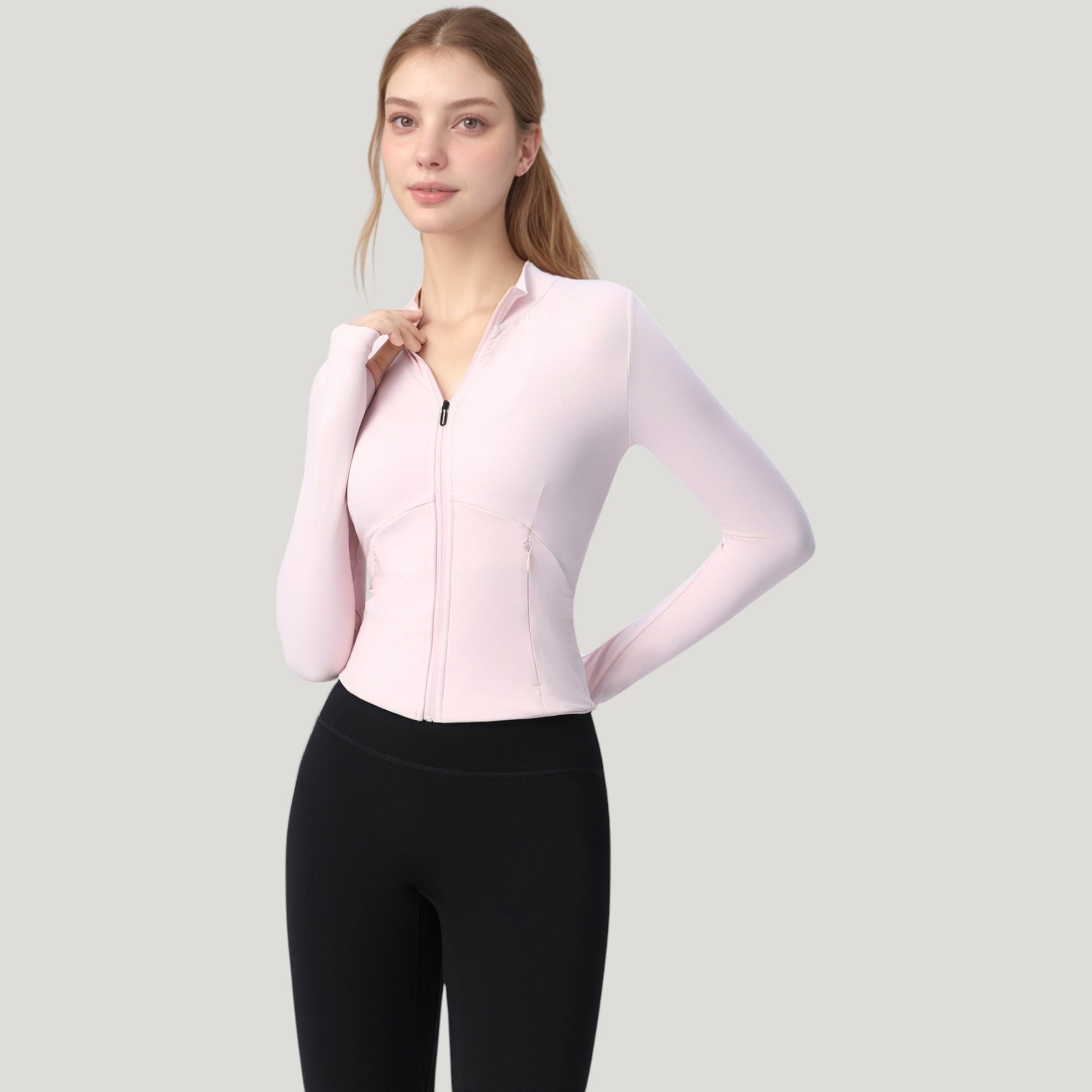 The Anna-Kaci Women's Long Sleeve Full Zip Athletic Jacket with Thumbholes and Fitted Silhouette delivers sleek style with functional performance. Featuring a full-length zipper, contouring seams, and a slim fit, this jacket offers a flattering shape while providing maximum flexibility. Made with smooth, stretchy fabric, it ensures all-day comfort whether you¡¯re working out or layering casually.