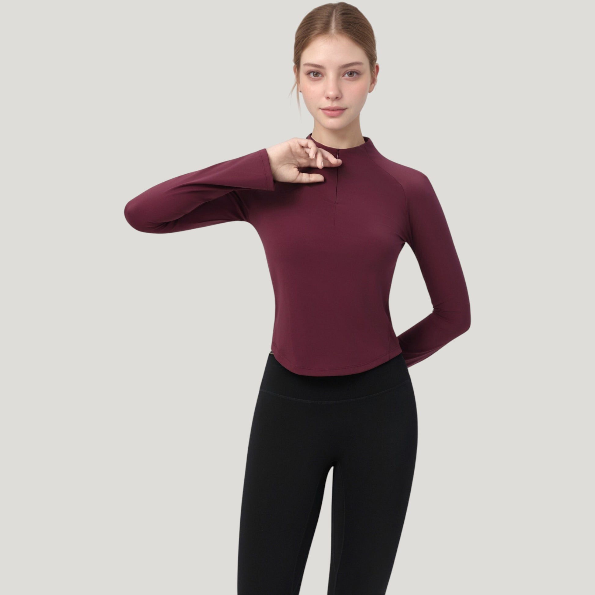 Anna-Kaci Active Women's Long Sleeve Active Top with Half Zip Front and Slim Fit Design