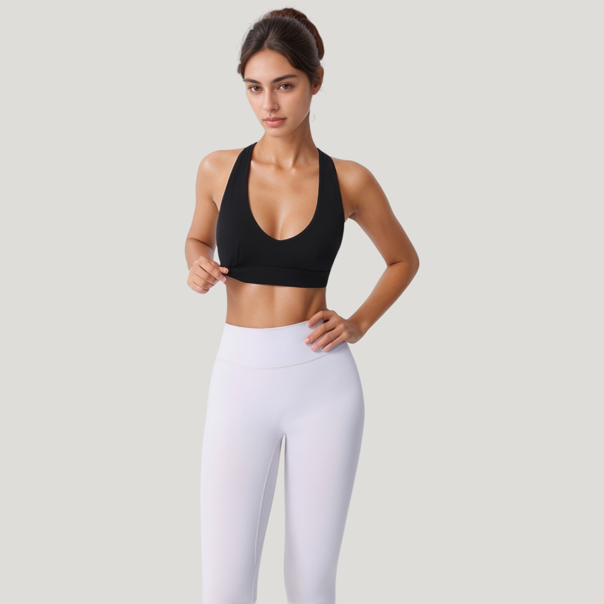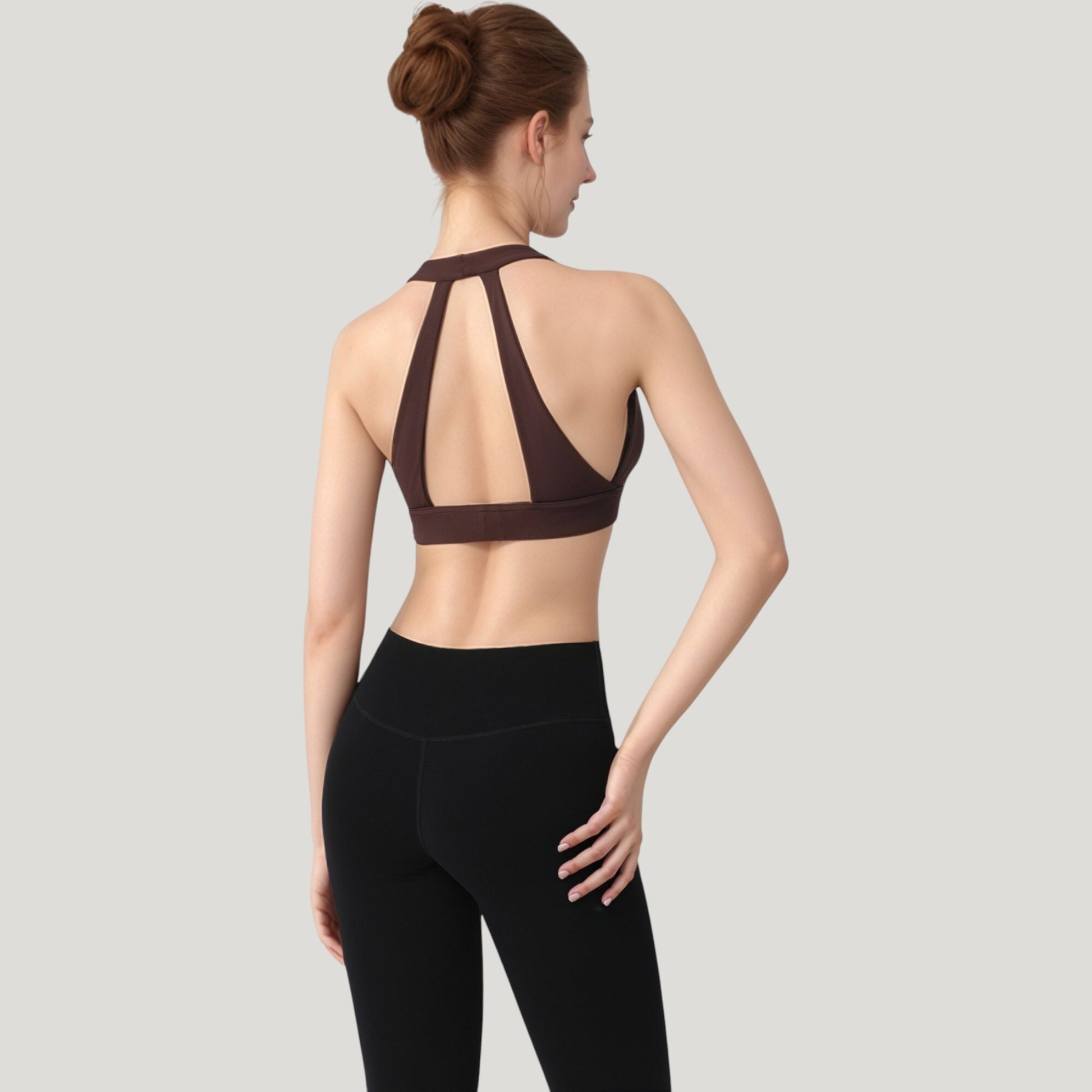 Anna-Kaci Active Women's Low Scoop Neck Sports Bra with Open Back Strap Design and Supportive Elastic Band