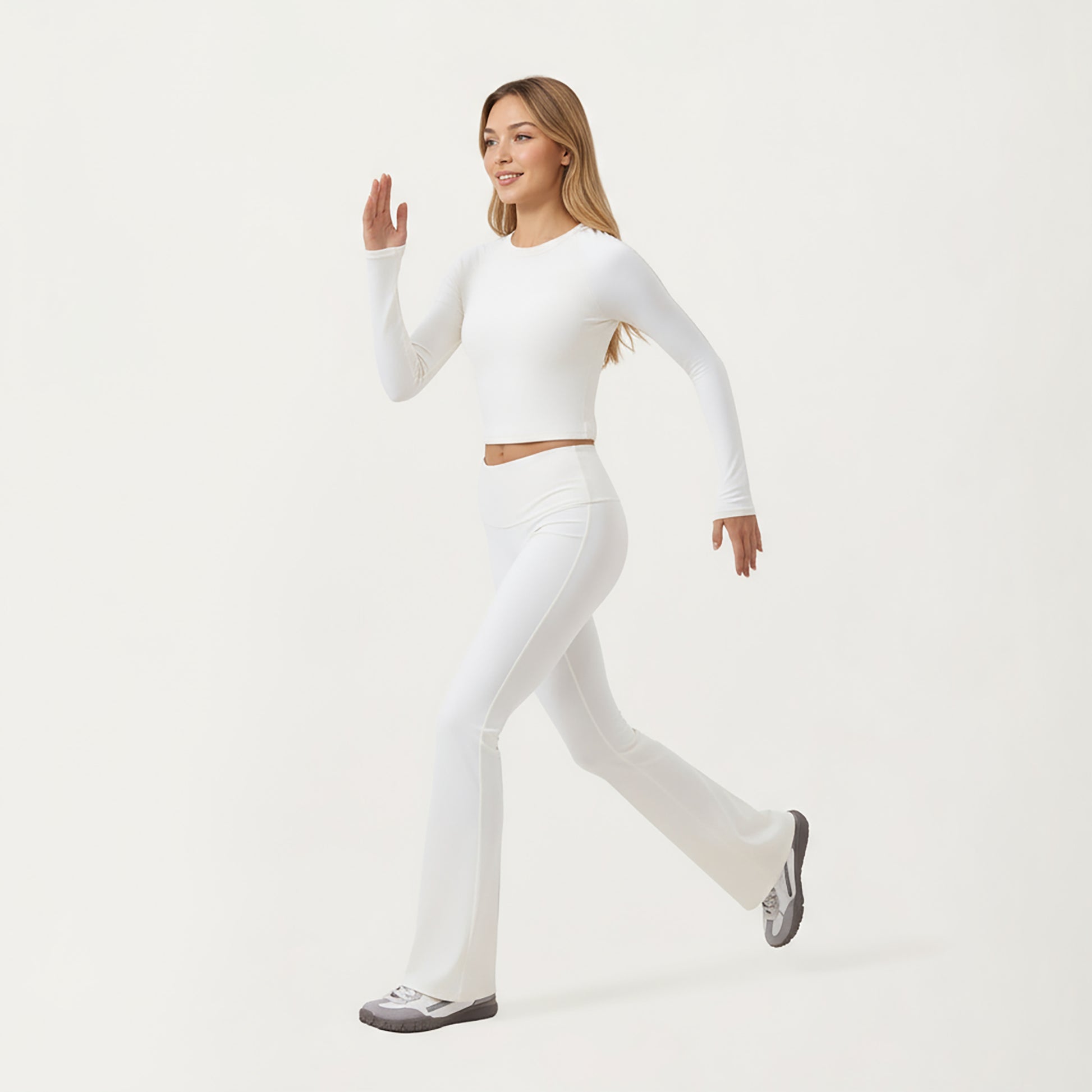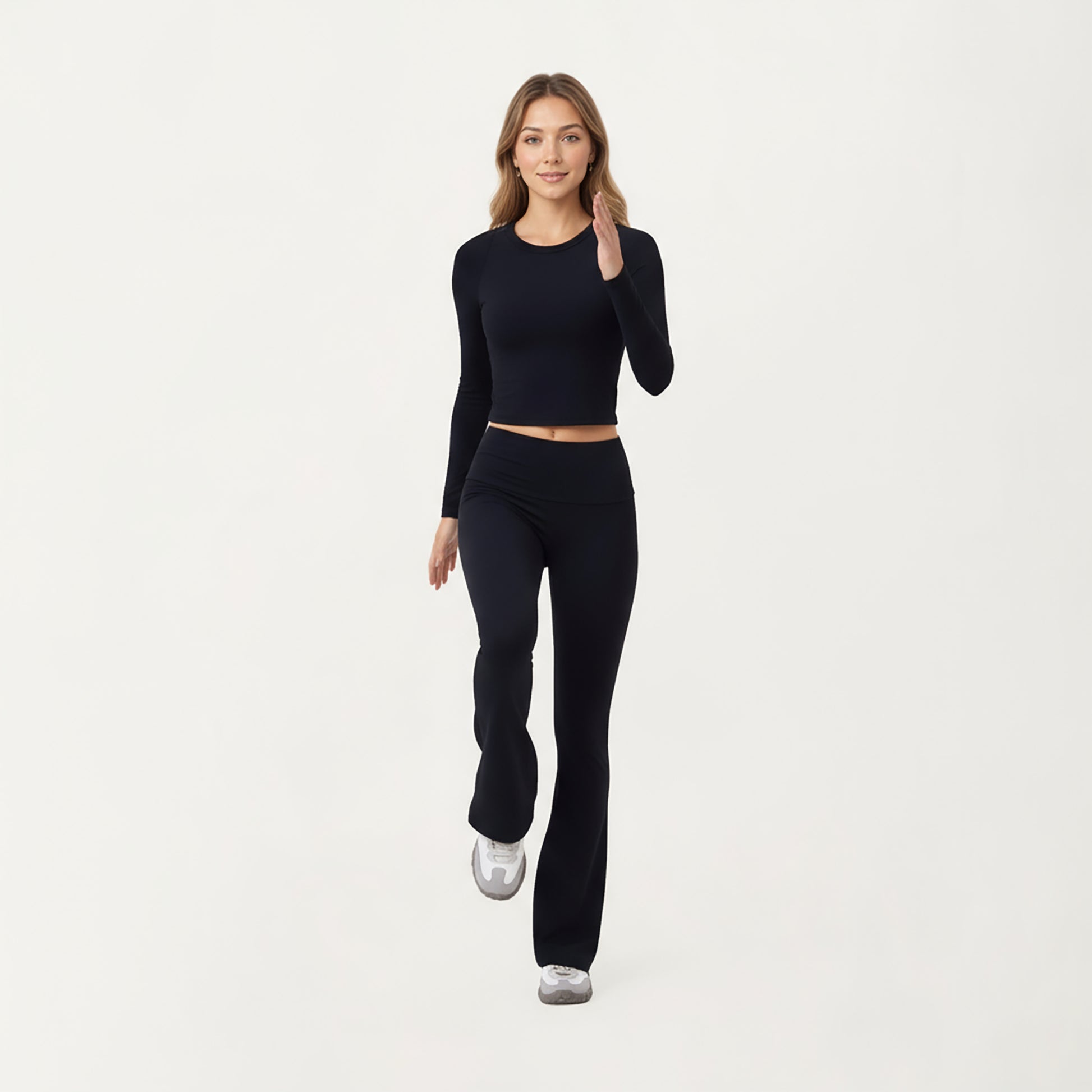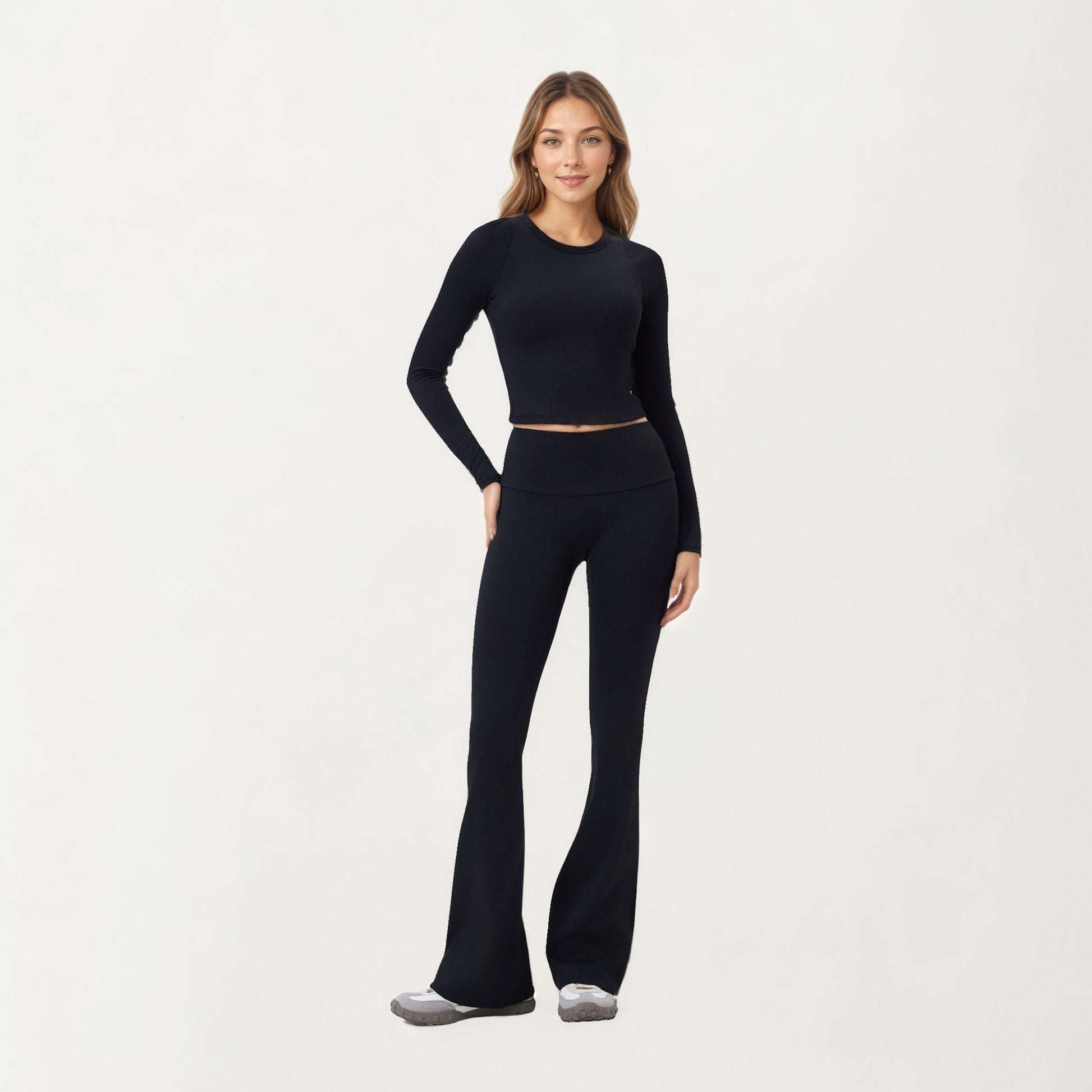 Anna-Kaci Active Women's High Waist Flare Leg Pants with Foldover Waistband and Stretch Performance Fabric