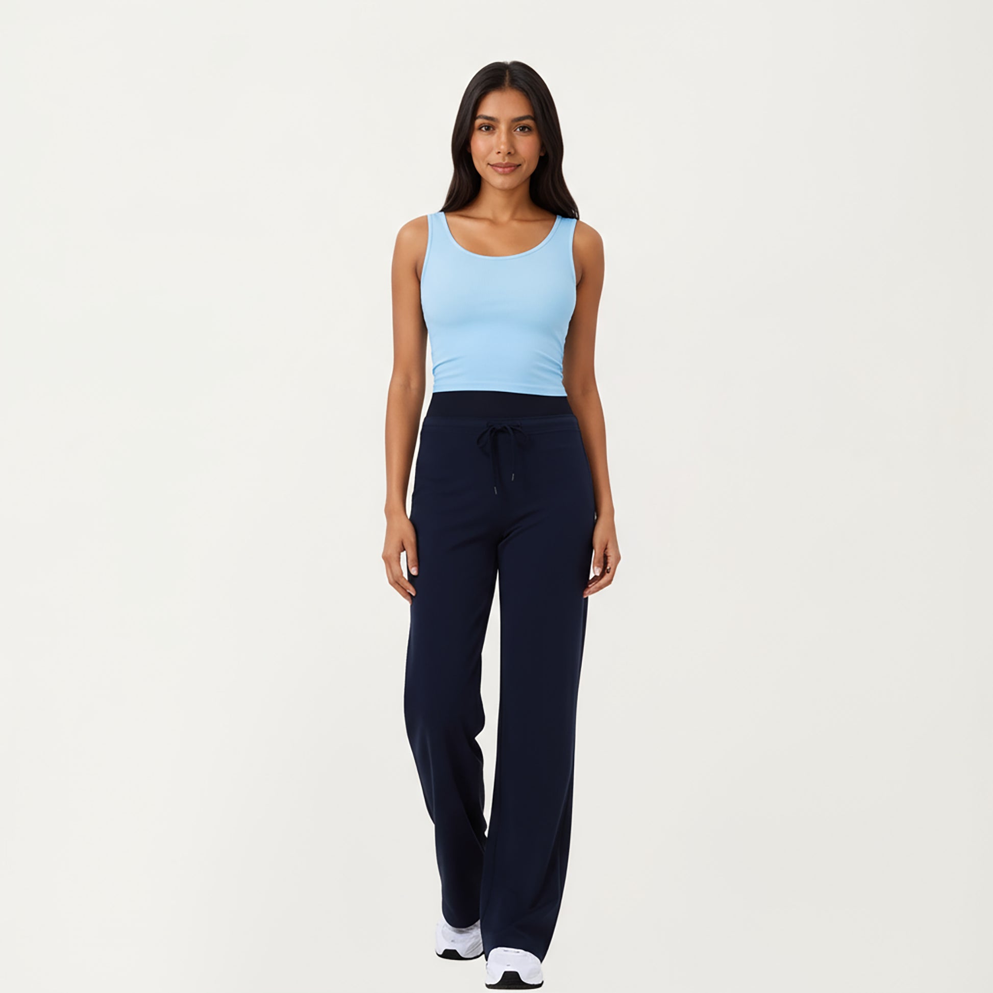 The Anna-Kaci Women's High Waist Wide Leg Pants offer effortless comfort and sleek style. Designed with a flattering high-rise waistband and an adjustable drawstring tie, these pants ensure a customized fit for all-day wear. The wide-leg silhouette drapes beautifully for a relaxed yet refined look, while the soft stretch fabric provides freedom of movement and a smooth feel. Perfect for pairing with fitted tops or crop tanks, these pants are a versatile essential for both casual and active days.