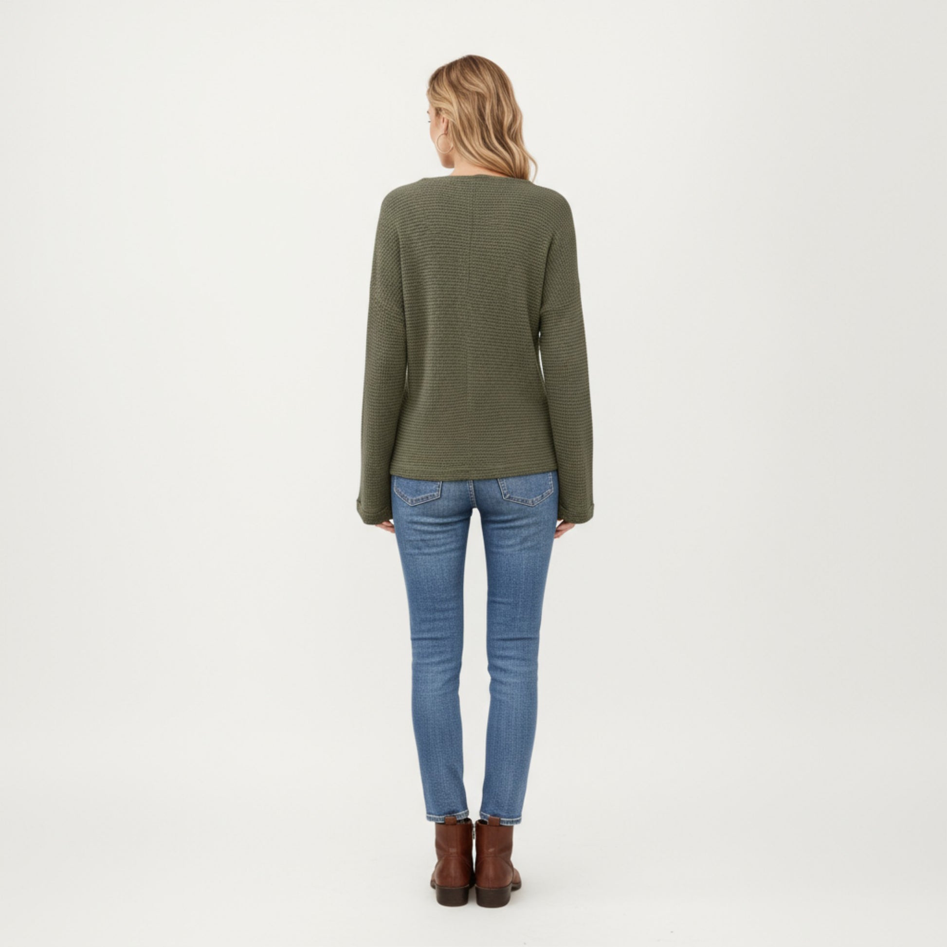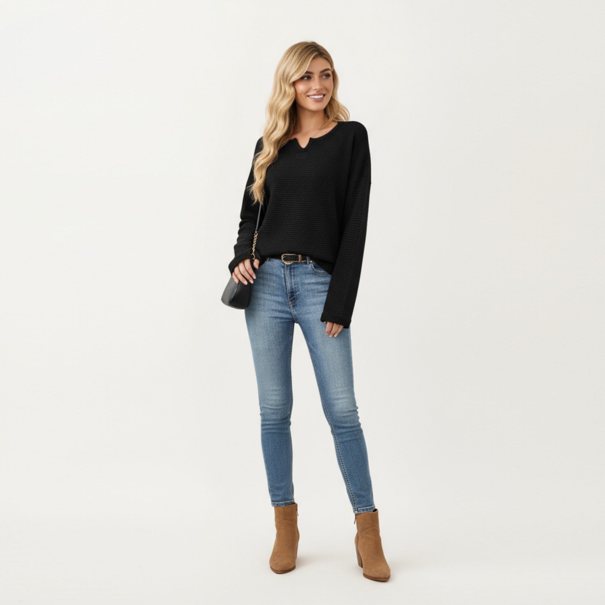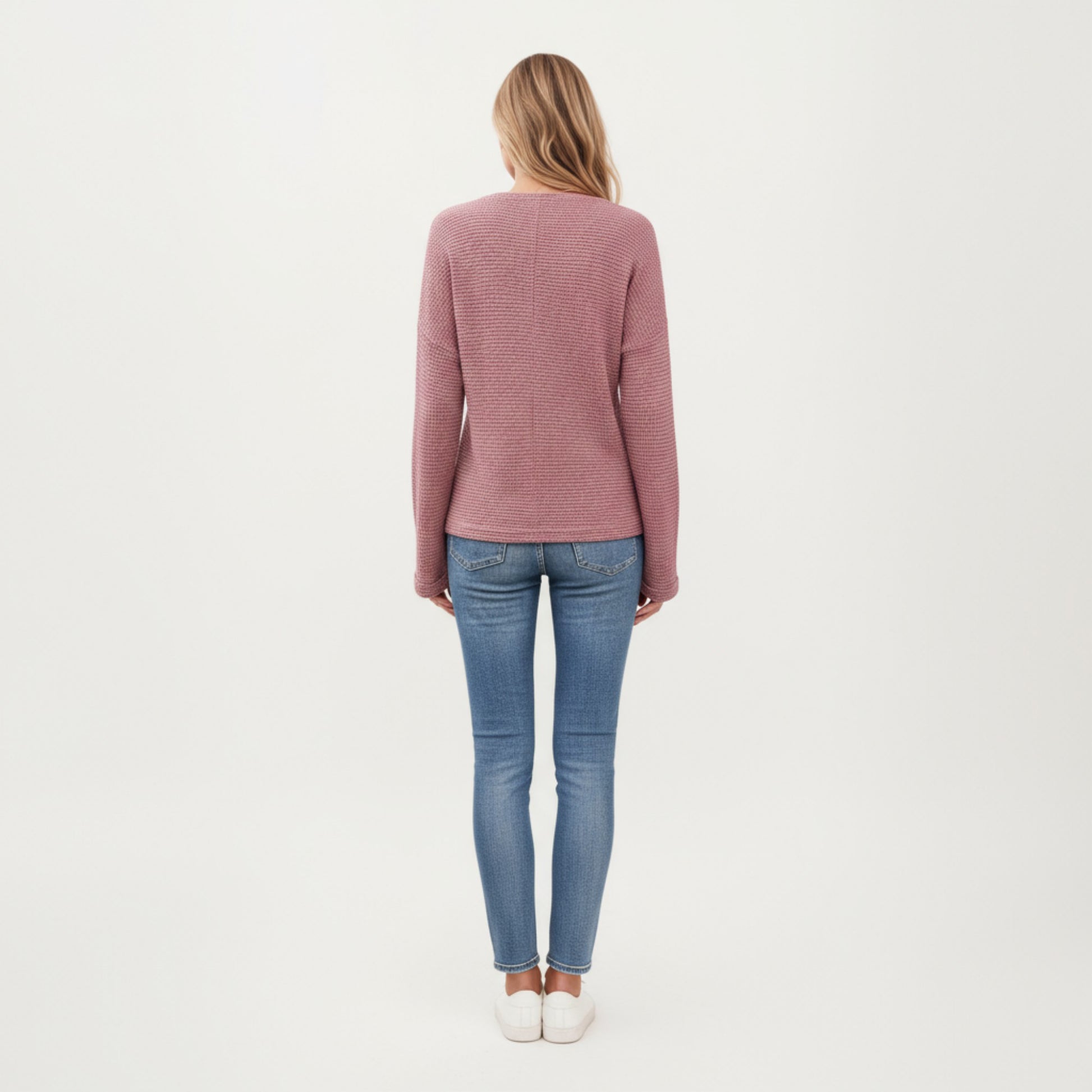 The Anna-Kaci Women's Long Sleeve Textured Knit Pullover Top combines casual comfort with modern style. Designed with a split neckline and a lightly textured knit fabric, this top offers a soft, relaxed fit perfect for everyday wear. Its versatile design makes it easy to pair with jeans or leggings for an effortlessly chic look.