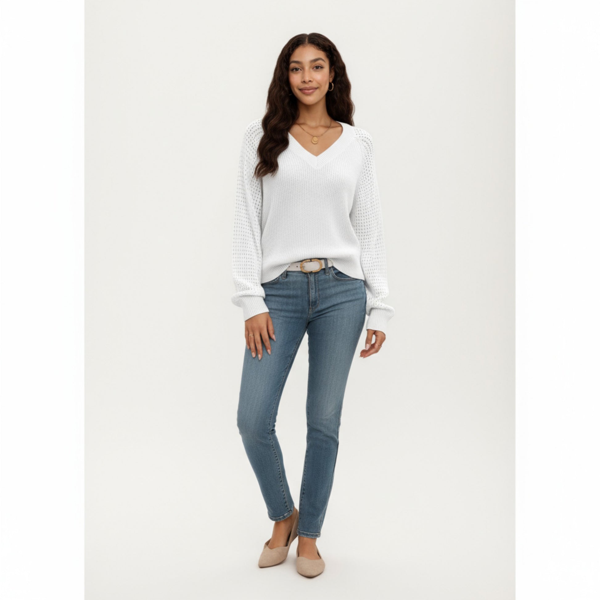 Anna-Kaci Women's Off-Shoulder Knit Sweater with Pointelle Sleeves and Relaxed Fit