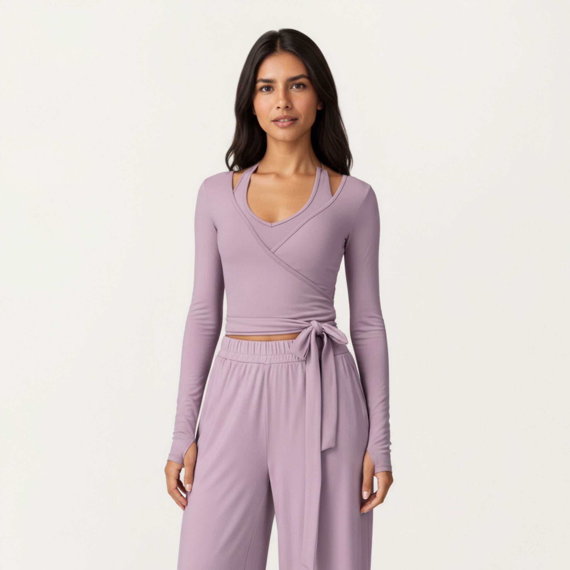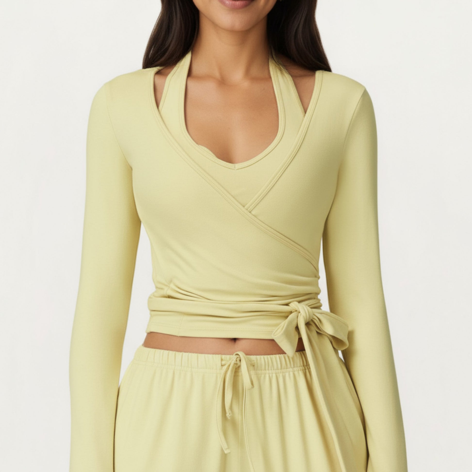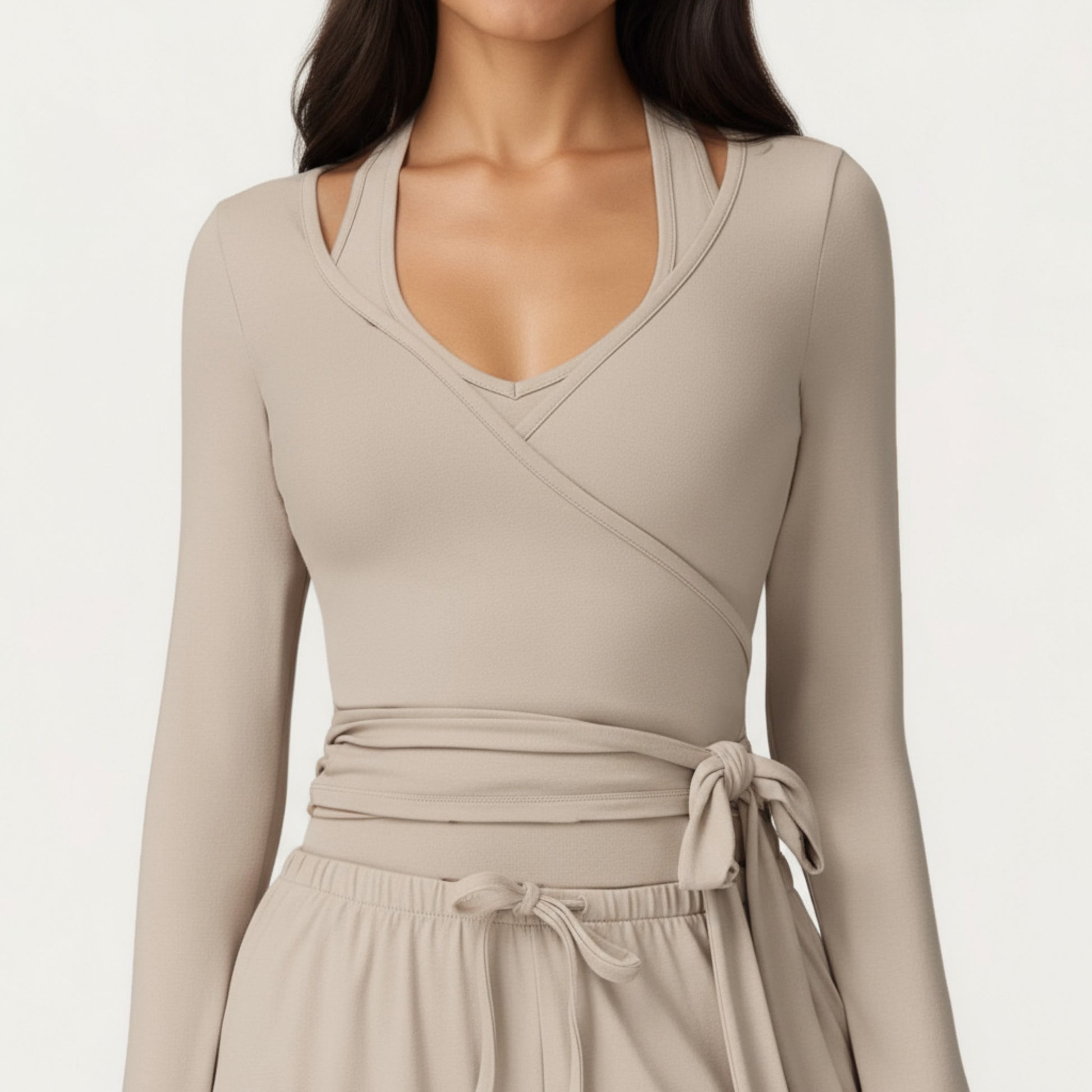 Anna-Kaci Active Women's V-Neck Belted Waist Layering Piece Outwear with Front Tie Detail
