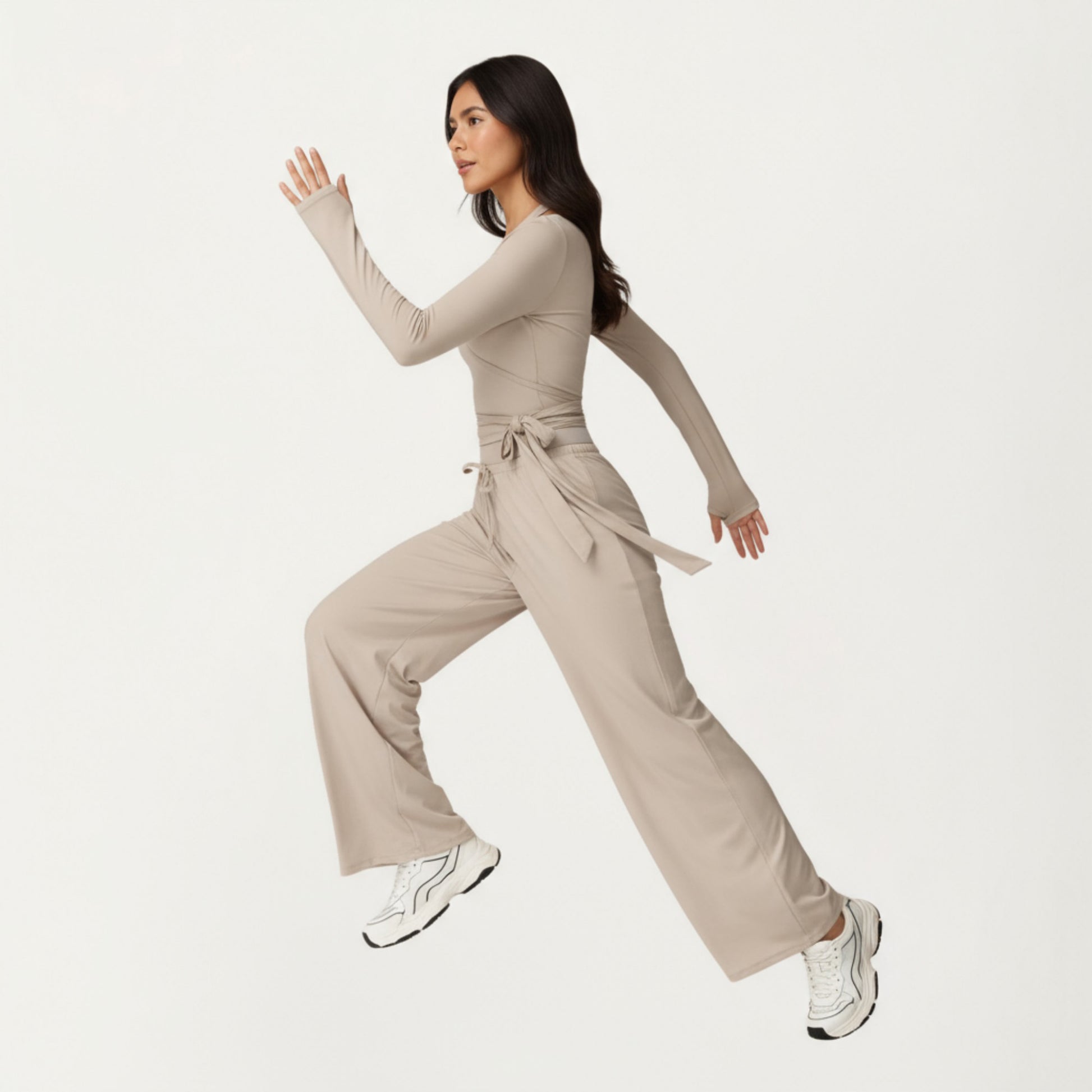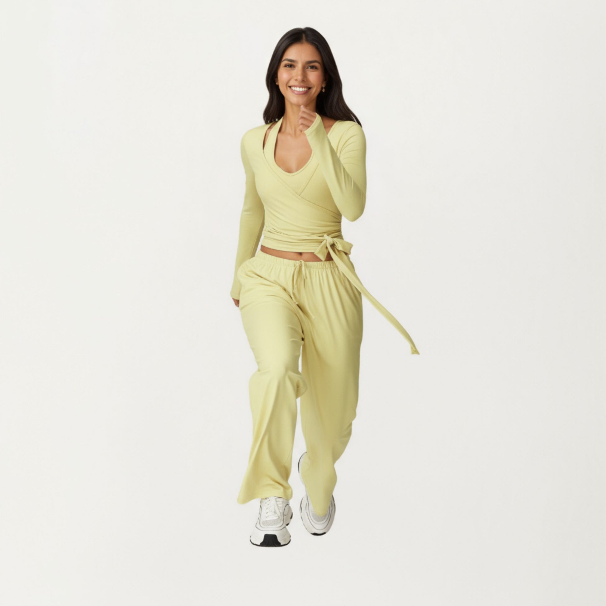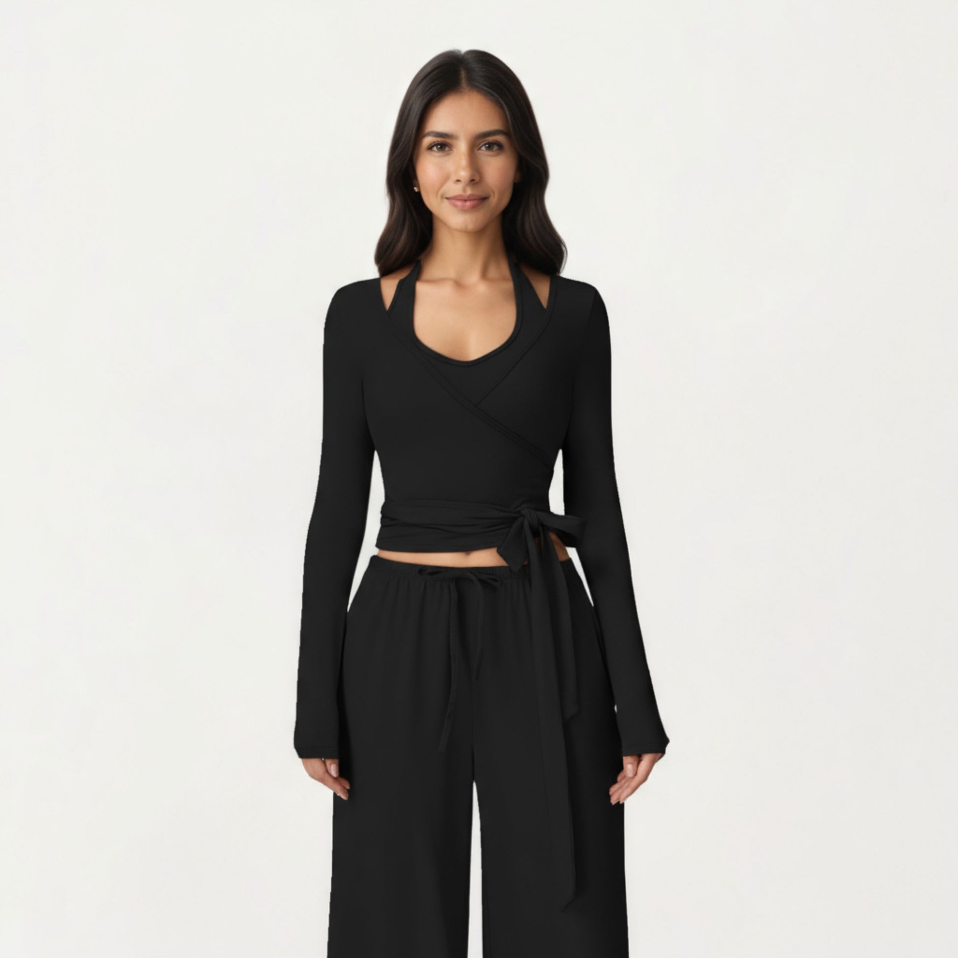Anna-Kaci Active Women's V-Neck Belted Waist Layering Piece Outwear with Front Tie Detail