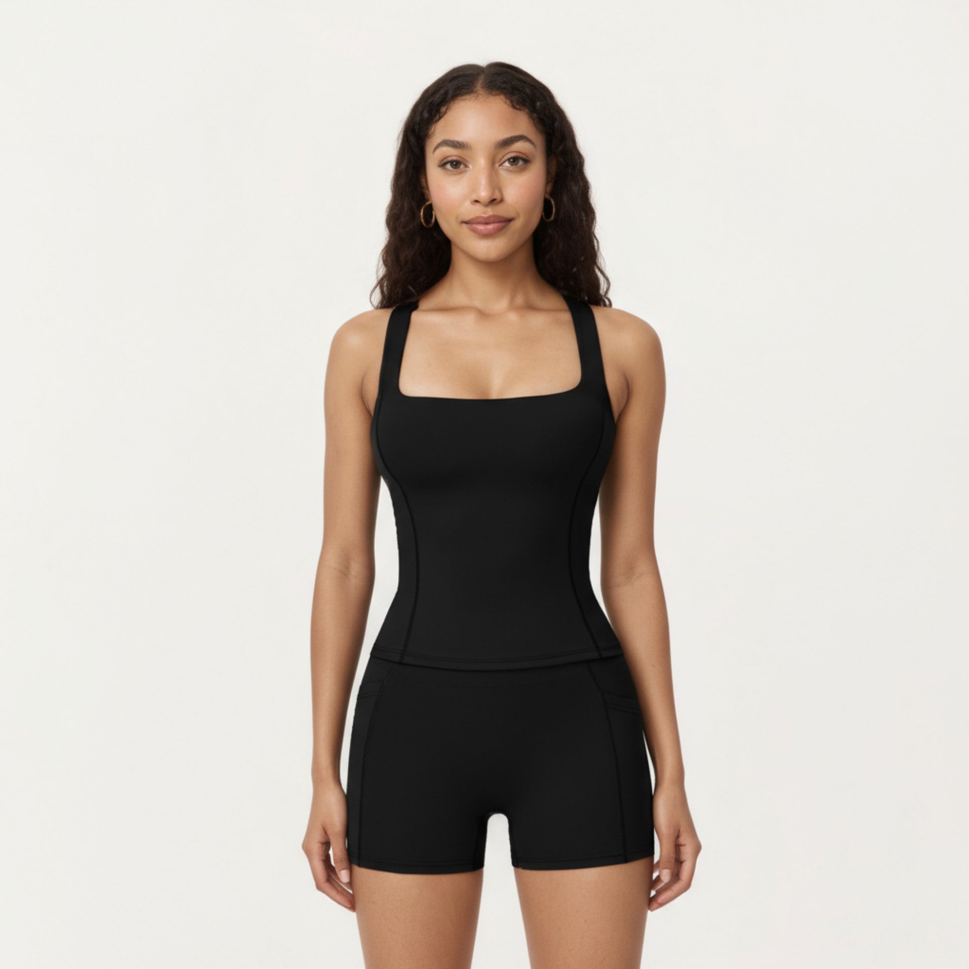 Anna-Kaci Active Women's Square Neck Sleeveless Fitted Active Tank Top with Seam Detailing