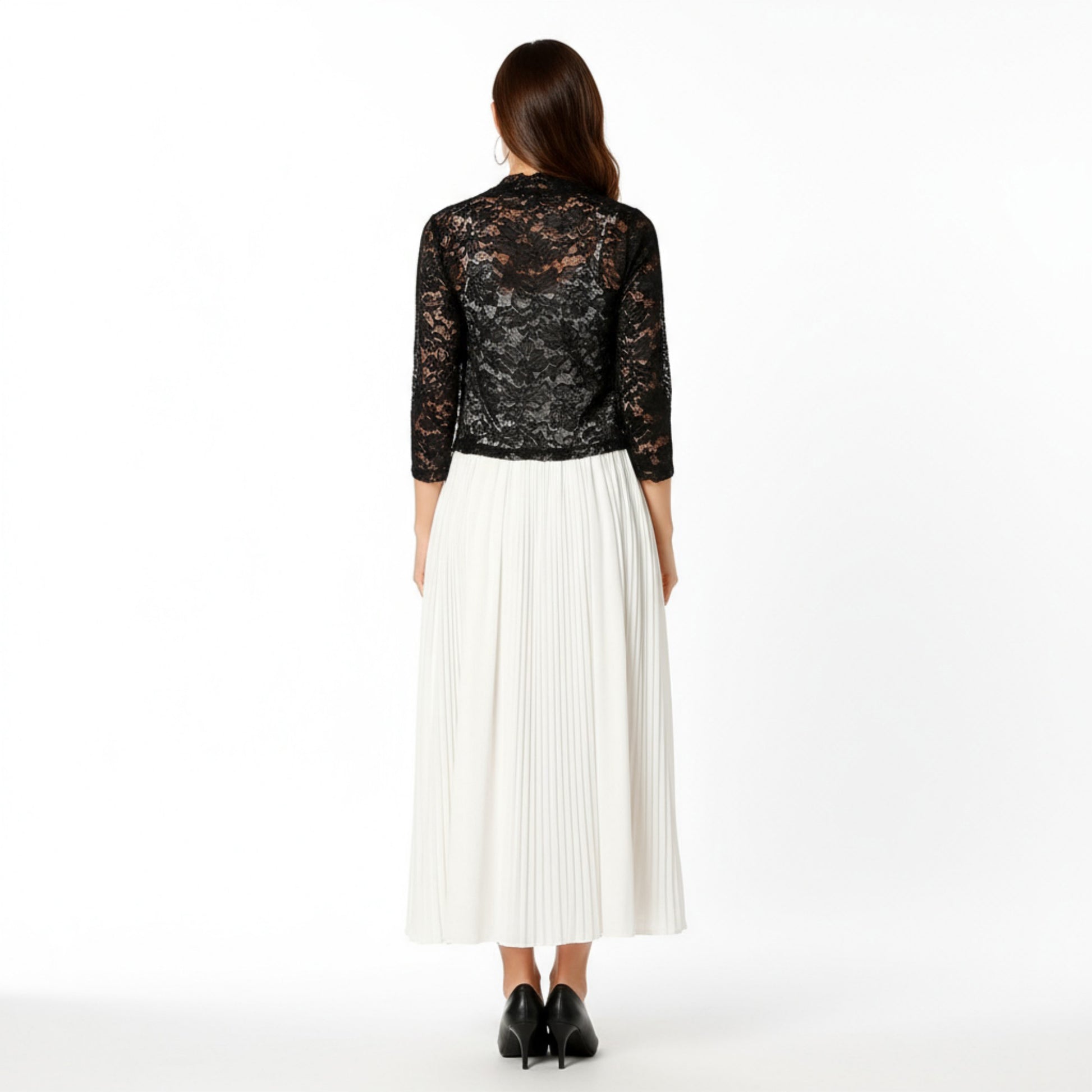 Anna-Kaci Women's Floral Lace Cropped Cardigan with 3/4 Sleeves and Scalloped Trim