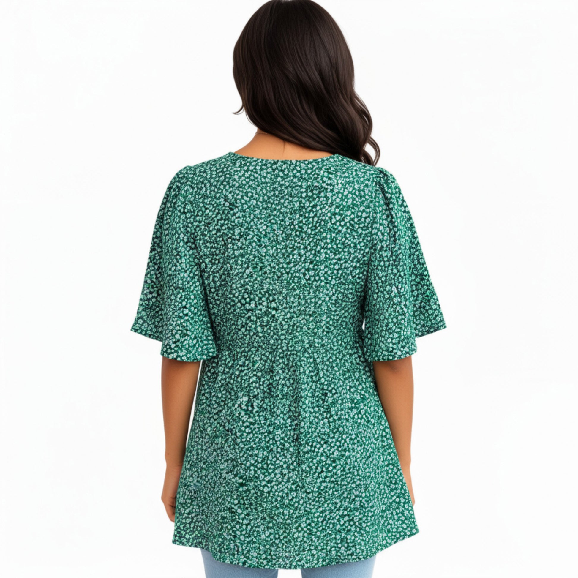 The Anna-Kaci Women's Short Sleeve Floral Print Maternity Top with Button Front and Flowy Hem brings effortless charm and comfort to your pregnancy wardrobe. Designed with a flattering V-neckline and wooden-style buttons, this lightweight top drapes beautifully over your growing bump. The empire waistline and ruffled high-low hem create a feminine silhouette, while the airy fabric ensures breathability and ease of movement. Perfect for pairing with jeans or leggings for a polished yet relaxed look.