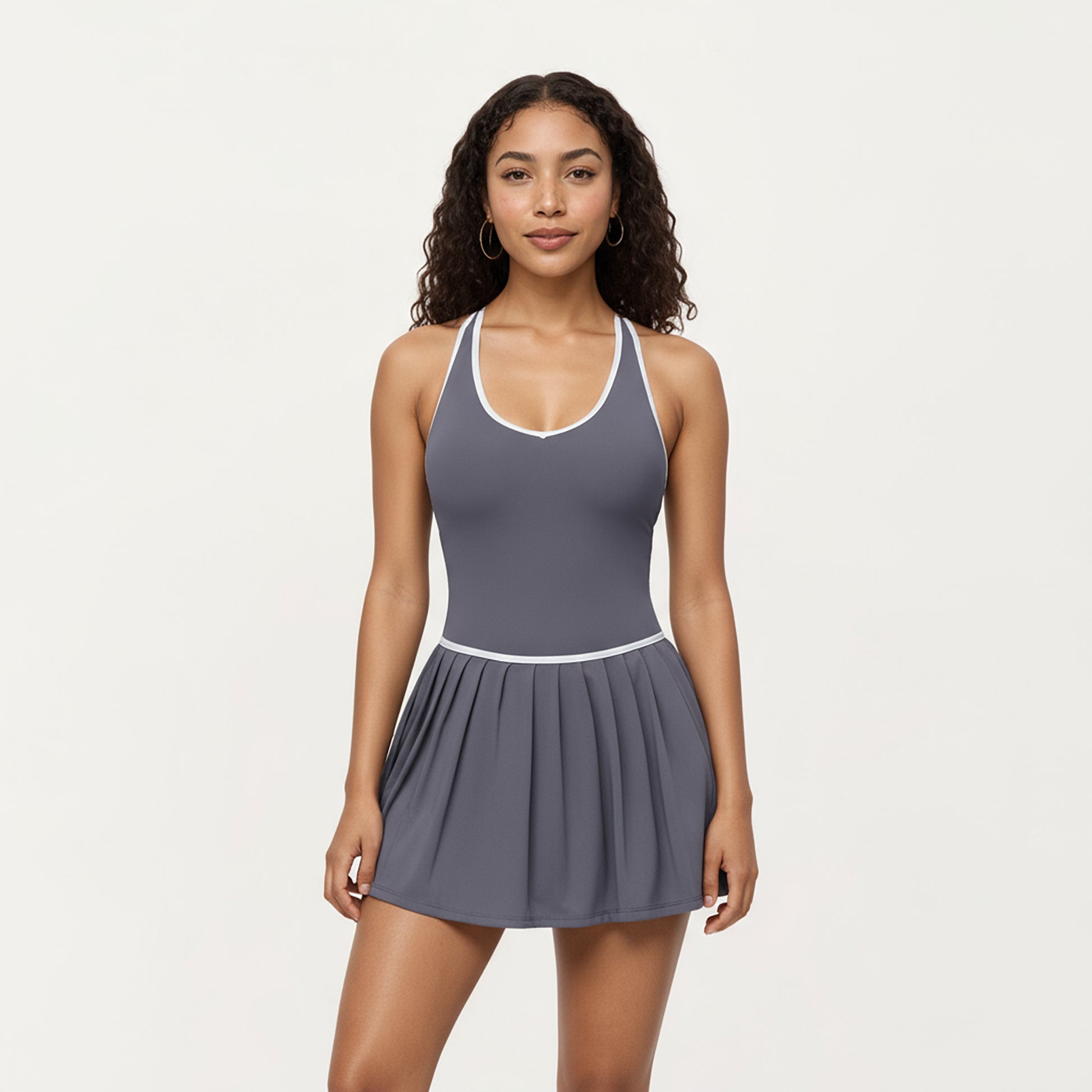 Anna-Kaci Active Women's Active Pleated Tennis Dress with Contrast Trim and Built-In Shorts