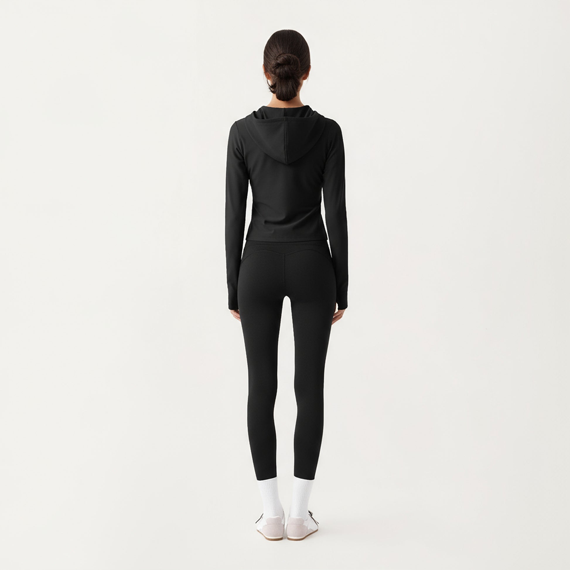 The Anna-Kaci Women's Long Sleeve Zip Up Hoodie Jacket with Contoured Fit and Thumbhole Cuffs is the perfect blend of functionality and modern style. Crafted from smooth, stretchy fabric, it provides a flattering silhouette that moves with you. The zip-up front offers adjustable coverage, while the contoured seams enhance your natural shape. Featuring a sleek hood and thumbhole cuffs for added comfort, this versatile jacket is ideal for layering over workout tops or casual outfits.