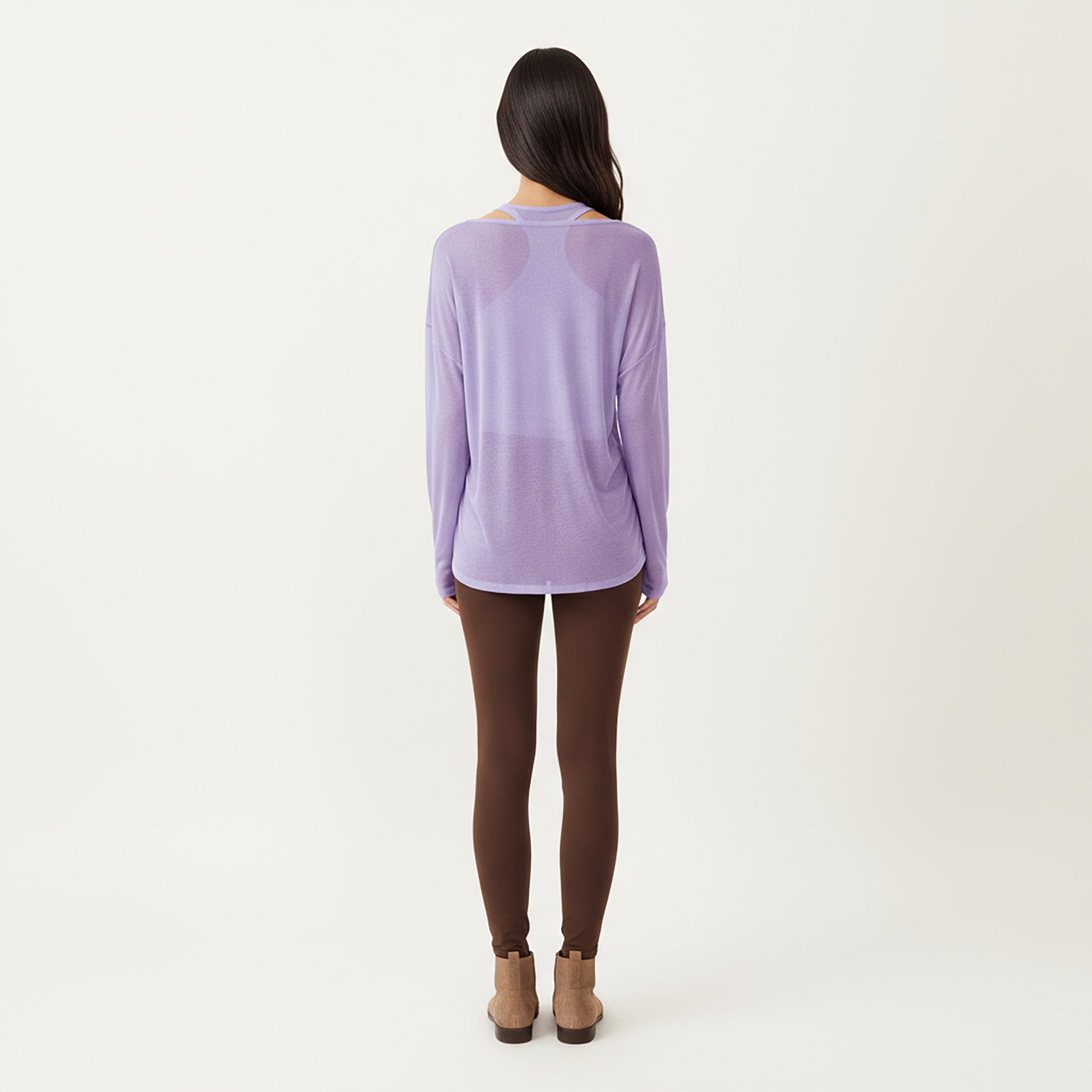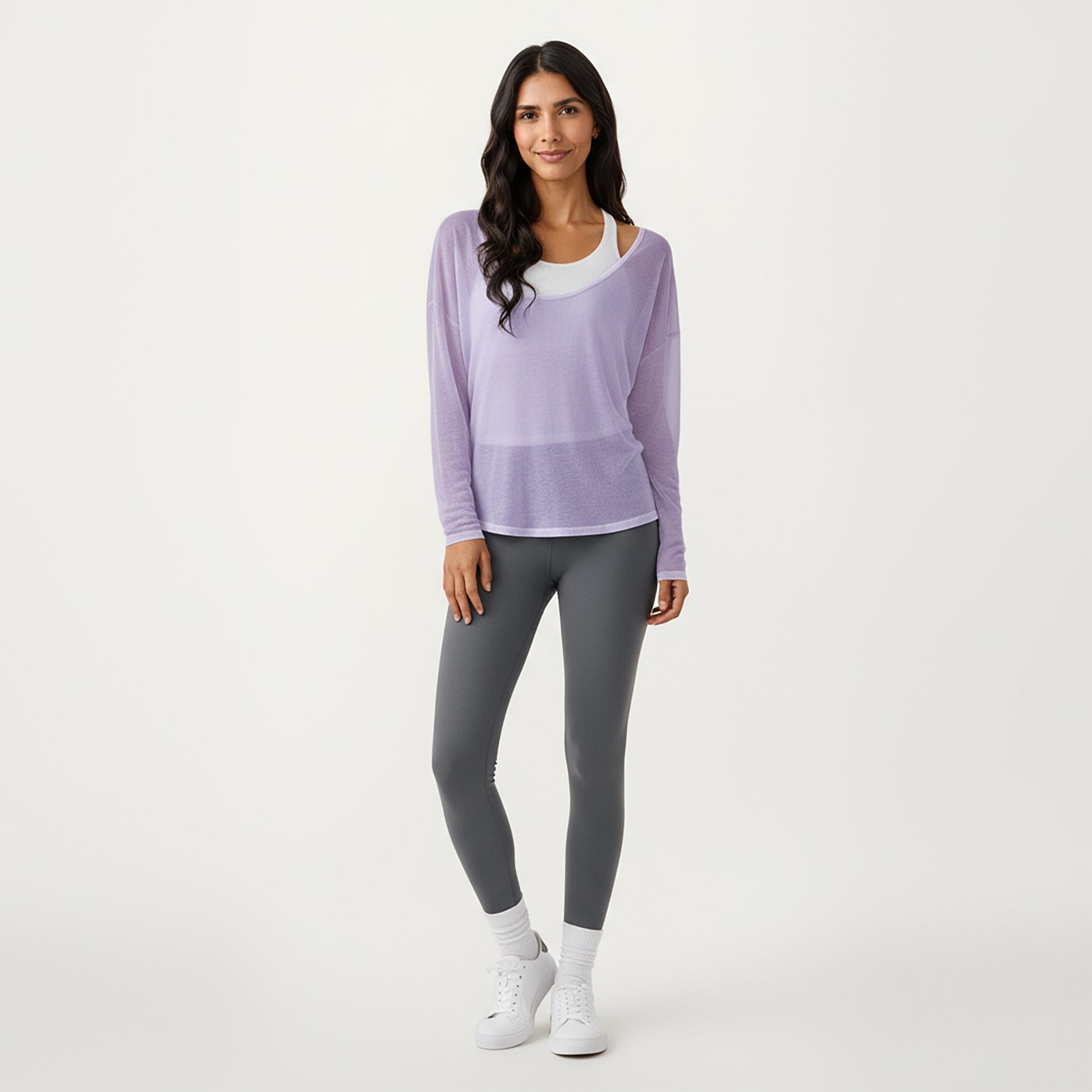 The Anna-Kaci Women's Long Sleeve Sheer Pullover Top Set with Off Shoulder Neckline and Relaxed Fit combines airy comfort with modern allure. Crafted from lightweight, semi-sheer fabric, this top drapes effortlessly and adds a touch of elegance to any casual look. The off-shoulder neckline highlights the collarbone beautifully, while the relaxed fit ensures all-day comfort and ease of movement. Perfect for layering over sports bras or tanks, this piece brings chic versatility to your everyday wardrobe.