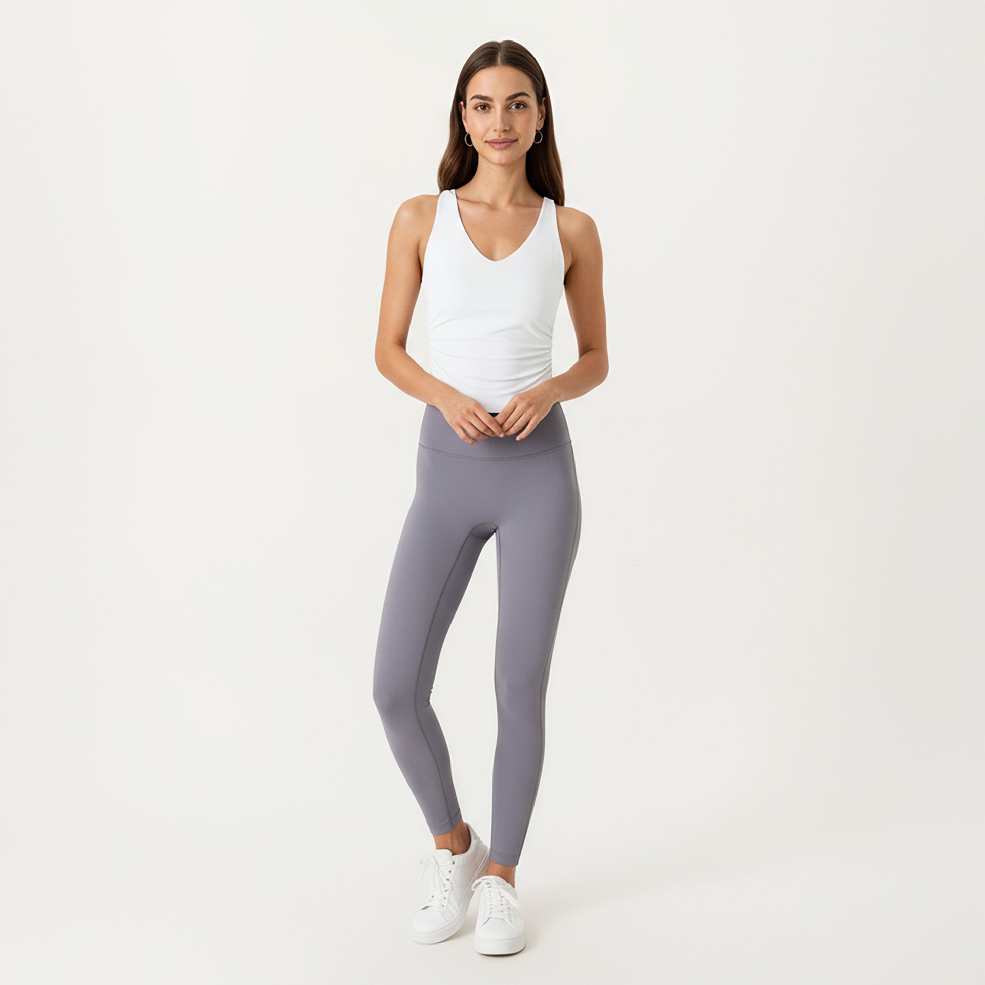 The Anna-Kaci Women's V-Neck Ruched Side Tank Top with Fitted Stretch Fabric and Sleek Contoured Silhouette combines comfort with flattering style. Designed with soft, flexible fabric, this top contours to your shape for a smooth, body-hugging fit. The V-neckline and subtle side ruching create a feminine, elongating effect, while the sleek hemline offers a polished finish. Perfect for workouts or casual days, this tank provides both performance and effortless modern appeal.