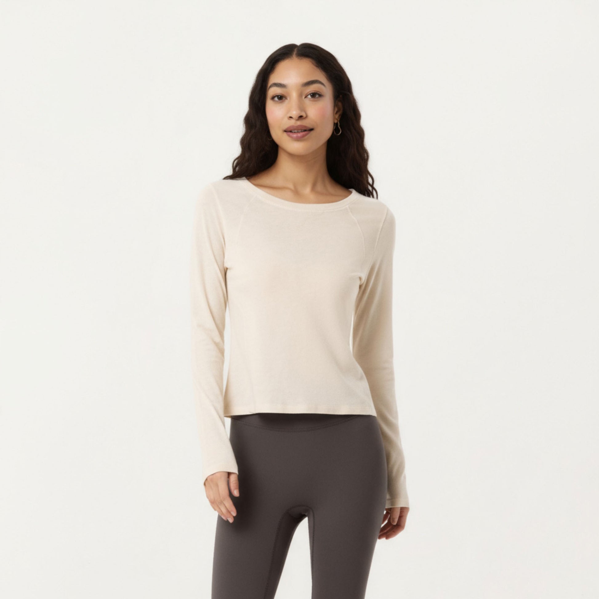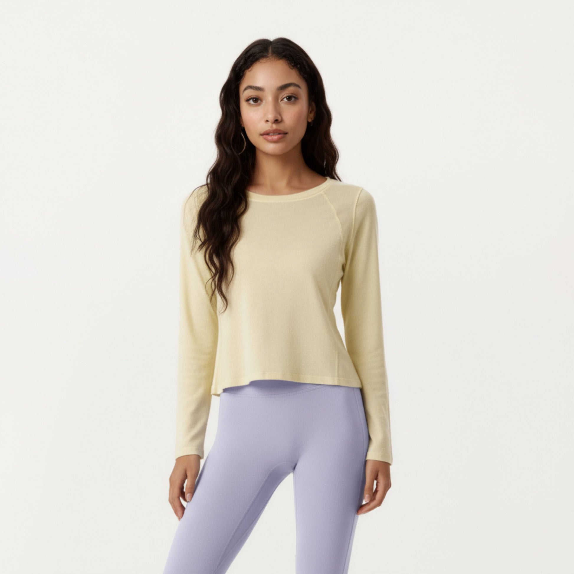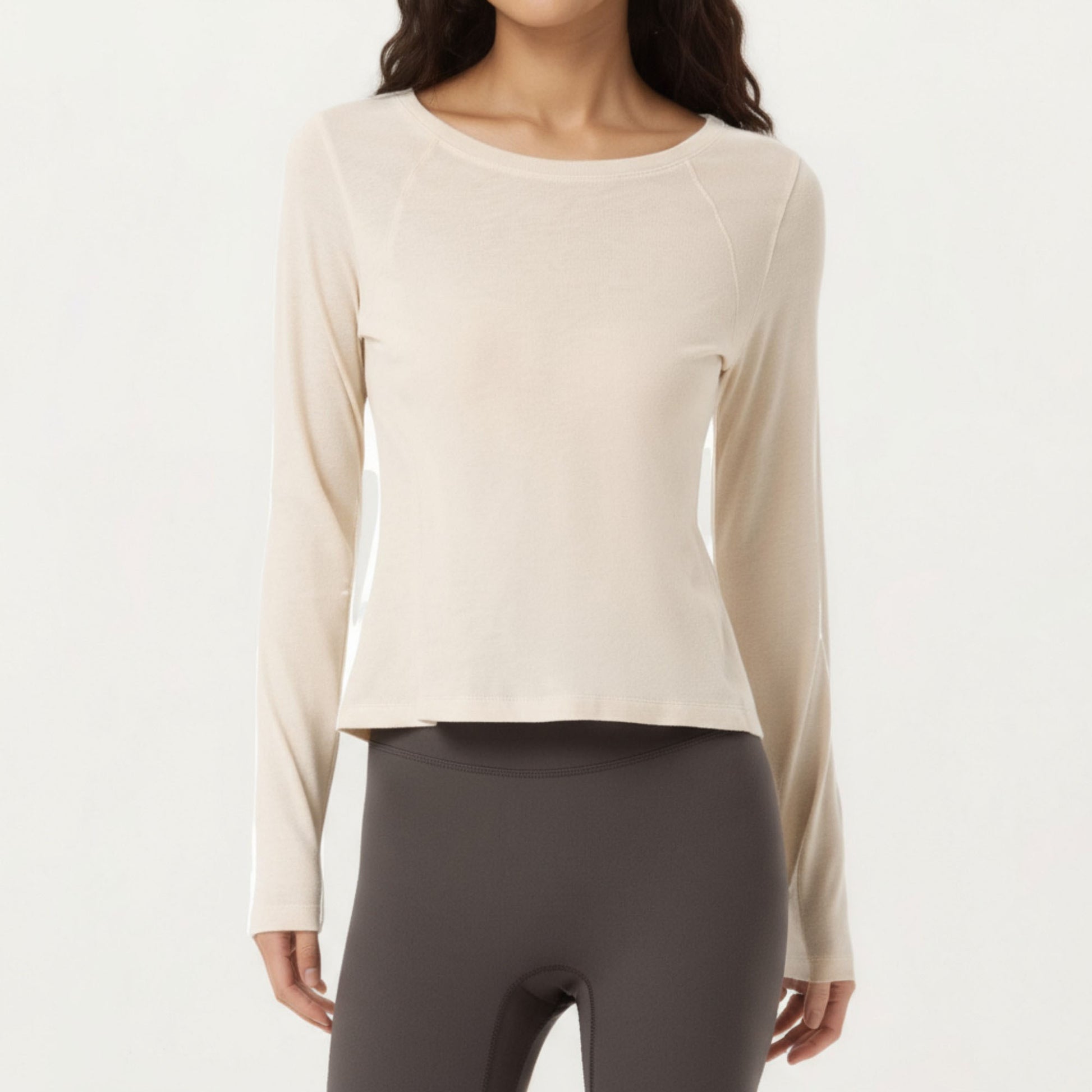 This Anna-Kaci Women¡¯s long sleeve active top is crafted from a soft stretch fabric that provides lightweight comfort and smooth movement. The clean crew neckline creates a simple, modern look, while the subtly contoured fit offers a flattering shape without feeling restrictive. Designed with a minimal silhouette, the top pairs effortlessly with leggings or joggers. Its breathable, flexible feel makes it ideal for everyday activewear styling.