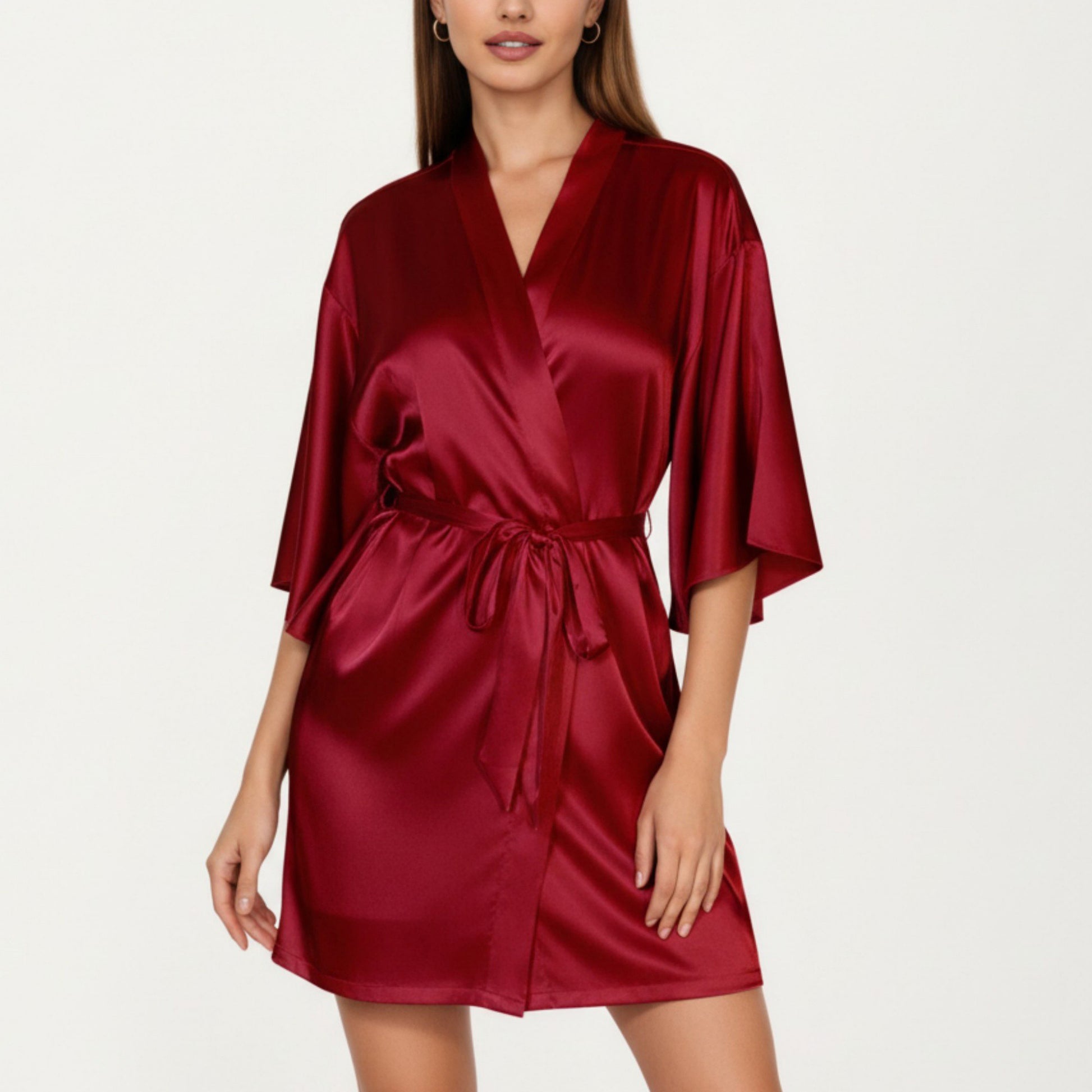 The Anna-Kaci Women's 2-Piece Satin Slip Dress and Robe Set features a smooth, lightweight fabric that creates a soft, fluid drape. The slip offers a sleek silhouette with delicate straps, while the open-front robe adds elegant movement with its relaxed, flowing sleeves. The silky finish enhances comfort and gives the set a refined, polished look. Designed for effortless lounging, it provides a chic and elevated feel.