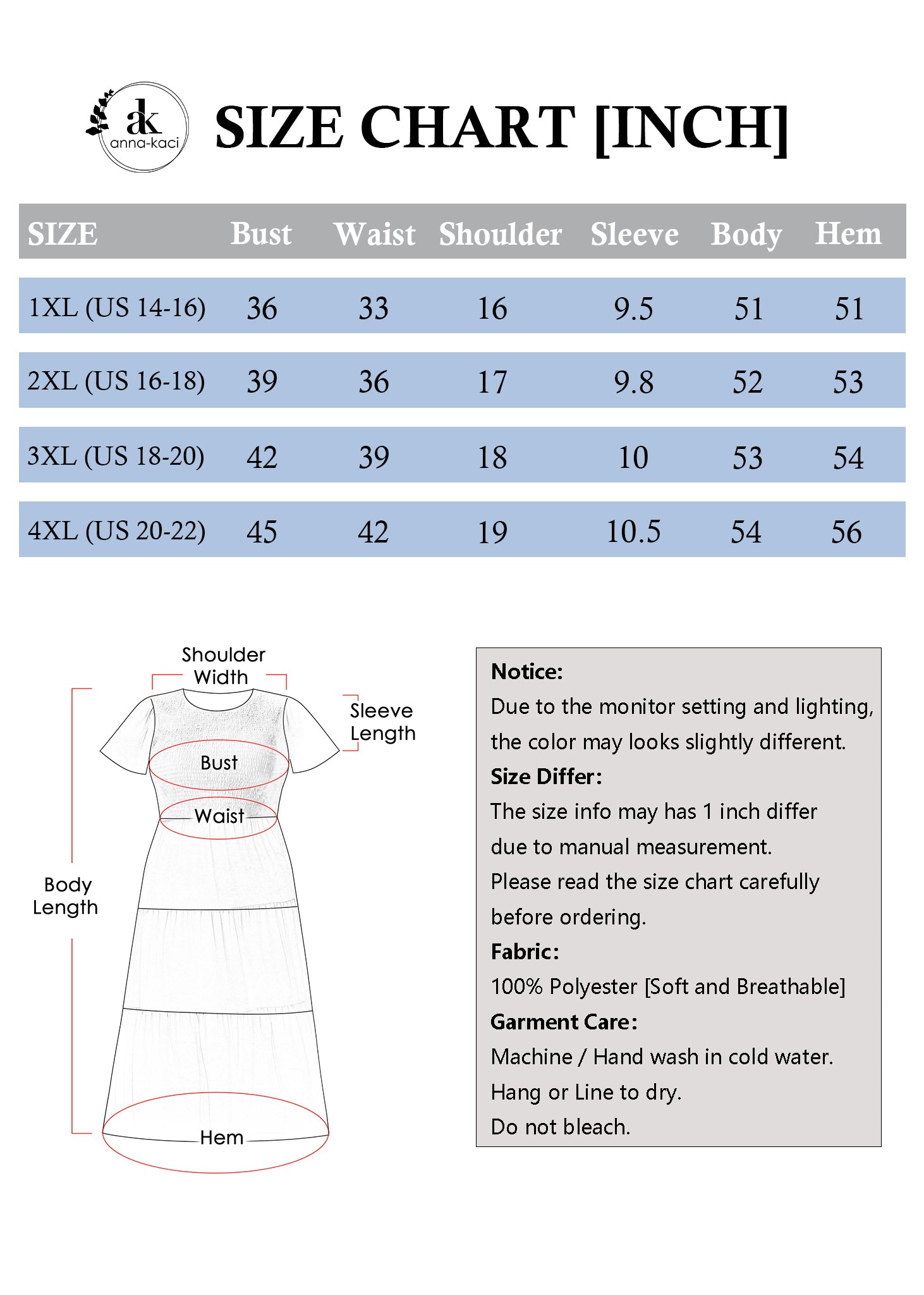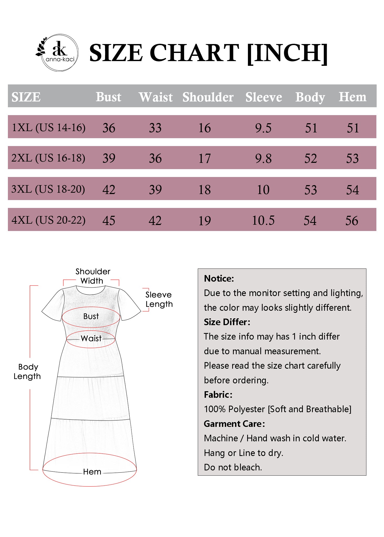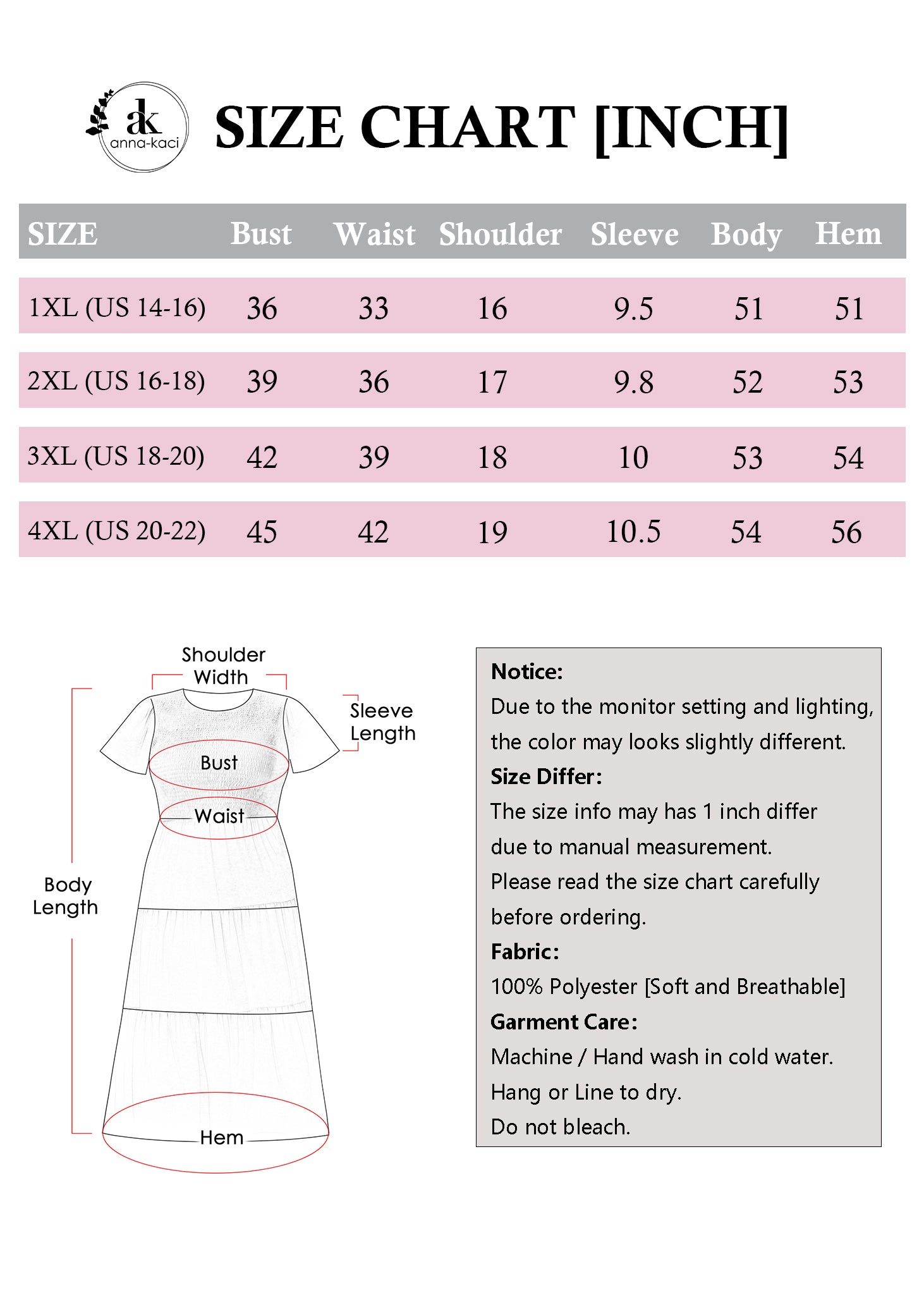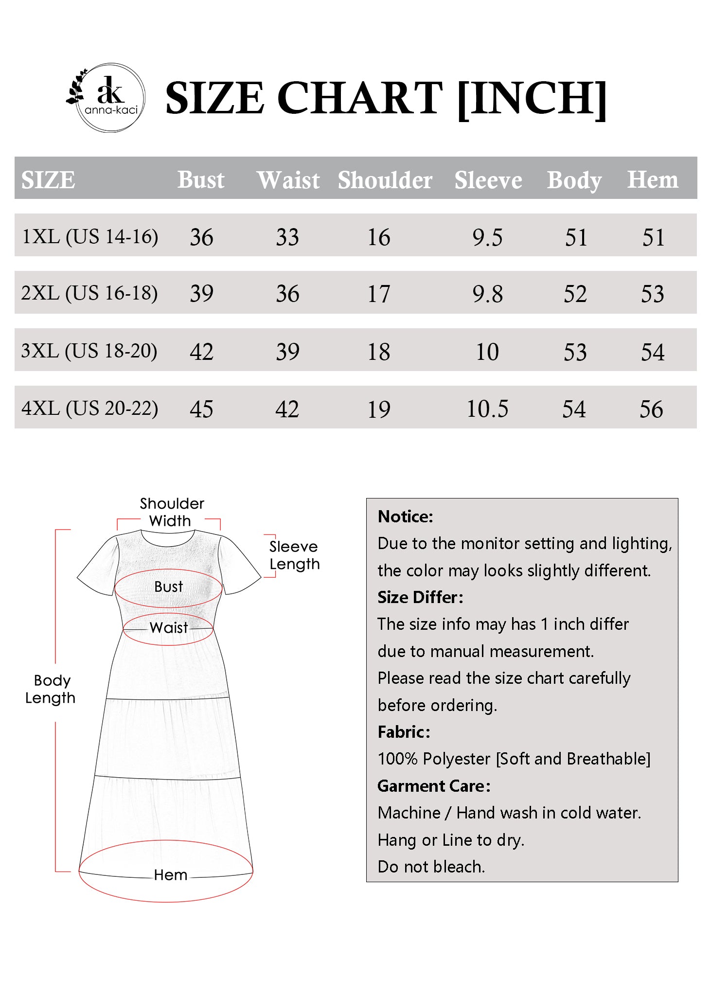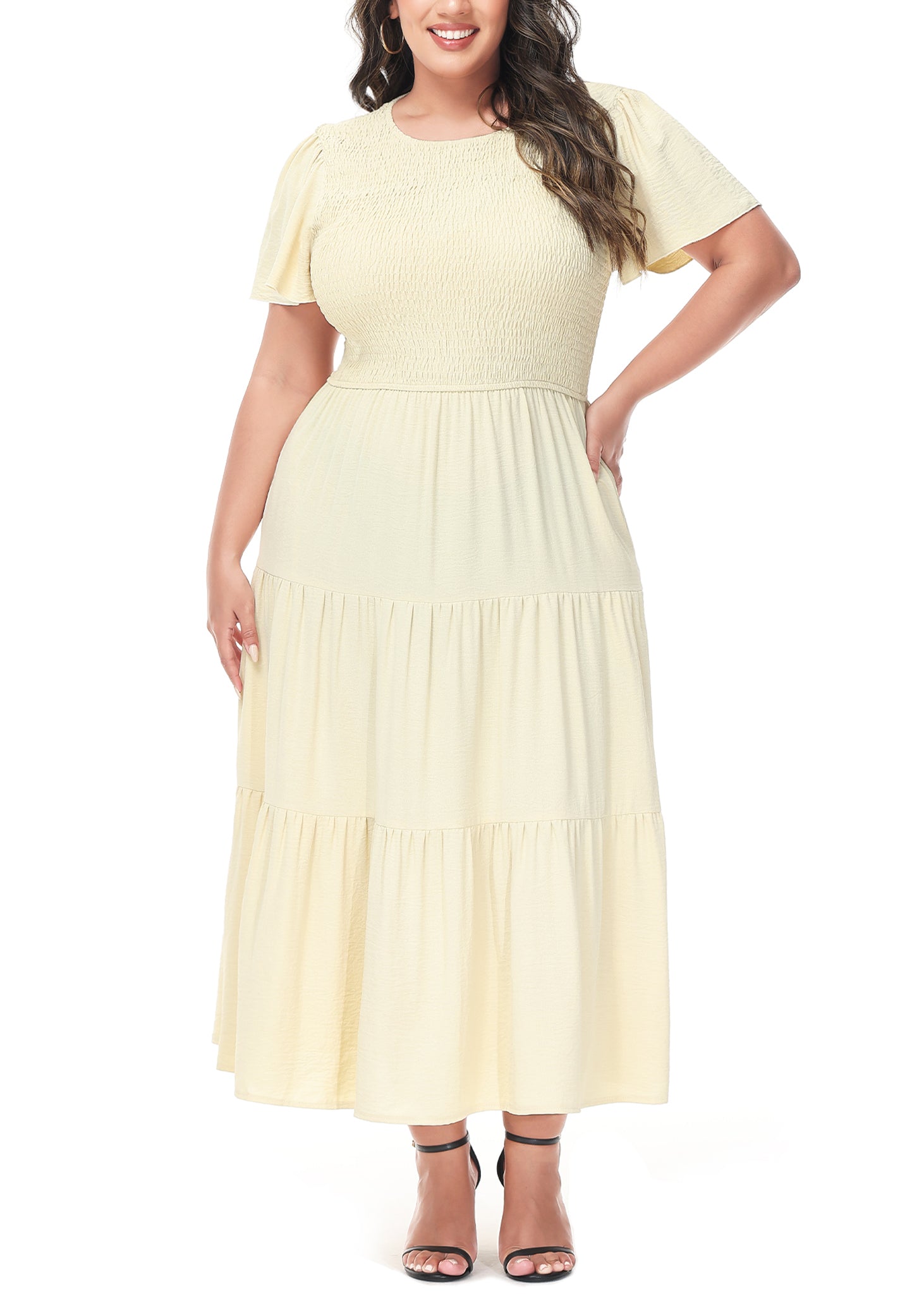 Anna-Kaci Women's Plus Size Casual Round Neck Flutter Short Sleeve Elastic Waist Smocked Tiered Maxi Dress