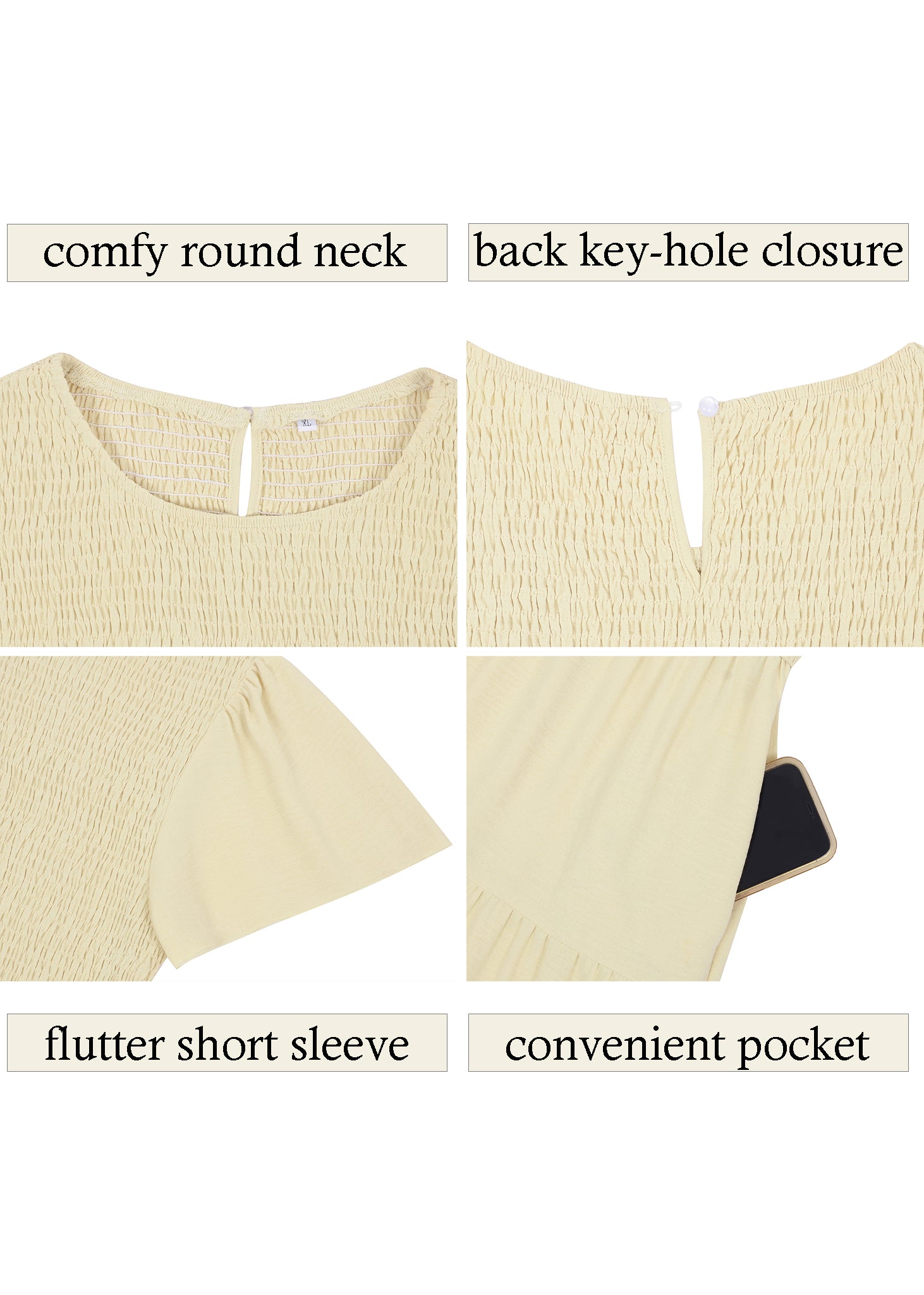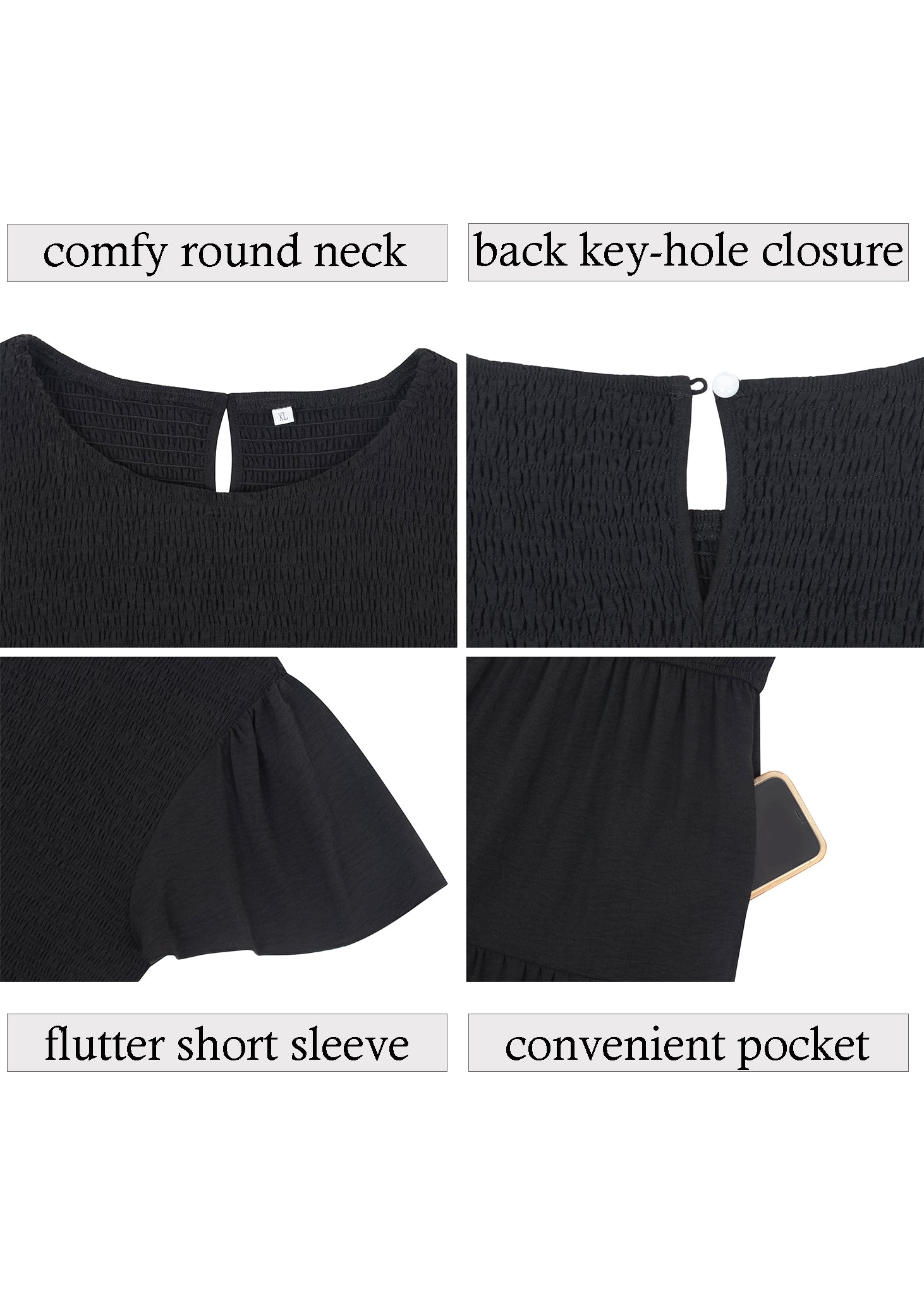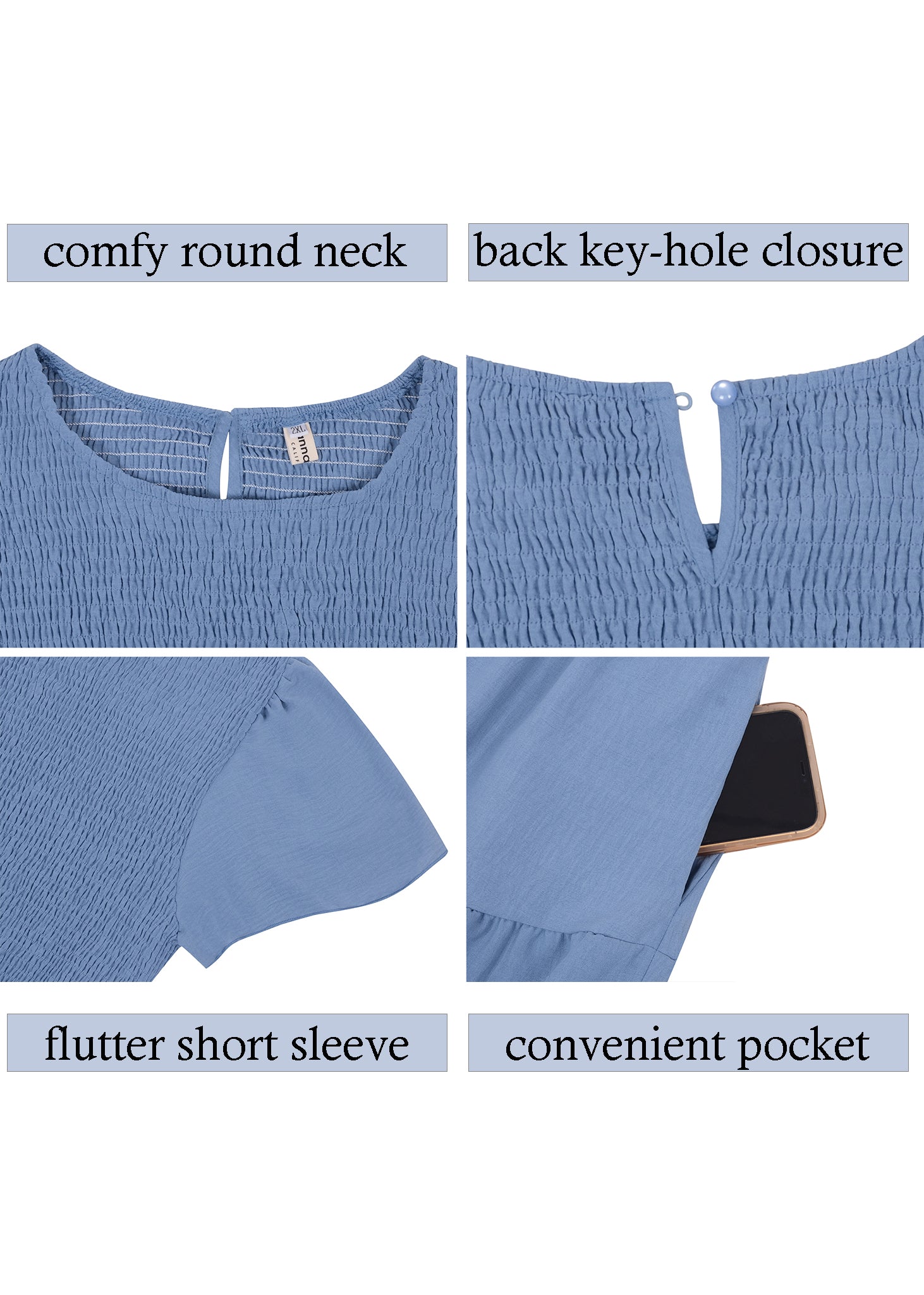 - Fashion Design: The casual maxi dress for women designed with flutter short sleeves, round neck, simple solid color, elastic waist, side pockets, back key-hole closure, smocked tiered details. Long flowy boho dress showcasing the casual nature and adding you more charm