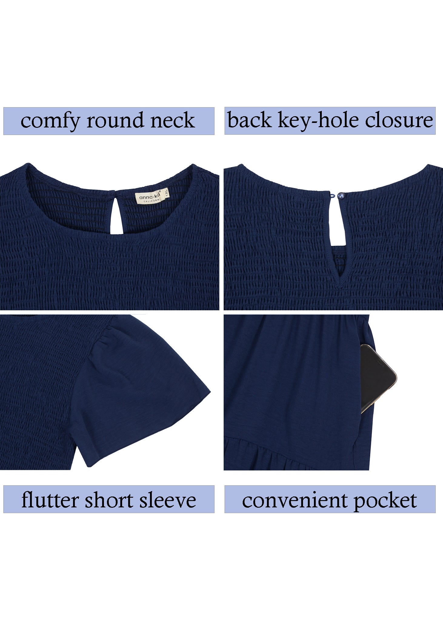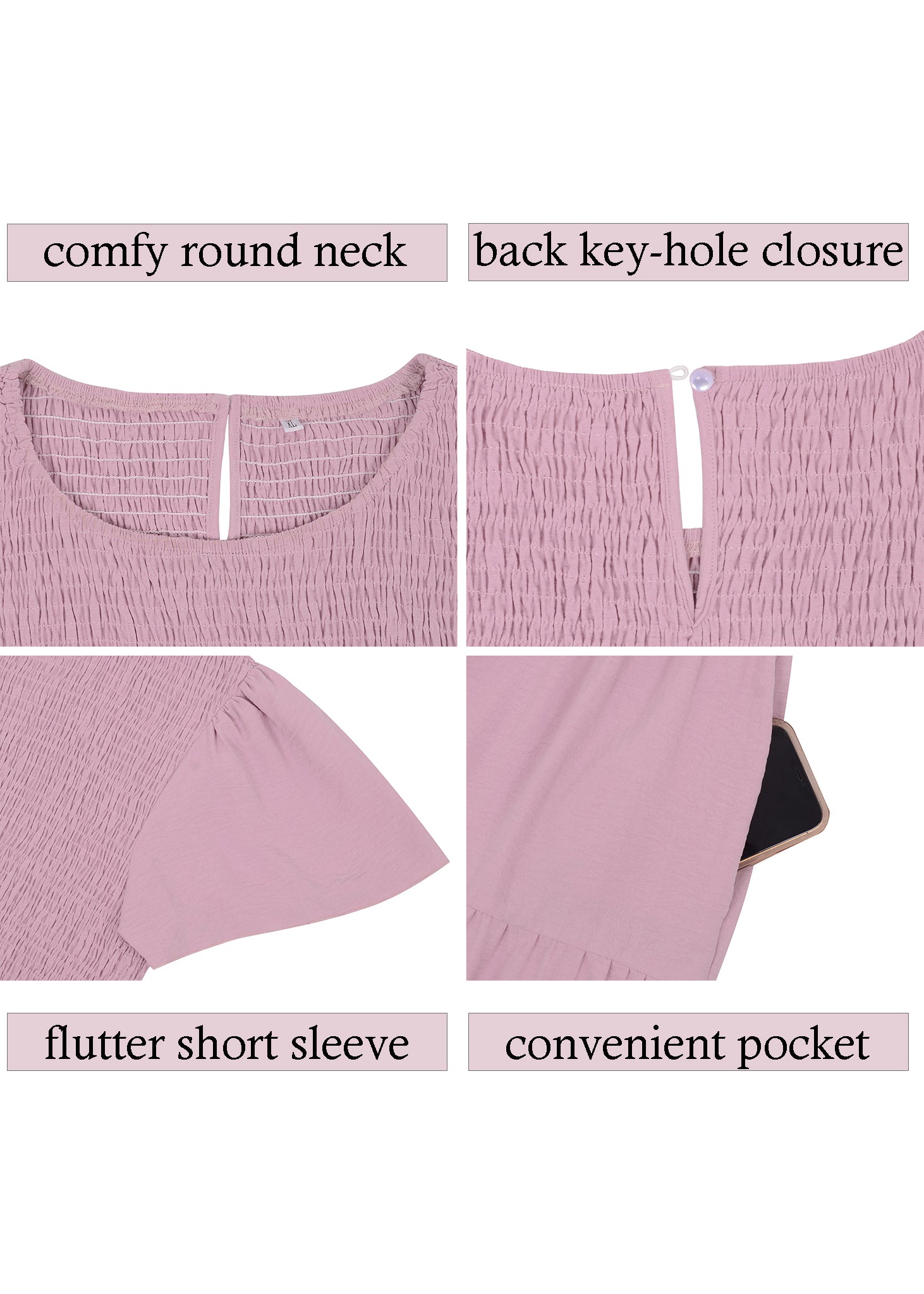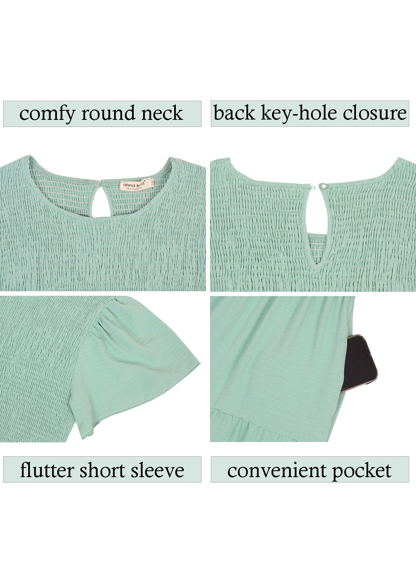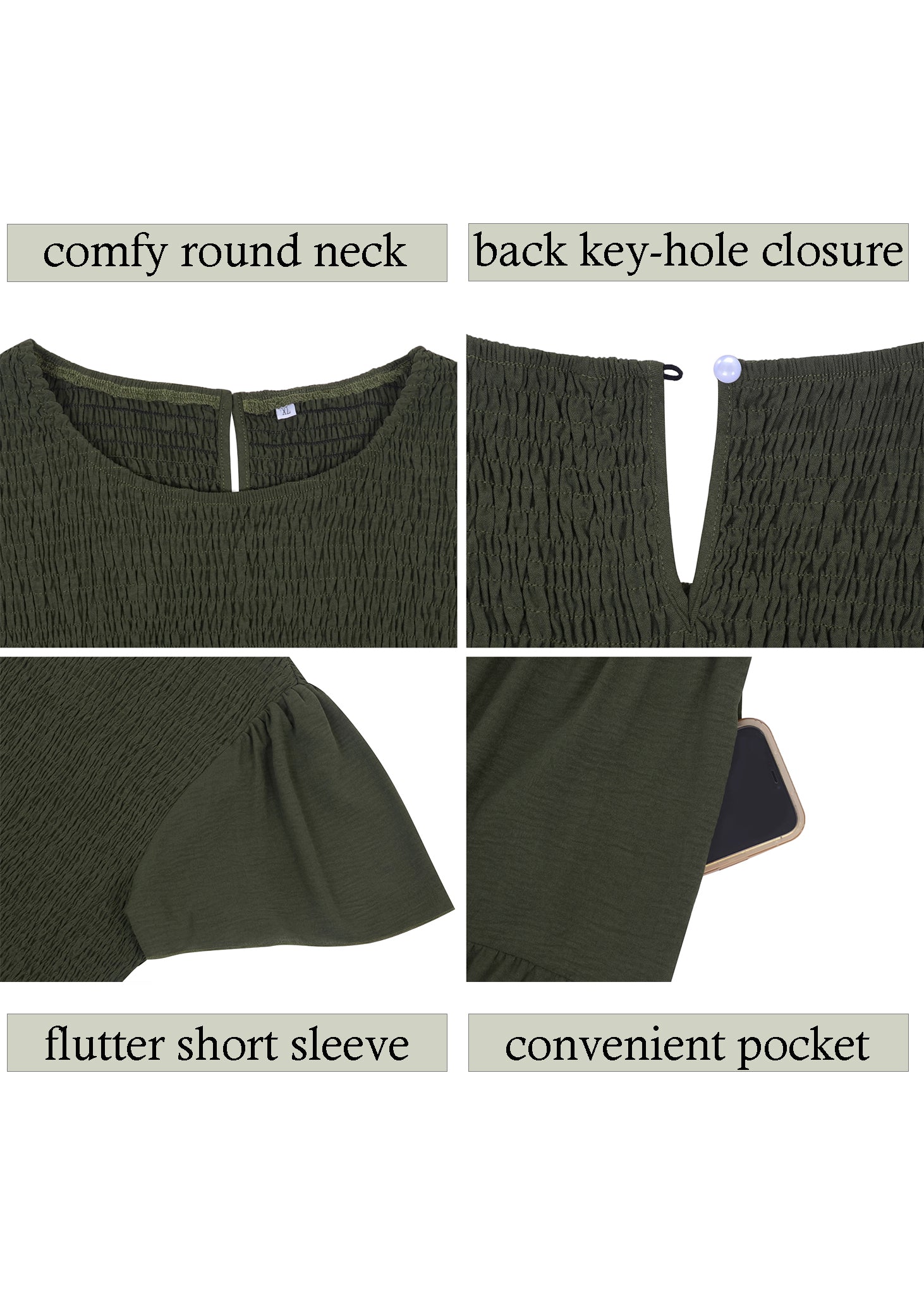 - Fashion Design: The casual maxi dress for women designed with flutter short sleeves, round neck, simple solid color, elastic waist, side pockets, back key-hole closure, smocked tiered details. Long flowy boho dress showcasing the casual nature and adding you more charm